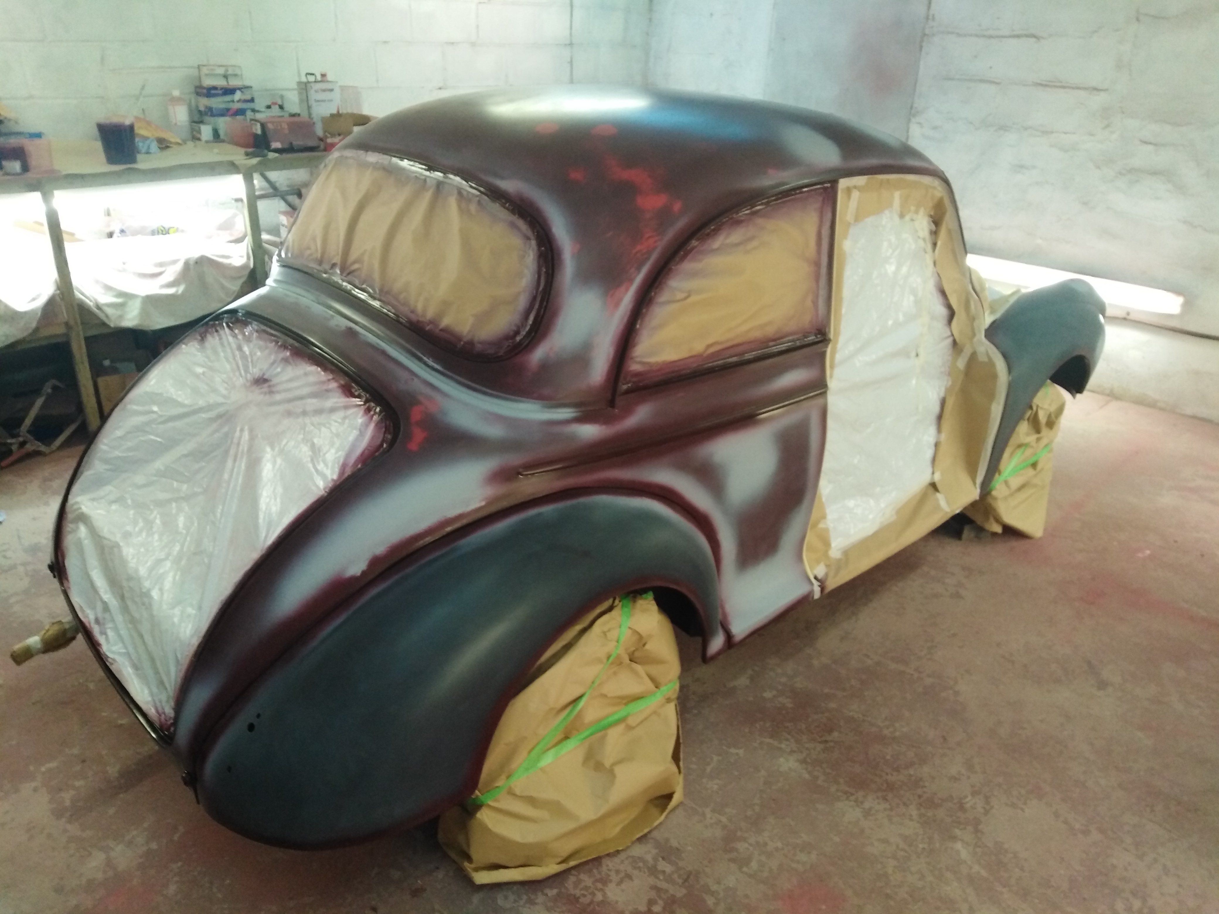 So Monday I had the doors, bonnet and boot in the little unit which he'd prepped and primed, even masked up for me. That's the kind of spray job I like :)