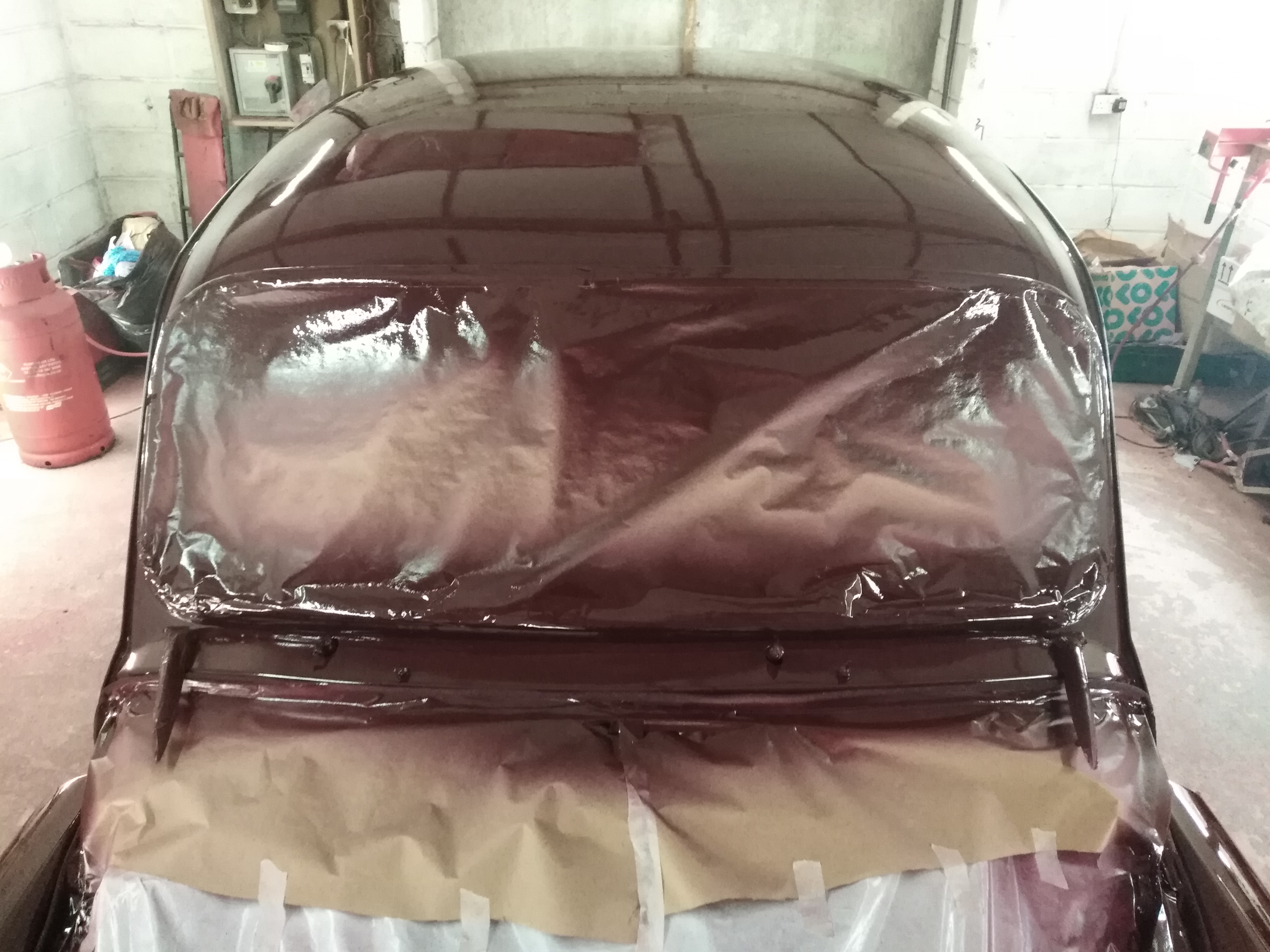 Terry has been doing cars for years, had his own restoration and sales for decades up at the unit. He'd warned me that these old cars with their curves were more tricky to paint, he wasn't wrong! The doors with the bulging wheel arch flares against the flat face creates a recipe for runs, managed to get away with it but so easy to overlap and build up too much paint.