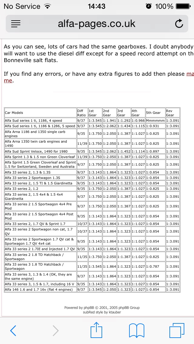 Nope as far as I remember that is correctAlfaCorseChris wrote:HEYYYYYYYYYYYYYYYYYYYYY.... I just noticed... the table says that the Series 2 1.5 Ti has the EXACT SAME GEARBOX as the 1.7 16v S3 !!!