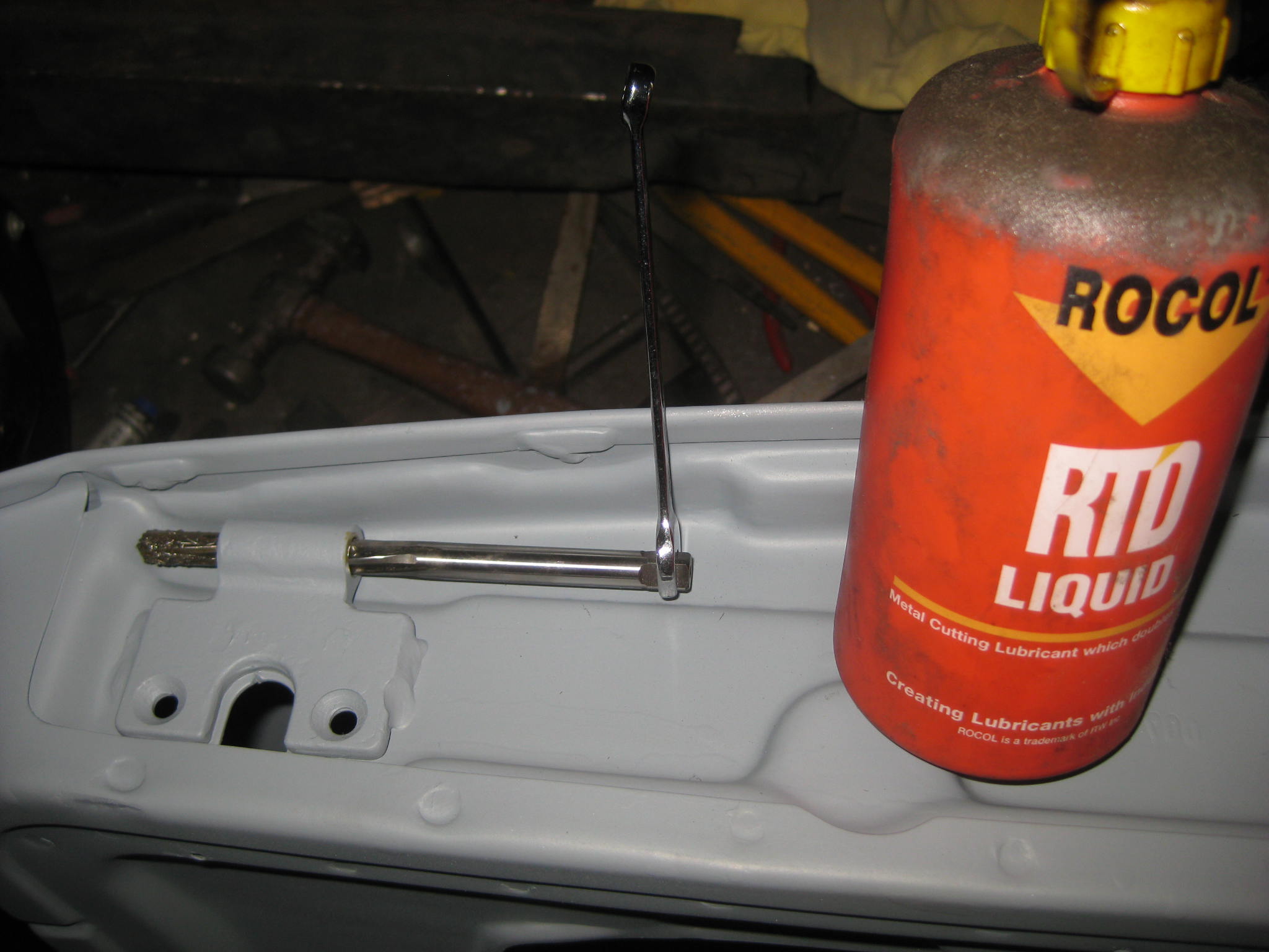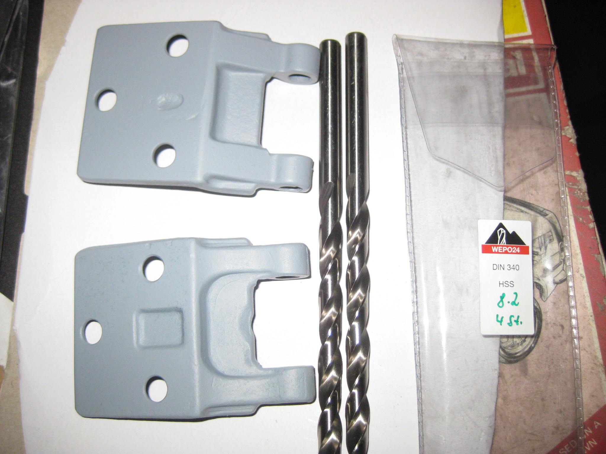 The reamer you will need is an 8,20mm HAND Reamer, these have a tapered lead on them and will pick up in the existing holes, care is needed along with some cutting fluid when reaming them out. As some of the wear takes place on the original pins and some in the hinges 0,20mm was enough to remore all the wear from mine although you could go slightly bigger provided you can get hold of the right size hand reamer but not too much or the hinge will be weakened.