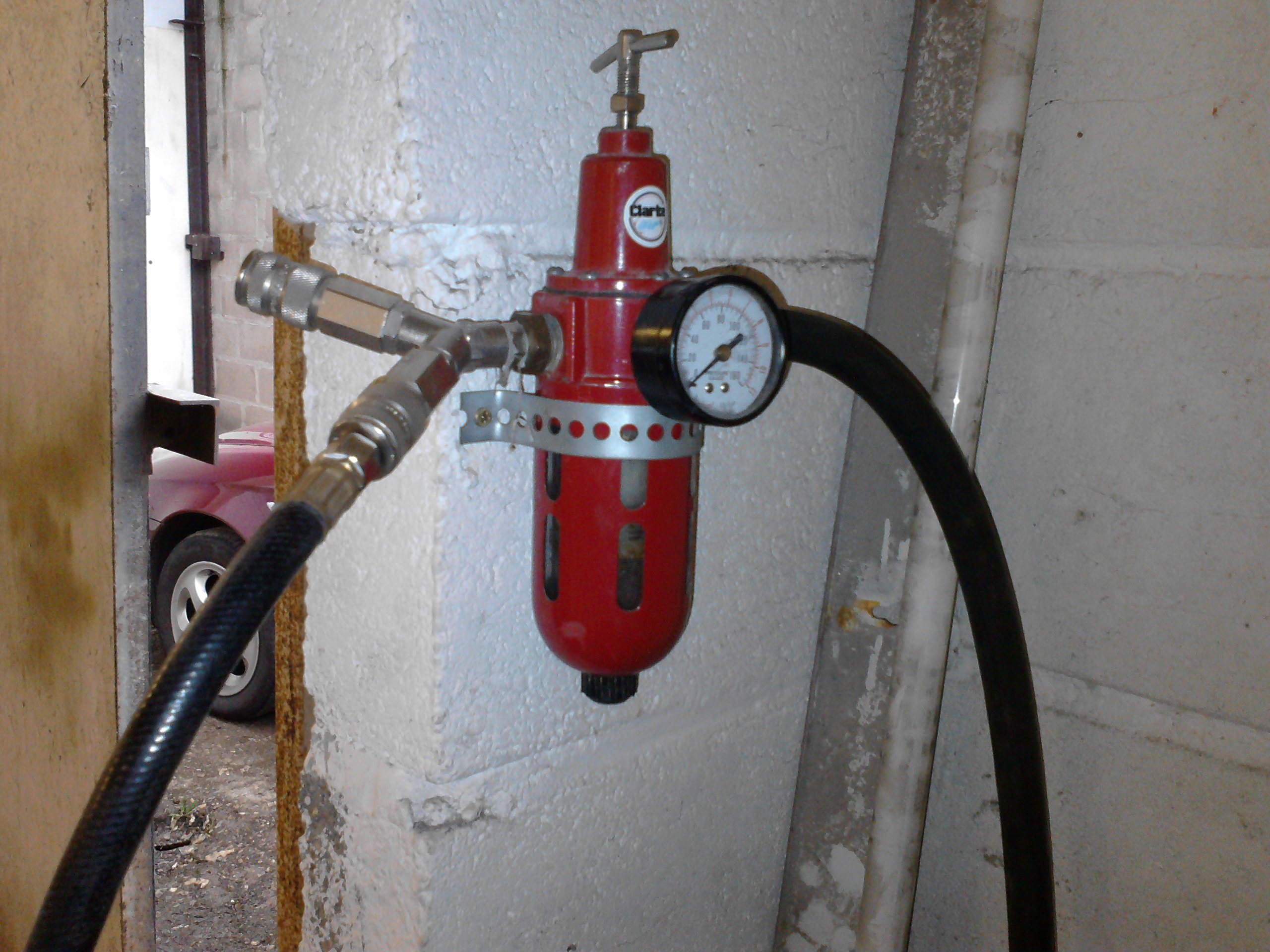 made up a bracket and fitted the regulator/water trap so all ready for use for saturday 8-)