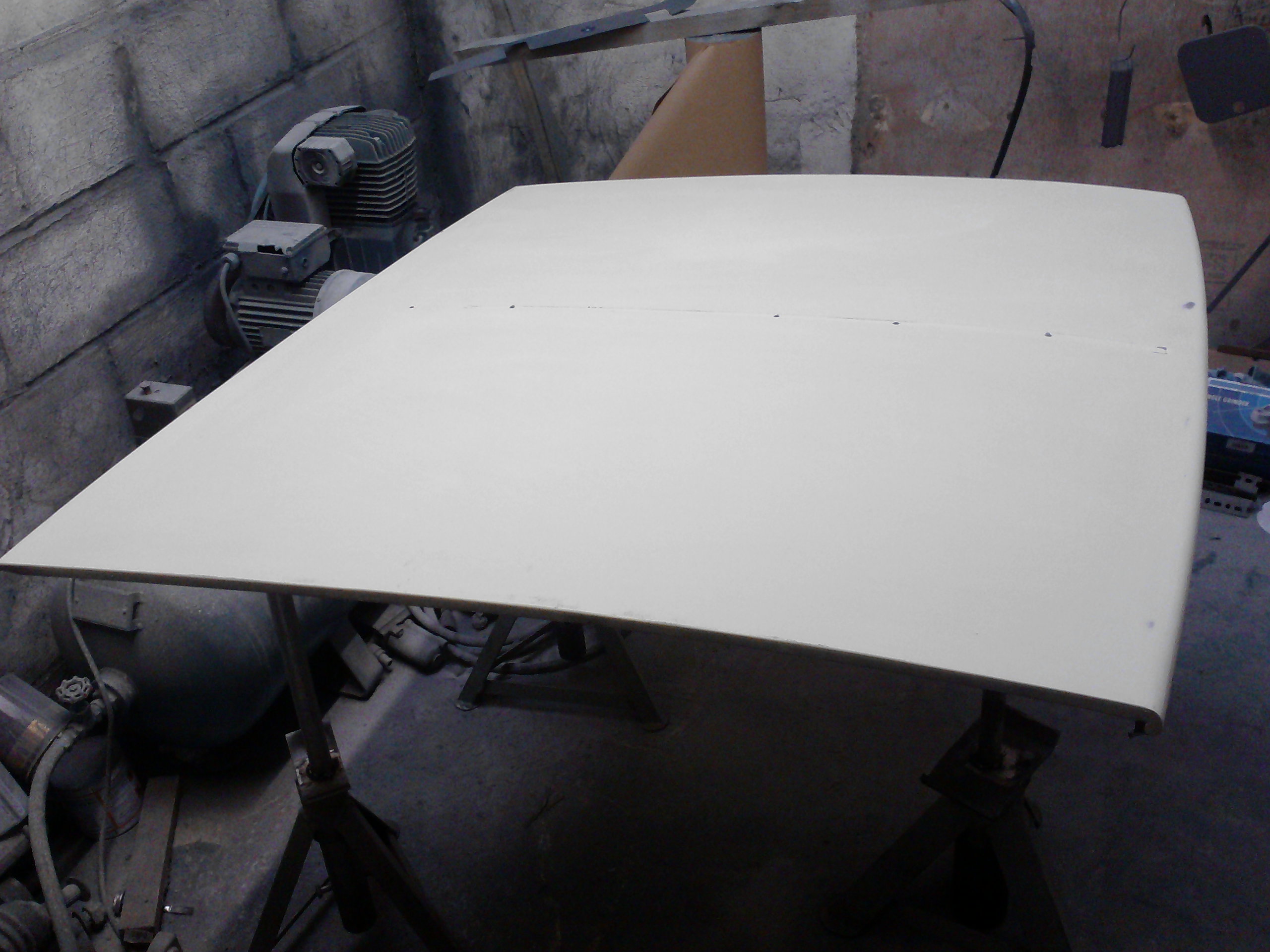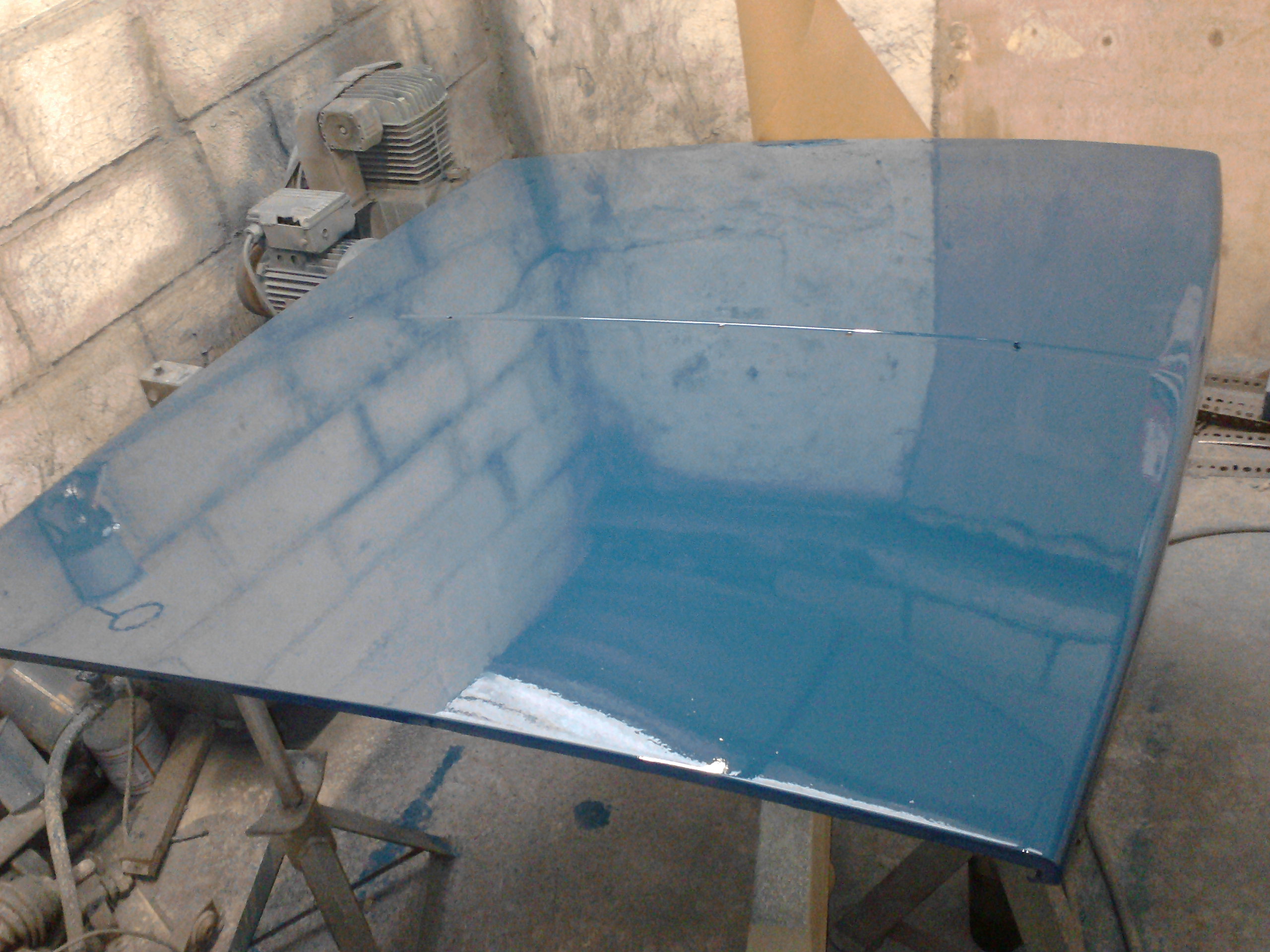 once we had some stable electricity again I set about making 3 legs to stand the bonnet on. it'd been bugging me about how to paint both sides of the bonnet in one go without hanging it from the roof, that prevents you from going full on with the paint as it's so easy to get runs in it...