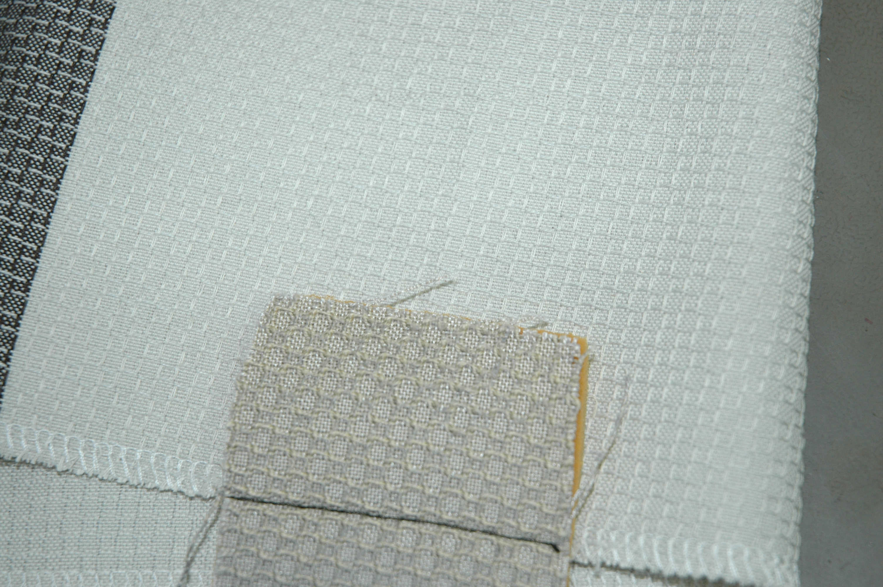"We have had a discussion about the fabric today and unfortunately we do not have the loom set up to be able to weave an exact replica of the fabric, the floating threads that create the ‘square’ pattern on the cloth are much thicker than any yarns that we use.