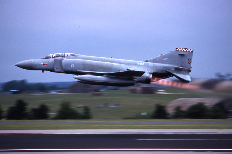 A few things to think about for me. The Phantom was a great machine, and don't let anyone tell you different. We were supposed to be buying the F111 with a stand-off missile, but when the missile was cancelled by the Americans, we cancelled our order. The F4 was bought as a stop-gap machine, and the government wanted to maximise the British content. This was done by installing a reheated version of the Rolls Royce Spey. The Spey was a first generation turbofan -an airliner engine- and of bigger diameter than the J79. When finally made to work, the Spey Phantom had more thrust at low level than the original, but more drag with the bigger intakes. At Max speed at low level, you were burning 1,000 lbs - half a ton of fuel a minute. Out of reheat at low level, the aircraft was slightly more economical than the original. But at altitude, the original was much better that the Spey, having less bypass air, the J79 was very similar to the Avon in the Lightning. And the original F4 had smaller intakes and thus less drag. When you stripped all the external stores off the F4, and made it clean wing, it was great fun to fly, and would turn with the Lightning and outrun it at low level. But the Lightning only had one bloke in it (me, me, me!) and was even nicer to handle. Out of interest, the airframe max speed limit was 750 knots on the F4 and 650 on the Lightning. But there's a lot more to that than meets the eye, as poor Kevin will testify.
