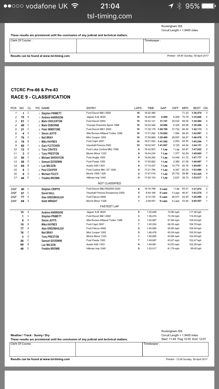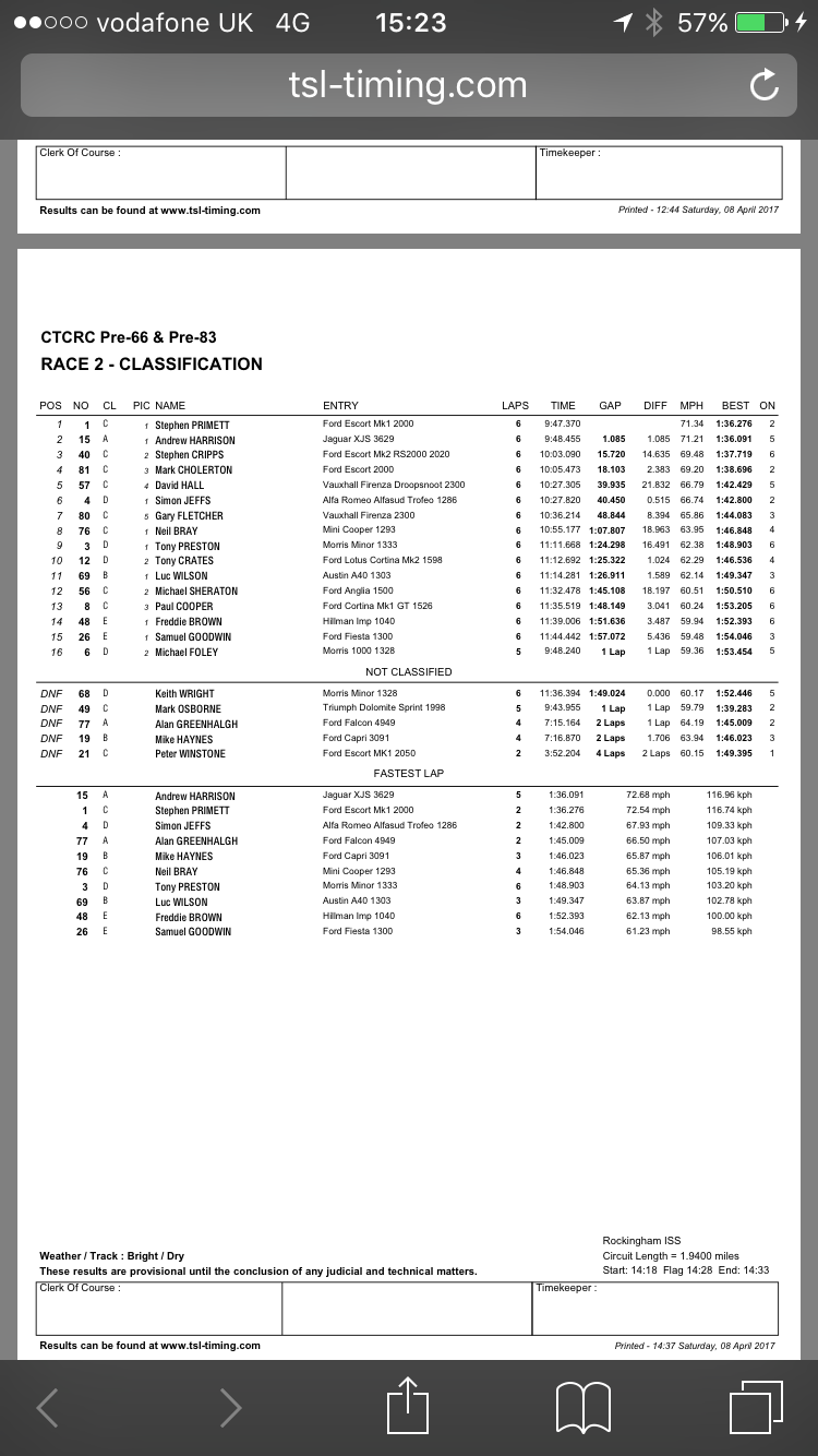 The car ran well so I should be cured for the race. We will see. Very happy with my grid position. I need to stay with the Dolomite!