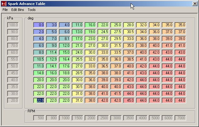 The ignition pattern is almost indefinitely variable, by altering values of exact degrees of advance, by entering the figure itself into a 10 x 10 table (maybe a 12 x 12 now). Experienced rolling road operators and live mappers will be able to maximise your ignition curve for snap response, driveability, flat out wide open throttle acceleration, even economy and best of all reliability too.