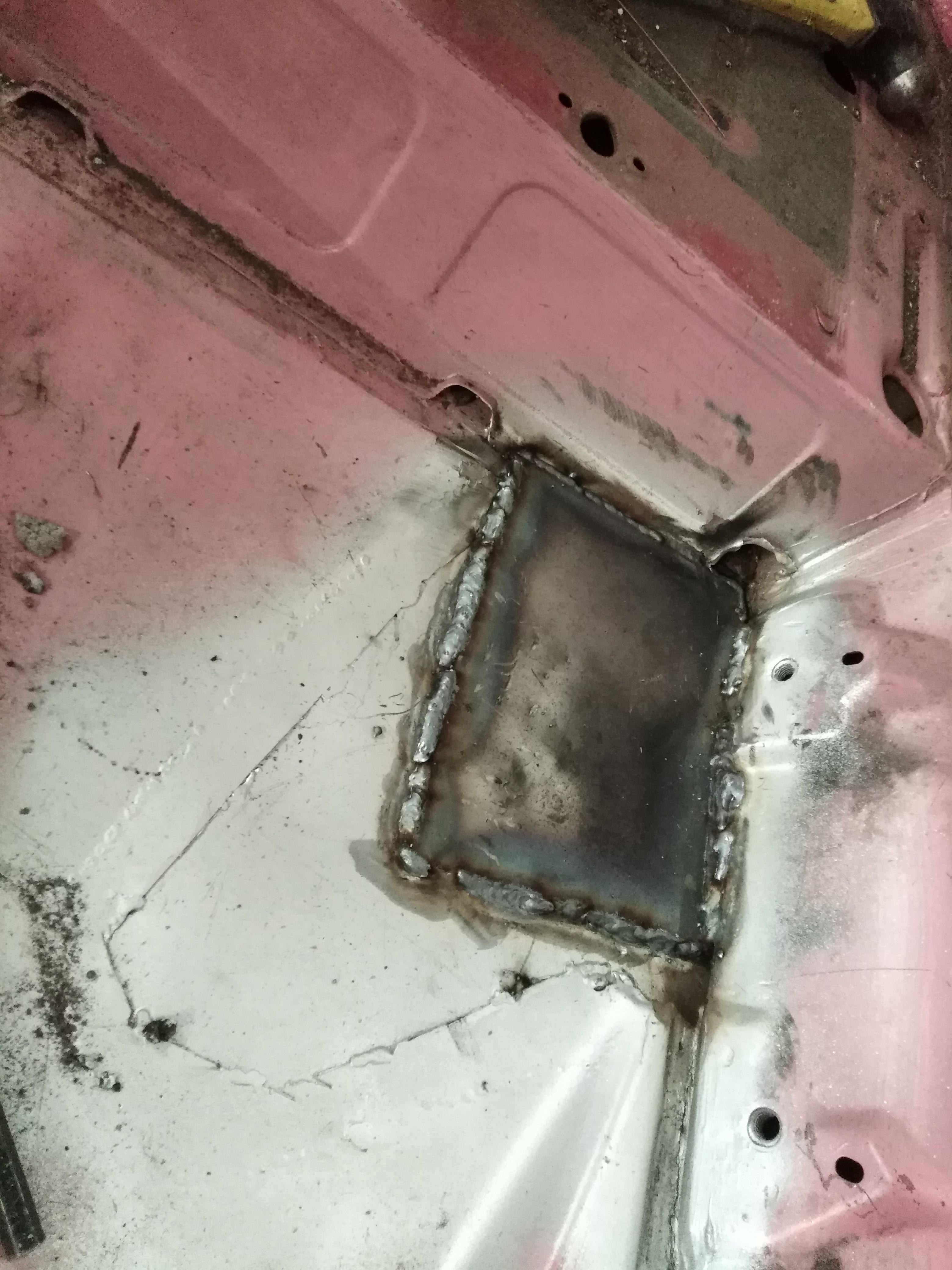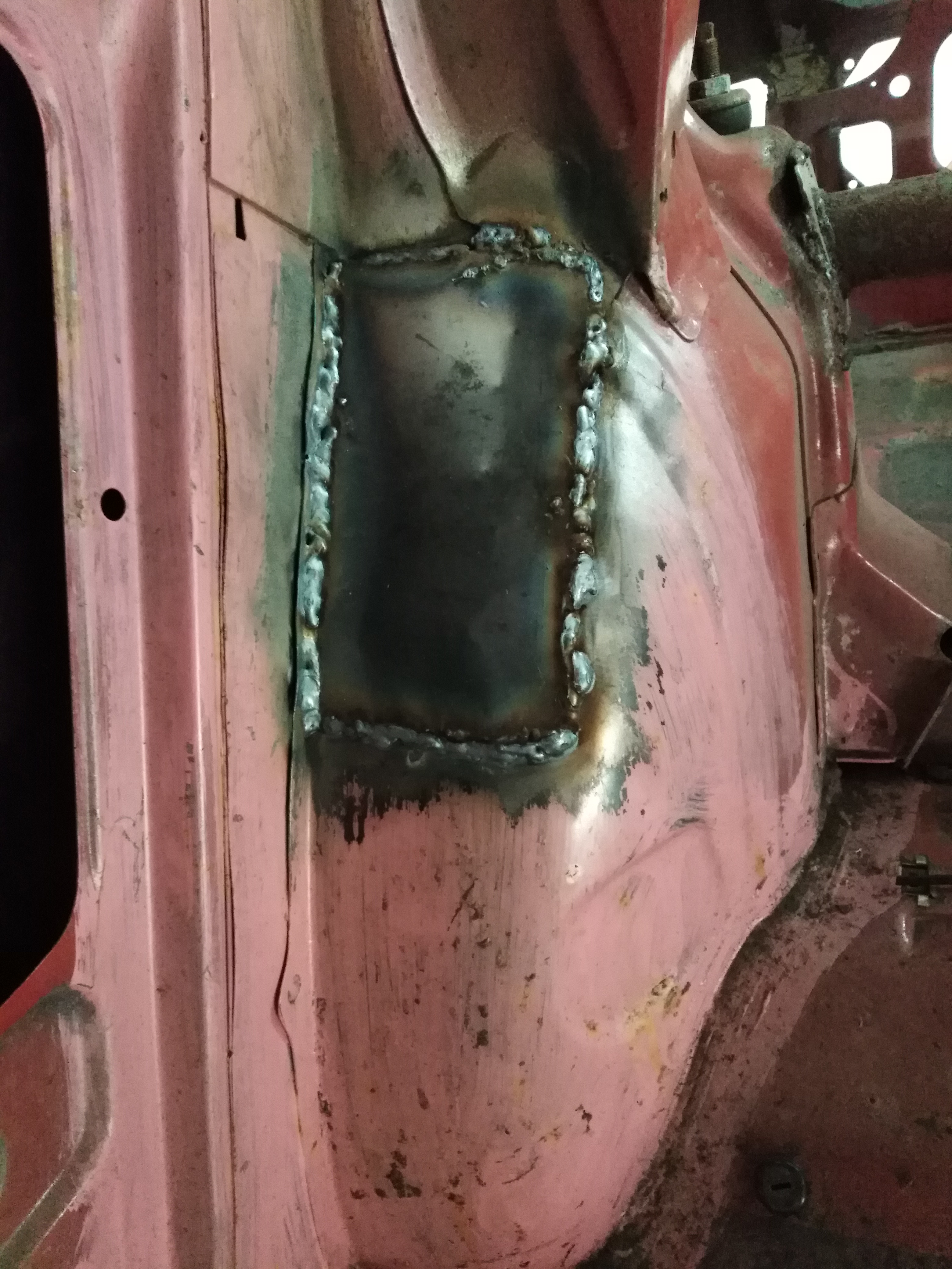 Passenger side got a little extra repair patch then the reinforcing plate welded in this afternoon.