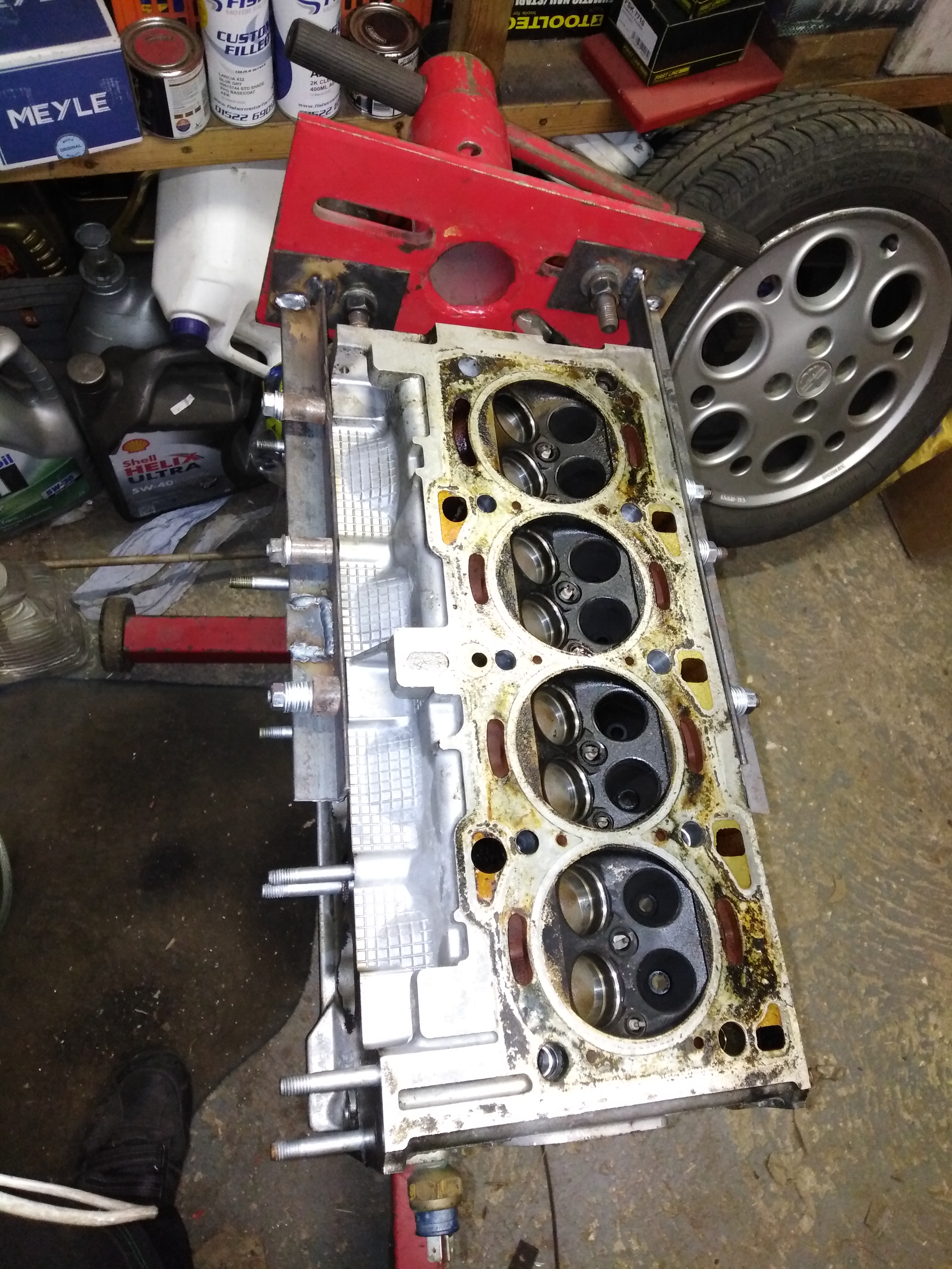 Stripped the valves etc out of the head which reared the usual issue, a heavy yet delicate enough not to want to drop it cylinder head that you need to be able to get to the top and bottom of to lap the valves in, decoke the ports etc then be able to build the valves back up which needs to be accessed above and below.