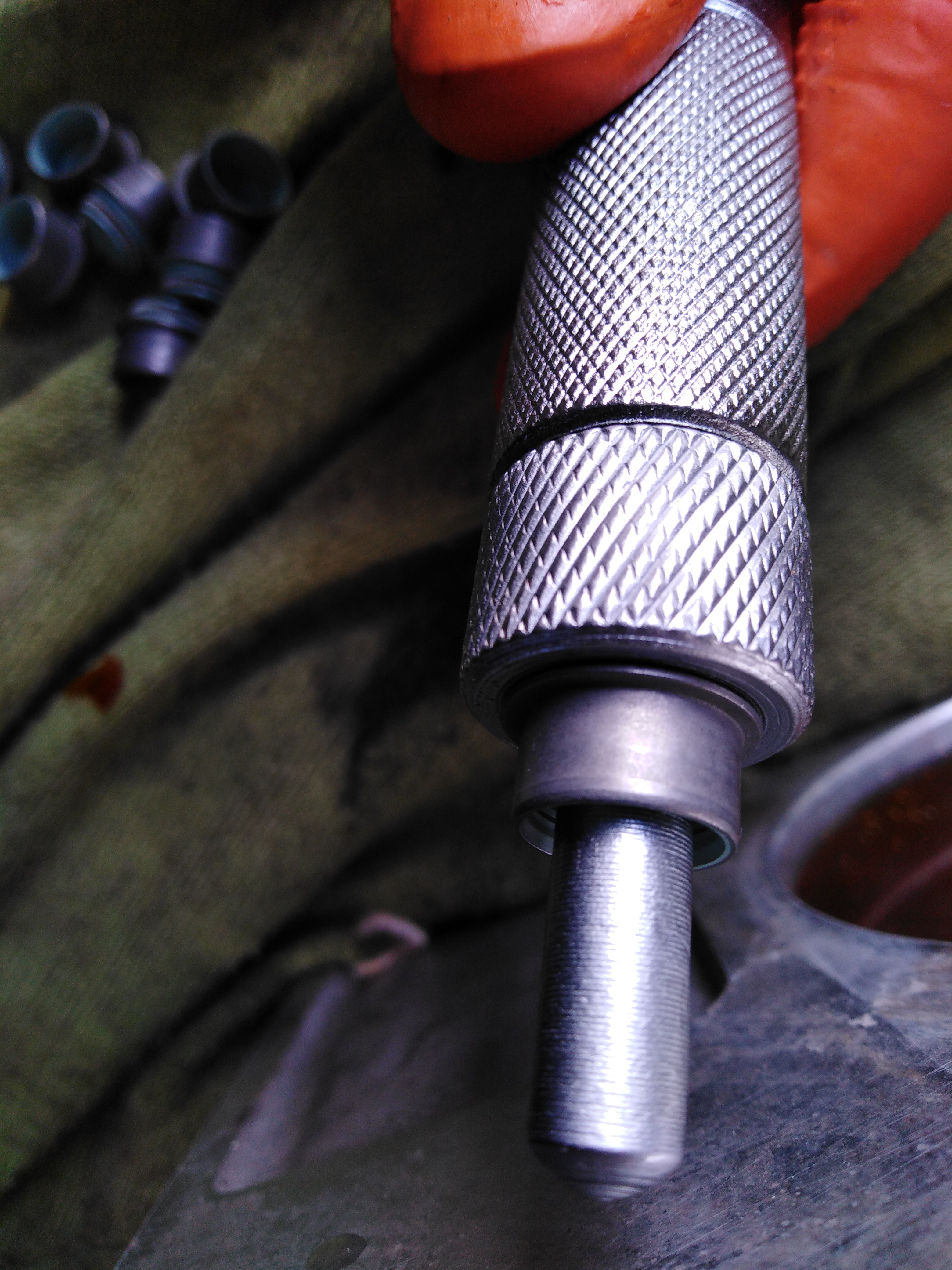 Slide the tool into the valve guide again which lines the seal up correctly and squarely, a few hammer taps and the seal is driven home.