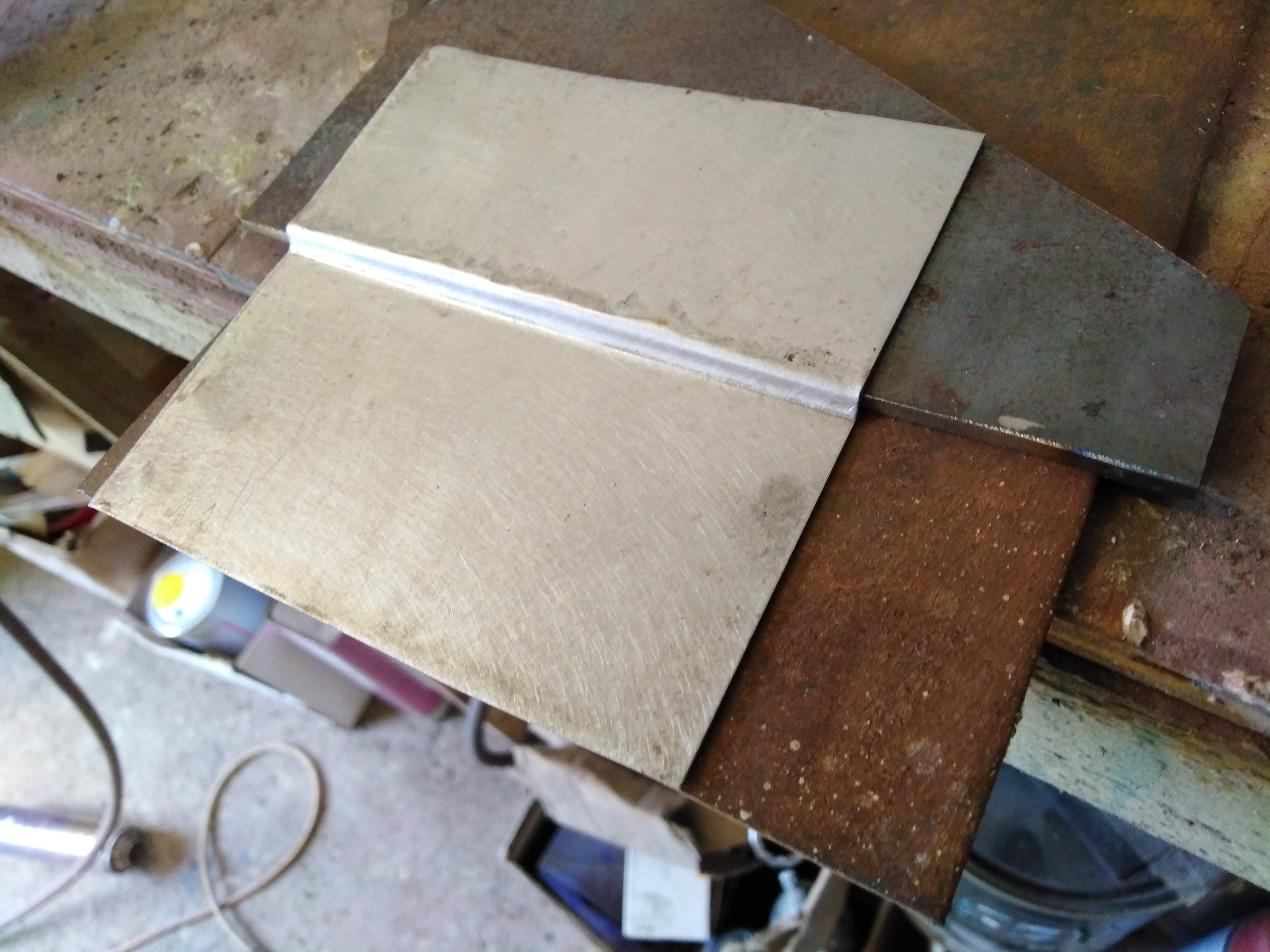 You'll notice in the next picture the folded section which is sat on the base of the jig I made, just some 2mm steel welded together.