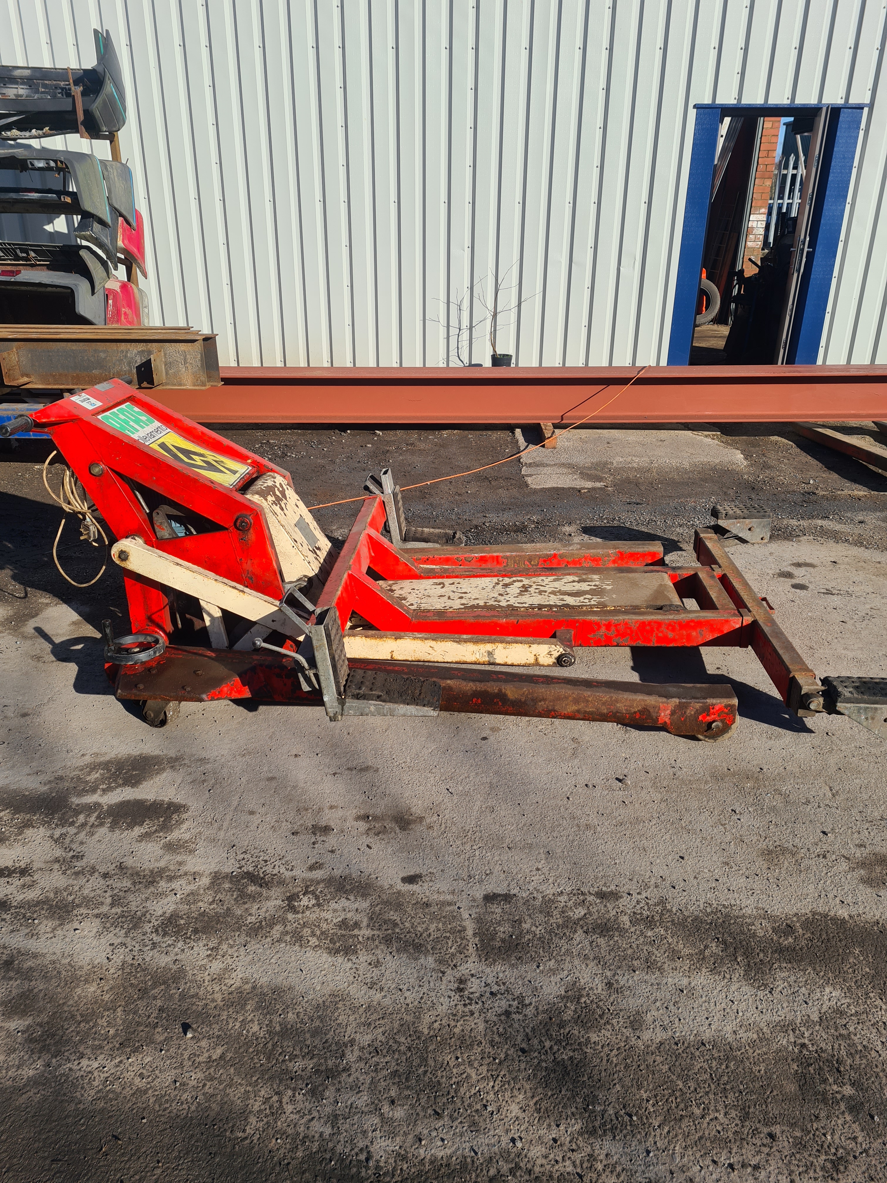 Panter 70 portable car lift, 200kg capacity, 240 volt, push under the car from the side, adjustable pads to pick up on the sills or jacking points, lifts to over head height, on small steel wheels to move around the workshop, £800.00 ono.