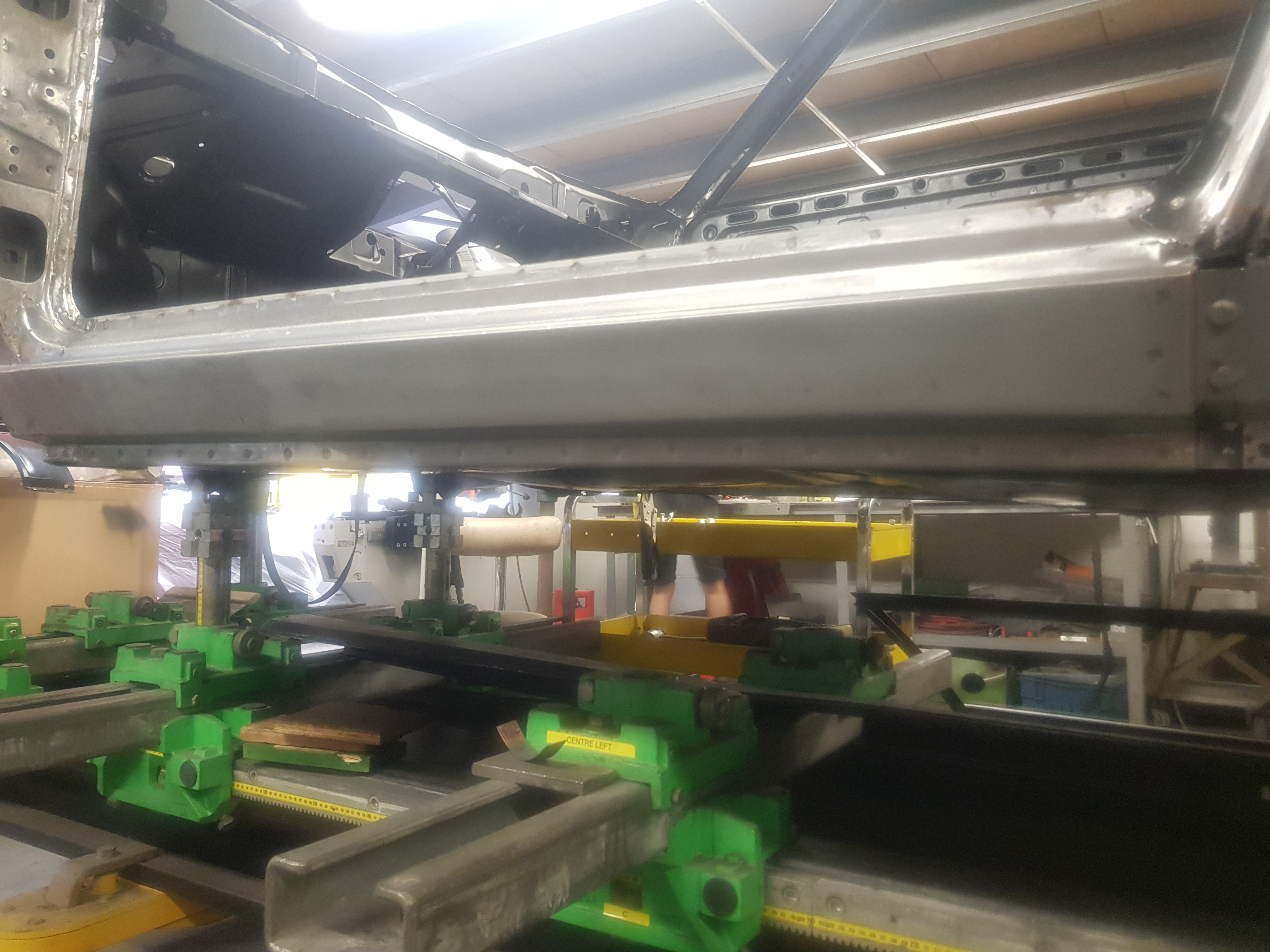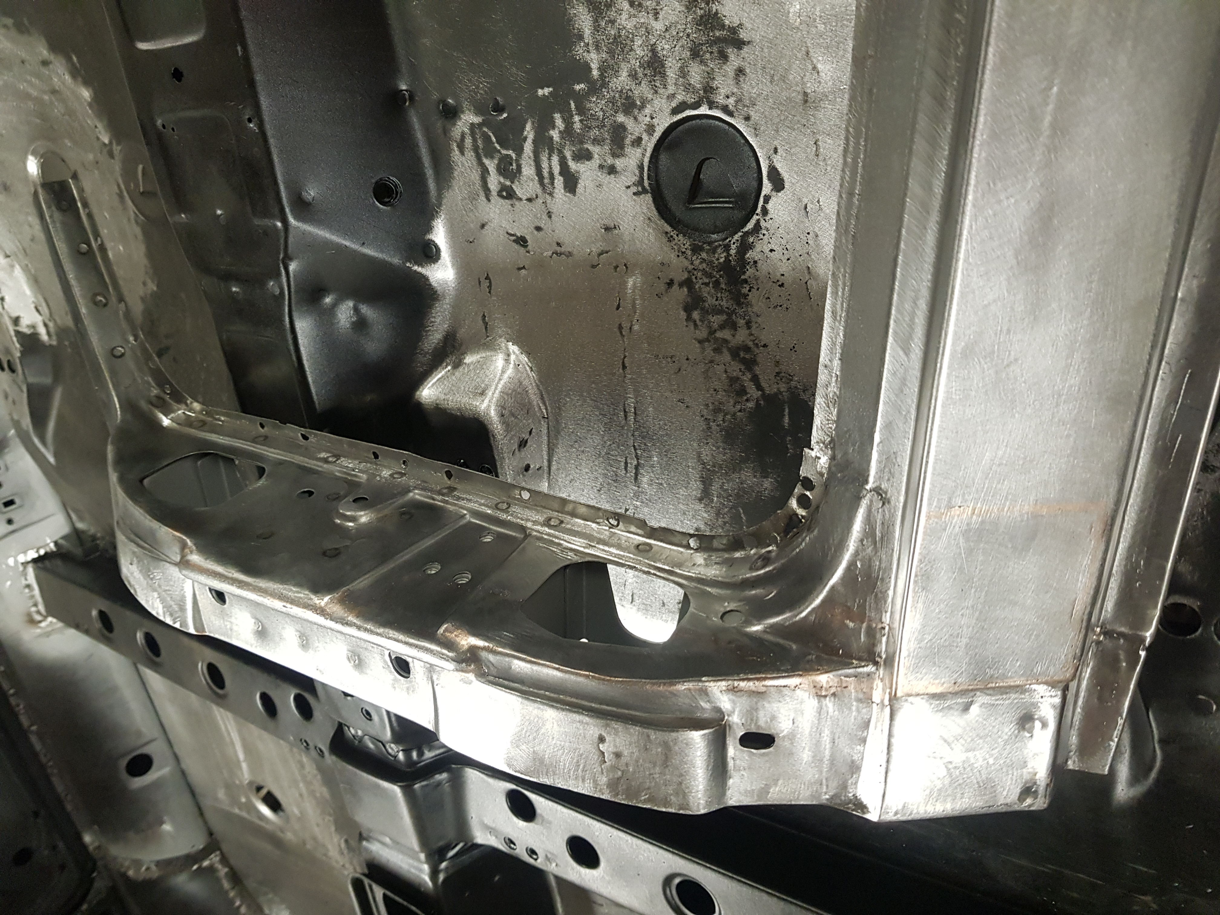 The A post is now installed, together with the repaired inner sill, floor outer edge, the newly manufactured sill chord and reprofiled outer sills.