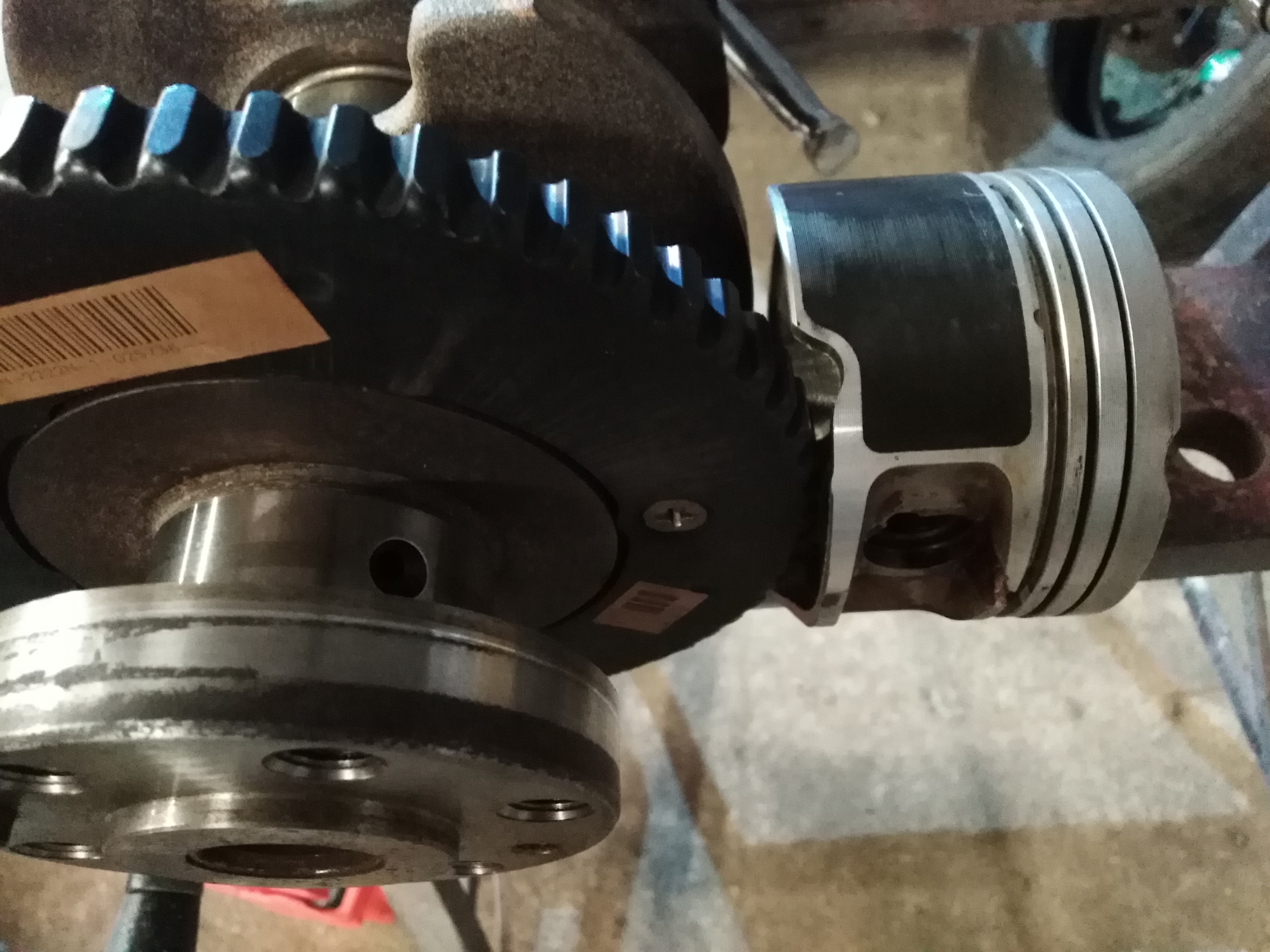 Checking the bearing clearances with plastigauge it's obvious to see why the piston isn't uniformal at the base of the skirt, runs very close to the crank position sensor ring. Never realised how close the balance webs get on bdc either.