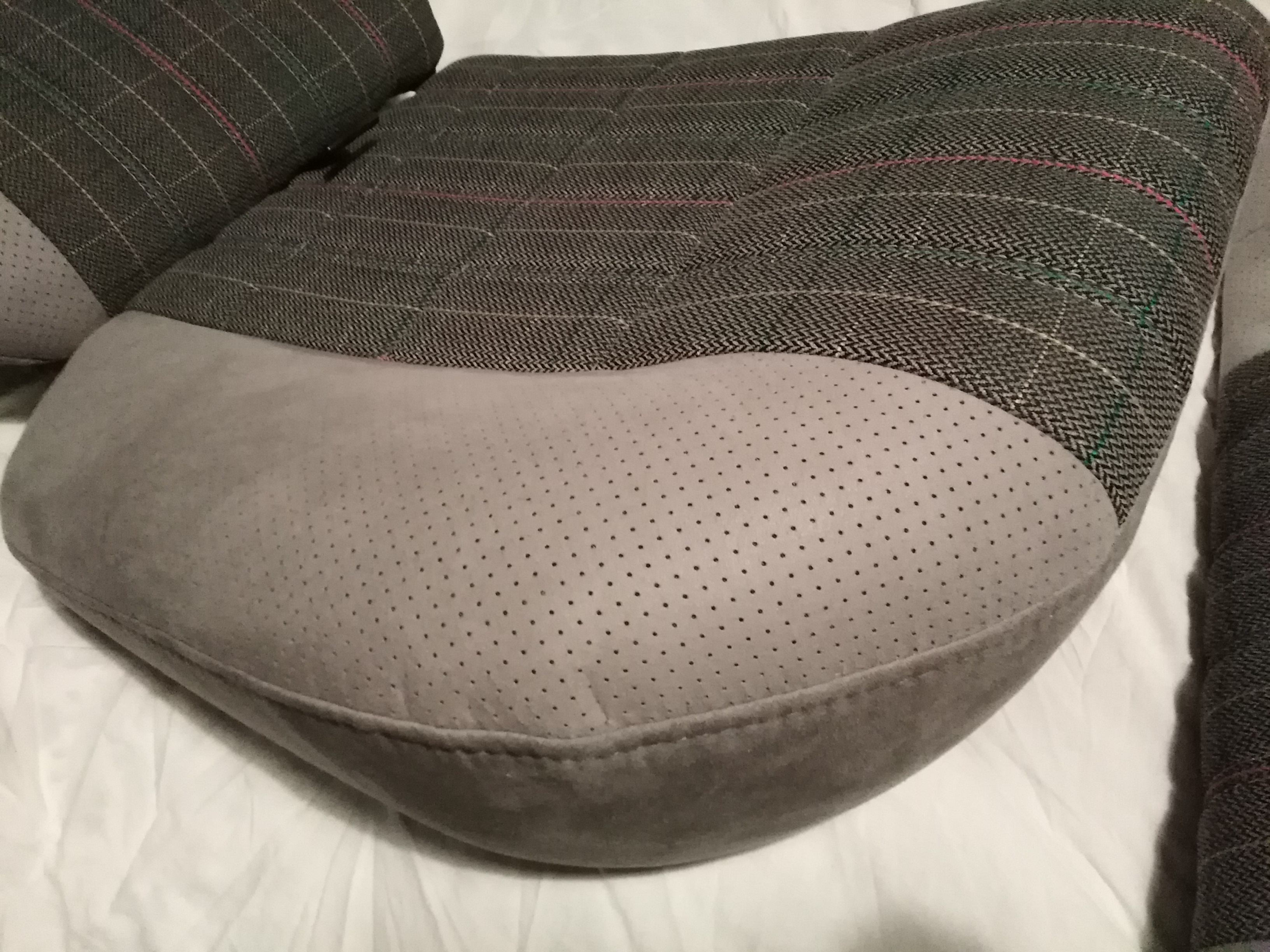 All the material is new, 2 types of grey alcantara and the central pattern. Even all 4 headrests were redone.