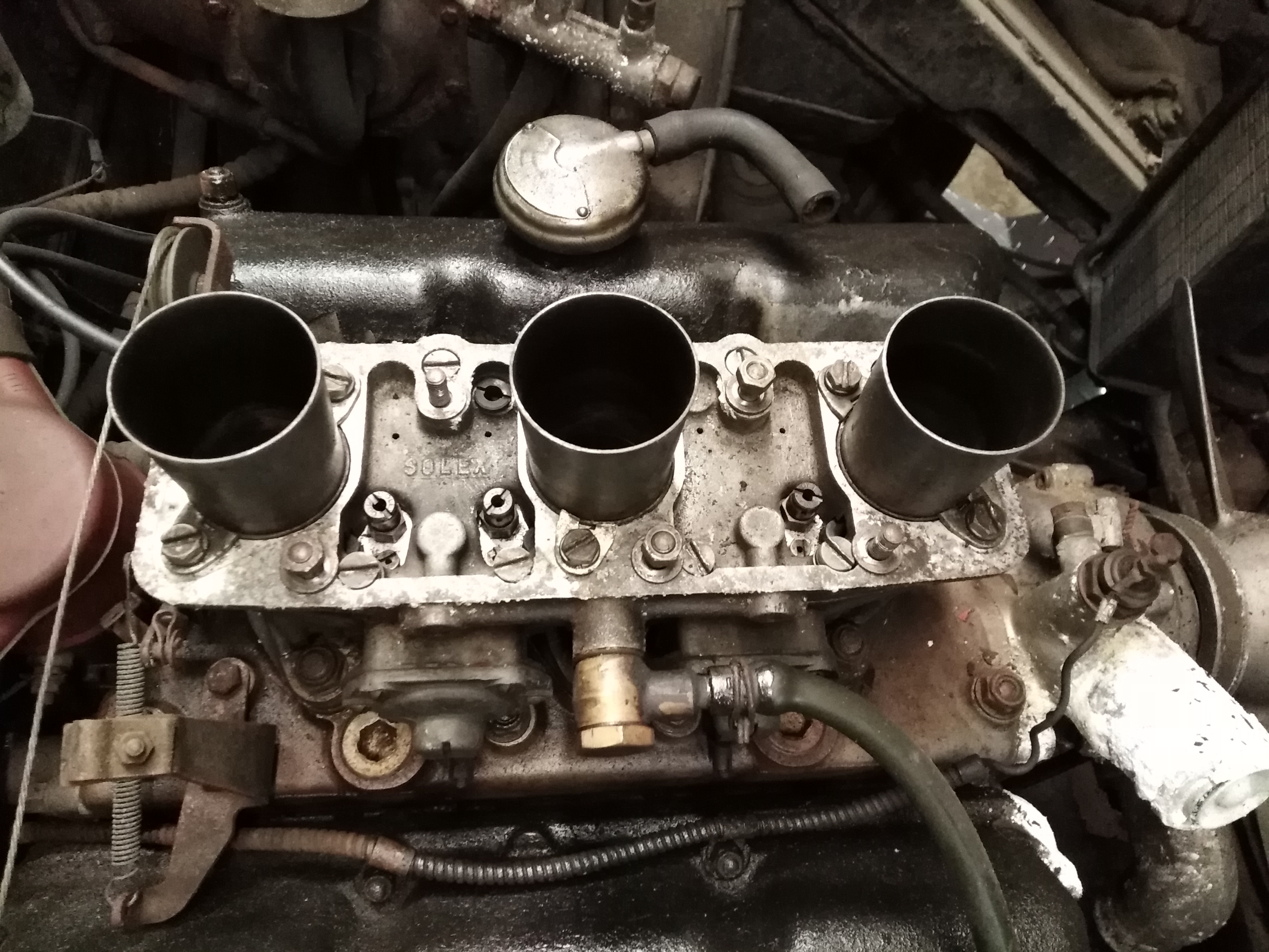 This is what is know as a 3B car, so has a single Solex carb but it has 3 venturi so is a triple carb in essence. Later cars, especially in 2.8 capacity (this is a 2.5) had triple Webber carbs, so like the Sud it had a venturi for each cylinder.