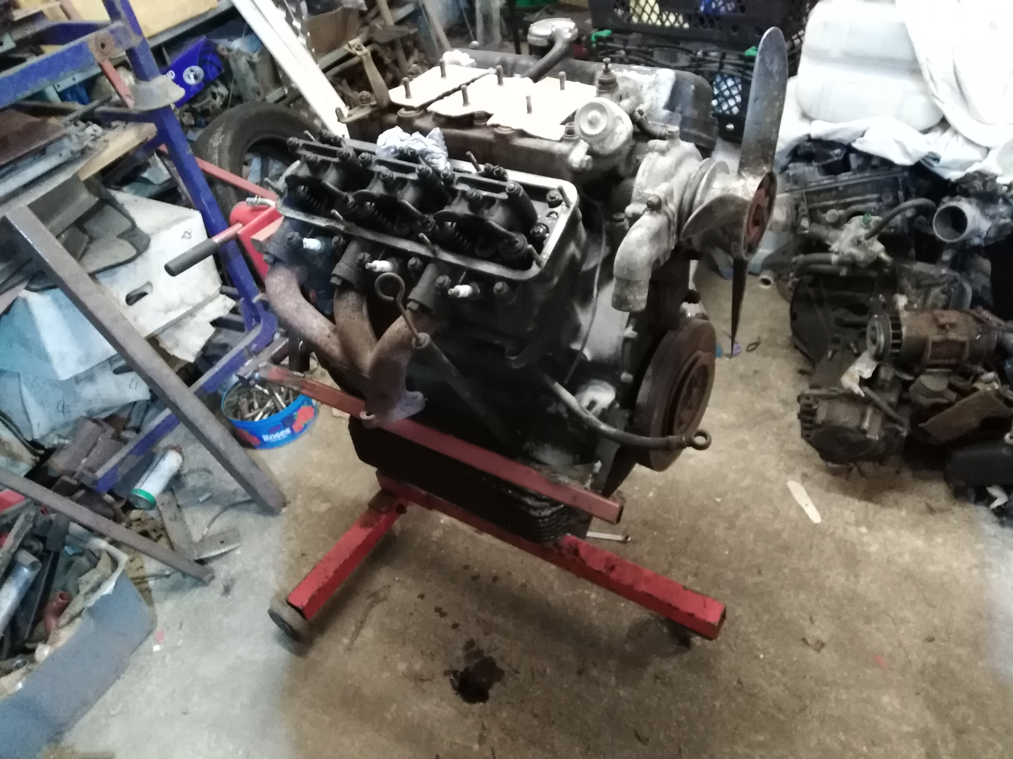 Engine now out of the Flaminia on my engine stand, a few quick adapter brackets made out of leftover box section that had served as Sud frame cover back home then Y10 bracing, recycling at its best!