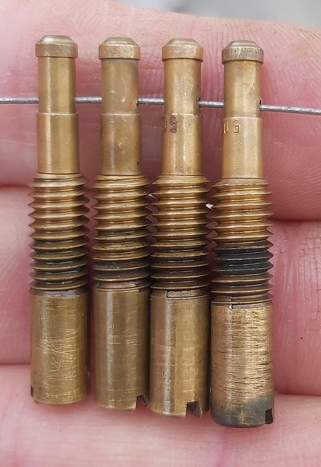 I am just doing a visual on the spark plugs to get an idea. One bank (Cylinders 2 and 4) the plugs are a perfect light brown colour. Bank 1 and 3 are a silvery grey colour so obviously lean. Air correctors are all closed, I turned the mixtures out another half turn before driving back 80 miles and just cannot get this bank to run any richer than is....... I took jets out and cleaned them last week , however I ran out of fuel the other night so could it have perhaps ingested more crud into the jets?? I really am stumped here......