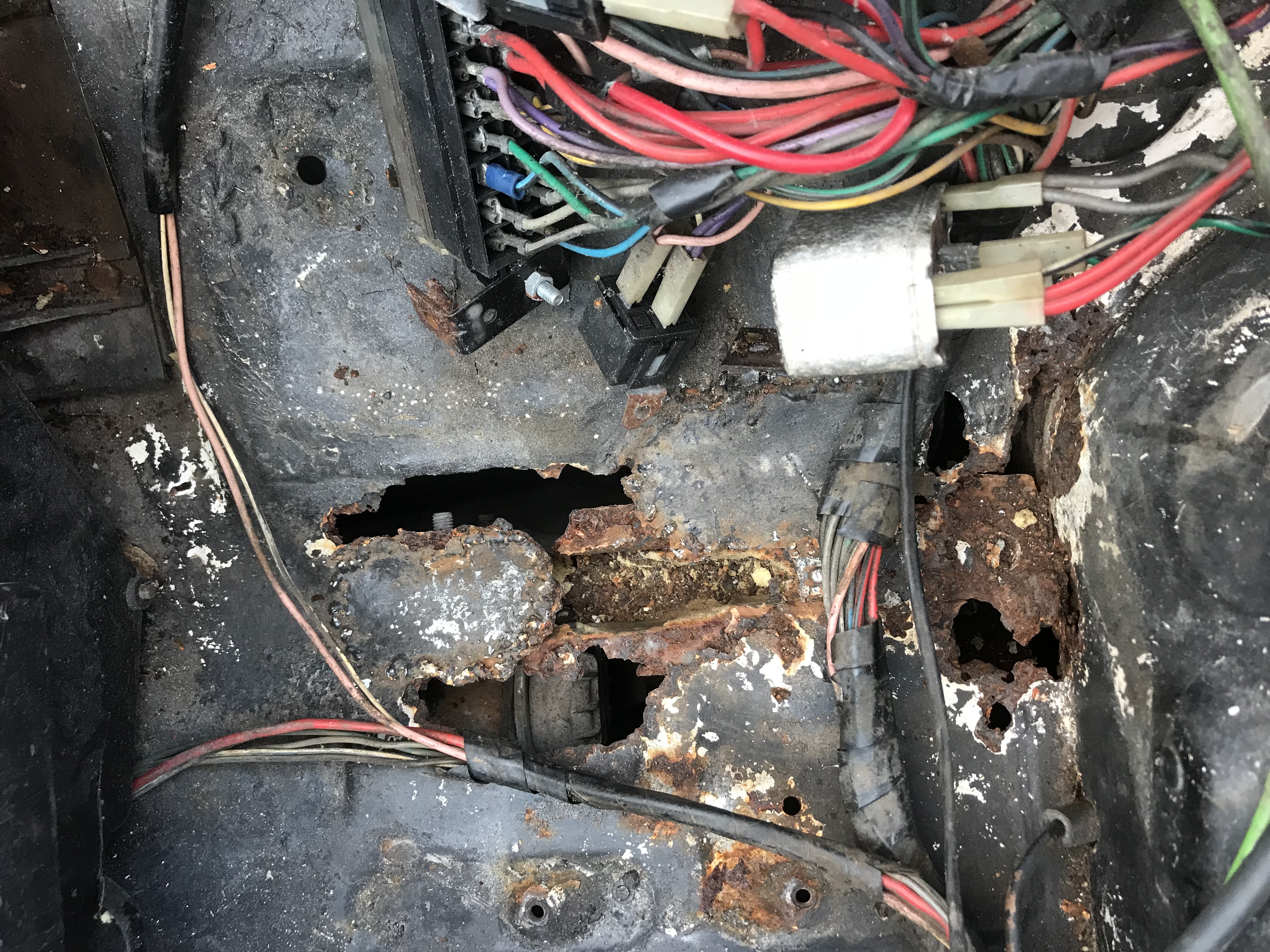 As I suspected the rot has spread across the entire service bay. Sadly there is only really one way to deal with this level of corrosion and my approach would be do it right or don’t do it. Doing right however this is likely to become a very big job as you’re almost certainly going to uncover further problems the more you remove bits. Start with wings to inspect the length of the wing mounting rails. I’d then strip everything out of the entire service bay.