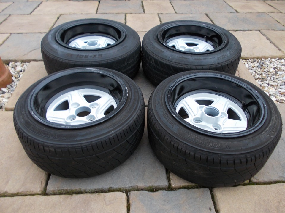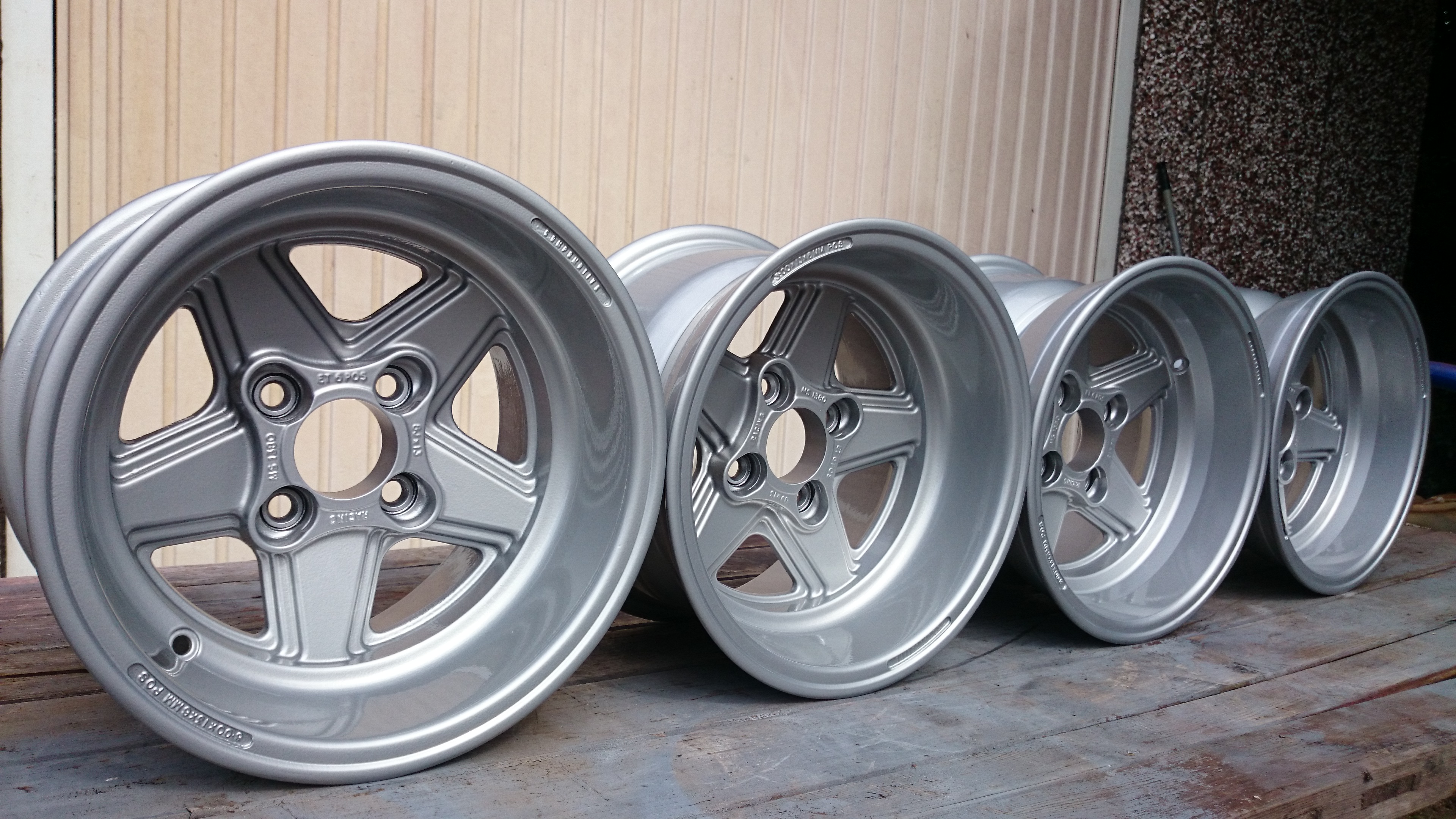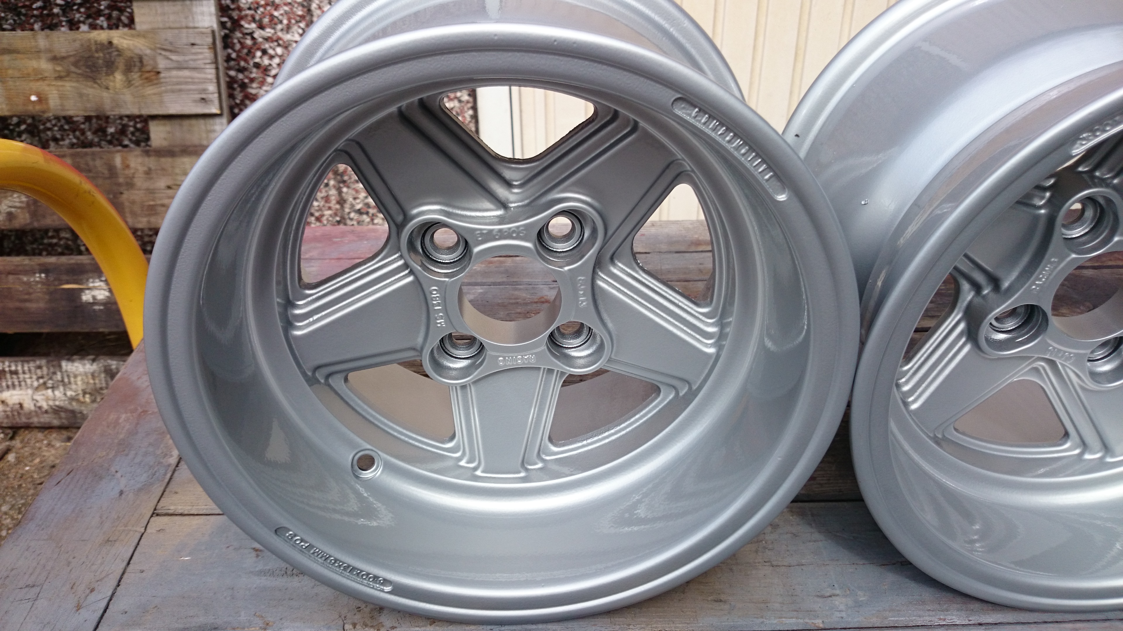 BUT, they were Compomotive MS 1380's, in other words the classic Pent Star design, in 13" diameter, and a whopping 8j (9") width, and a ridiculous offset giving a huge deep dish effect, almost perfect but for the fact that they had been assembled as a "set" from mismatched pairs, probably from an Opel Manta GT, early VW or other GM hub'ed cars. That means they were 4 x 100mm pcd, different centre bores etc etc, but are they the right sort of wheel for Mike?