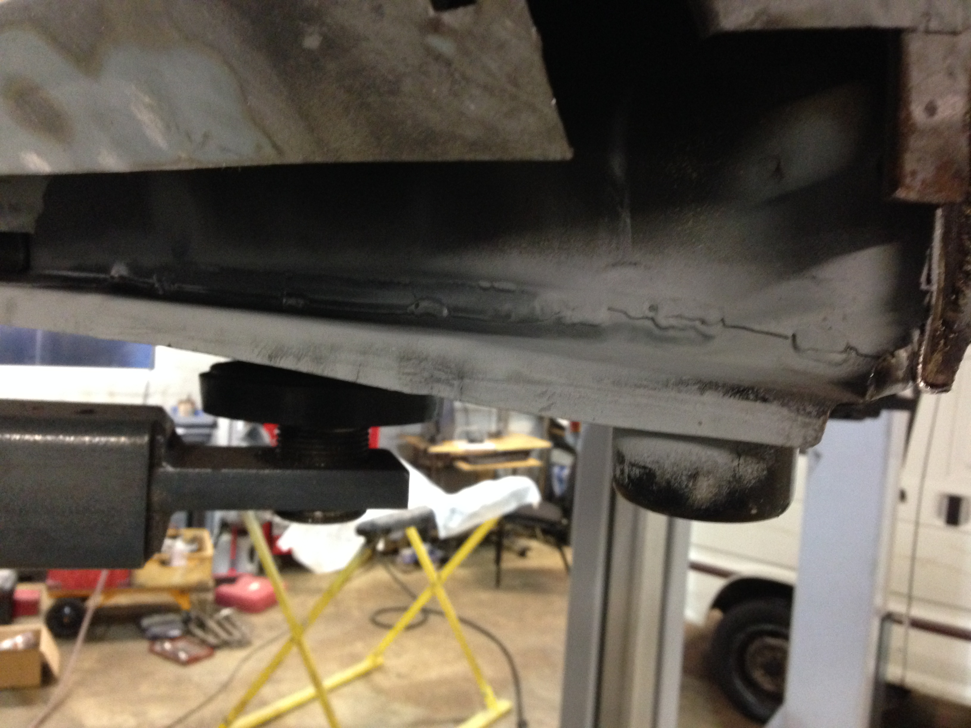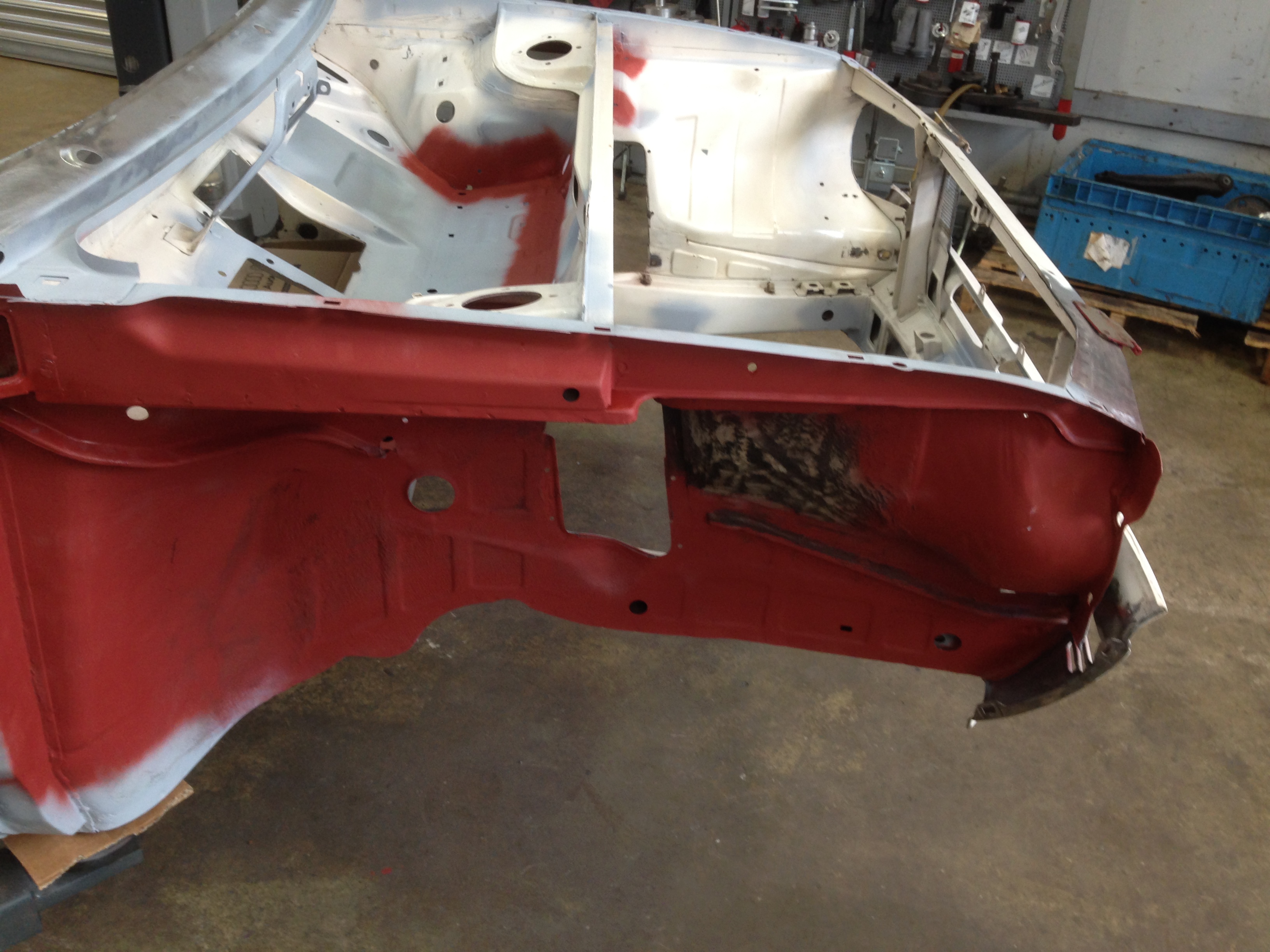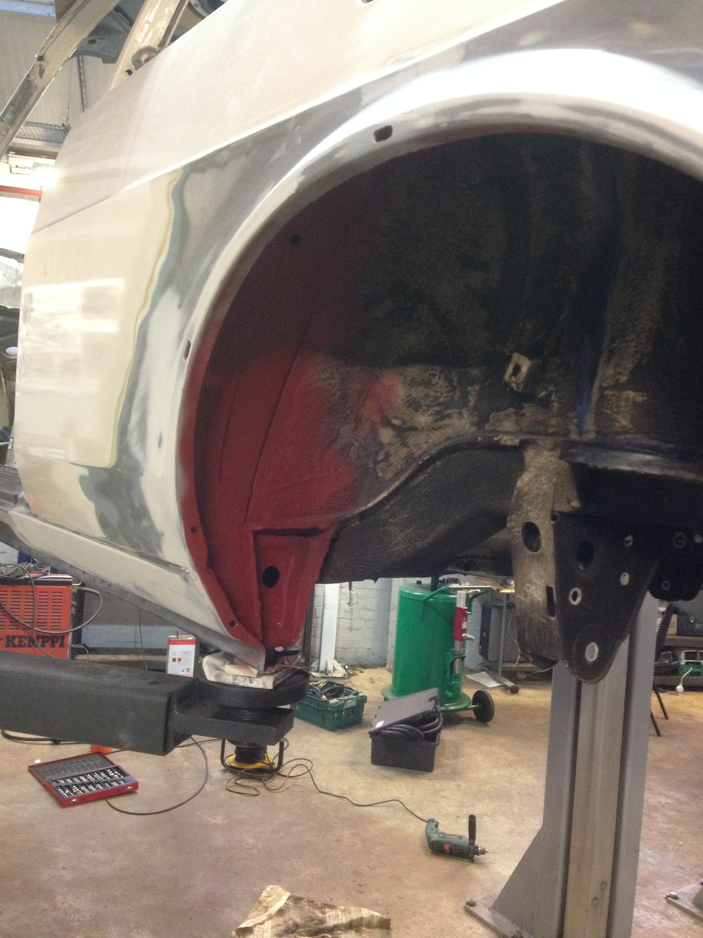 The area under the wheelarch will be etch primed followed by anti corrosion primer,paint and then stoneguard and again when it returns from painting the outside of the car will be coated in black wax