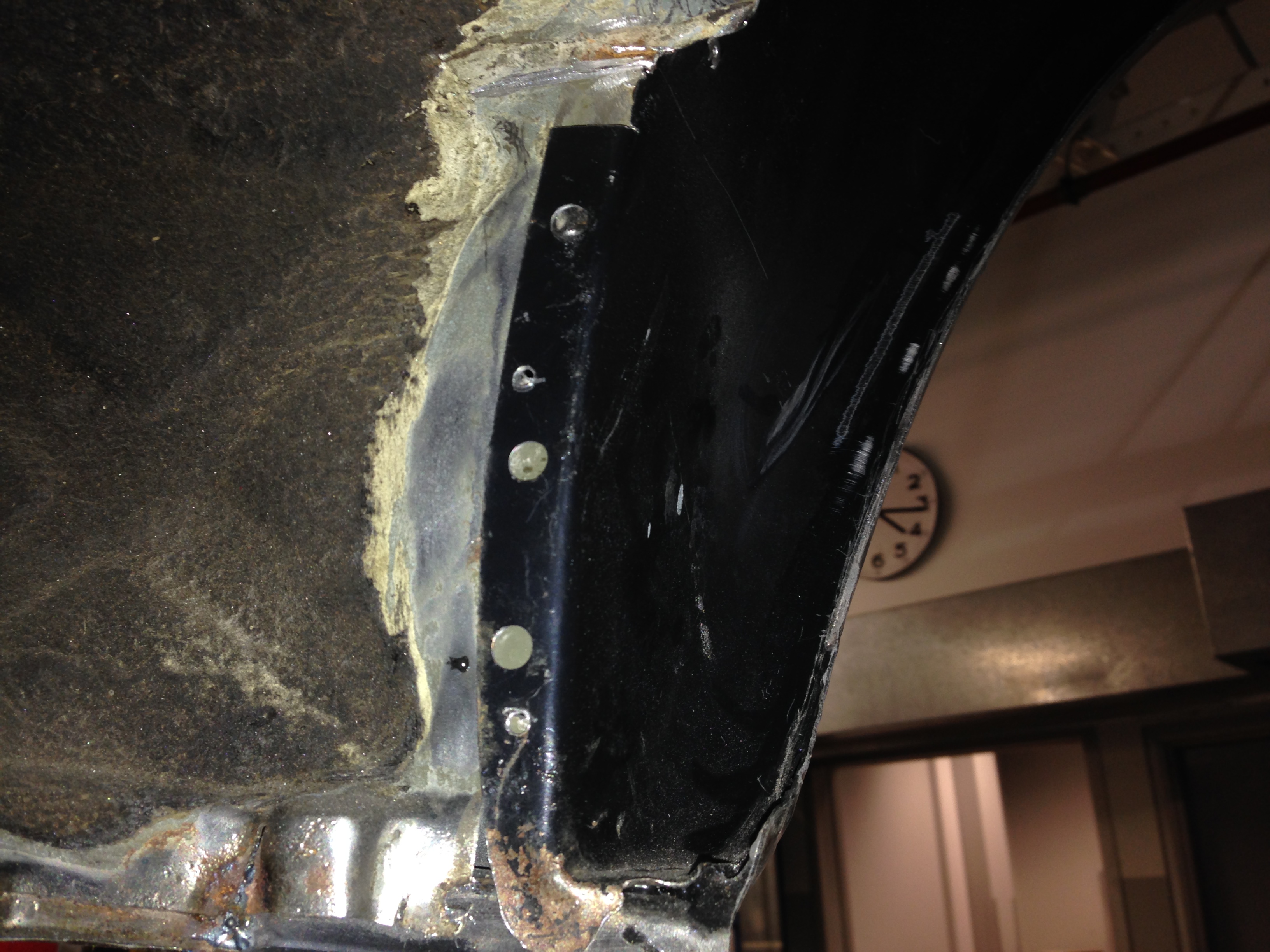 The car has been repaired here before having had a new wheelarch put on but there was no repair to the inner arch - just filled with some black "goo"