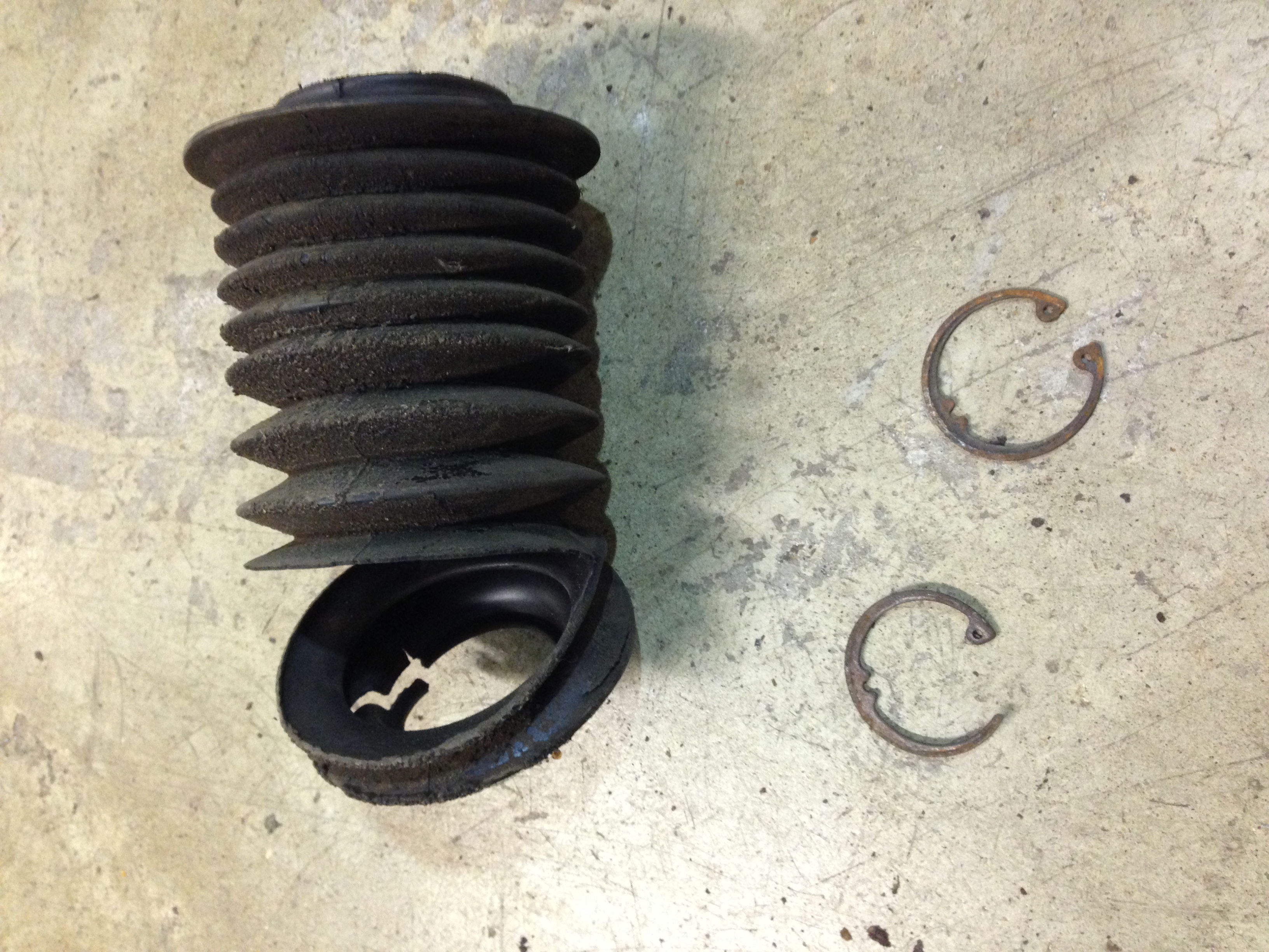 Only has one minor drama in stripping with the circlip in the bottom of one of the strut tubes - this side had the rubber boot split and I guess this had been letting the water in and it collects in the bottom of the strut