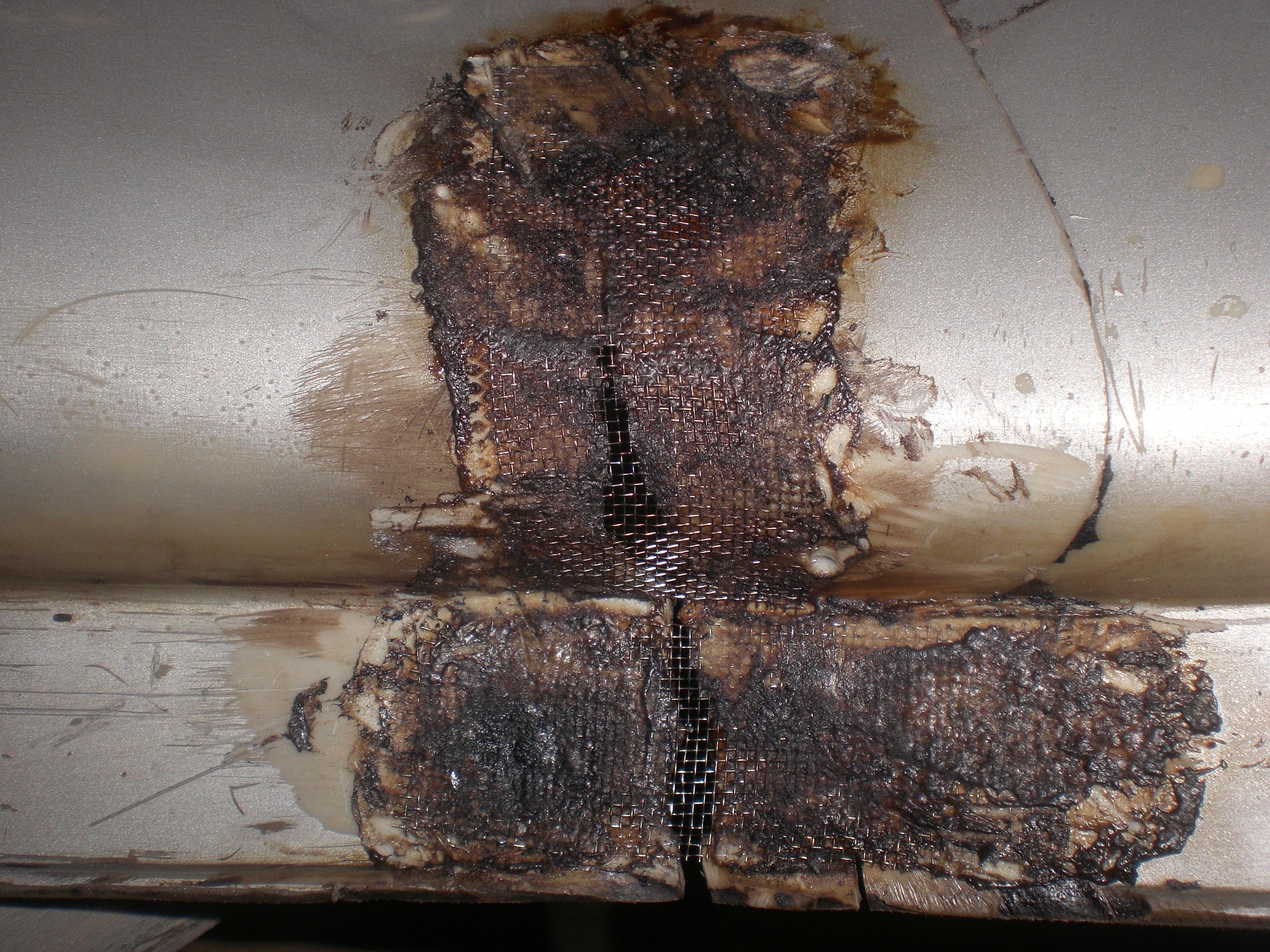 so today the stainless steel mesh arrived so i burned out the old aluminium mesh and melted in the stainless. bit more messy now as it's been heated 3 times instead of one but it's made for a really strong bond between the cracked parts