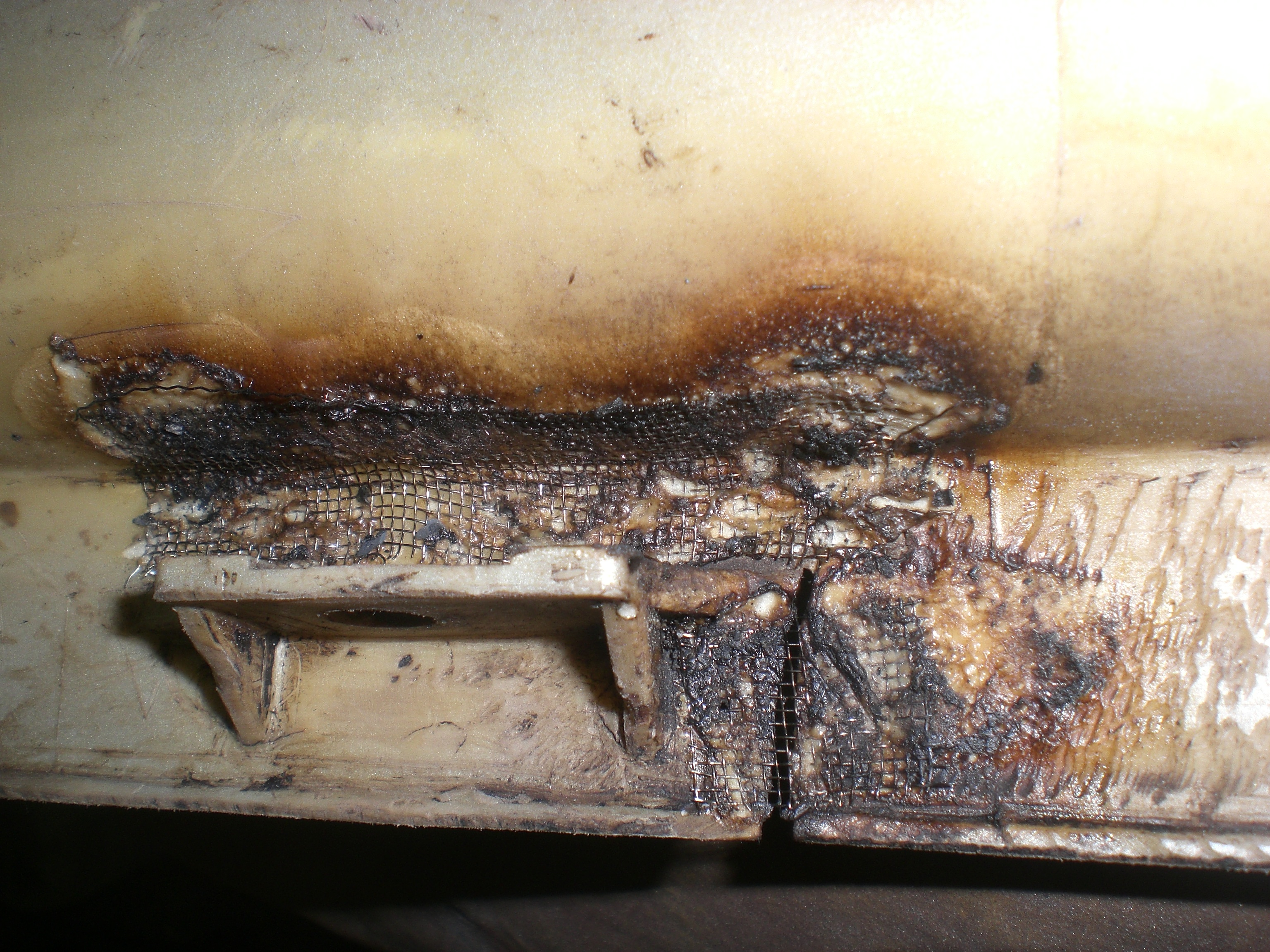 once the srainless mesh was shaped and the plastic melted through it then it became really strong again, a great result! had to take care not to leave it sticking proud as it sits close to the wing around the top, don't want sharp edges chafing
