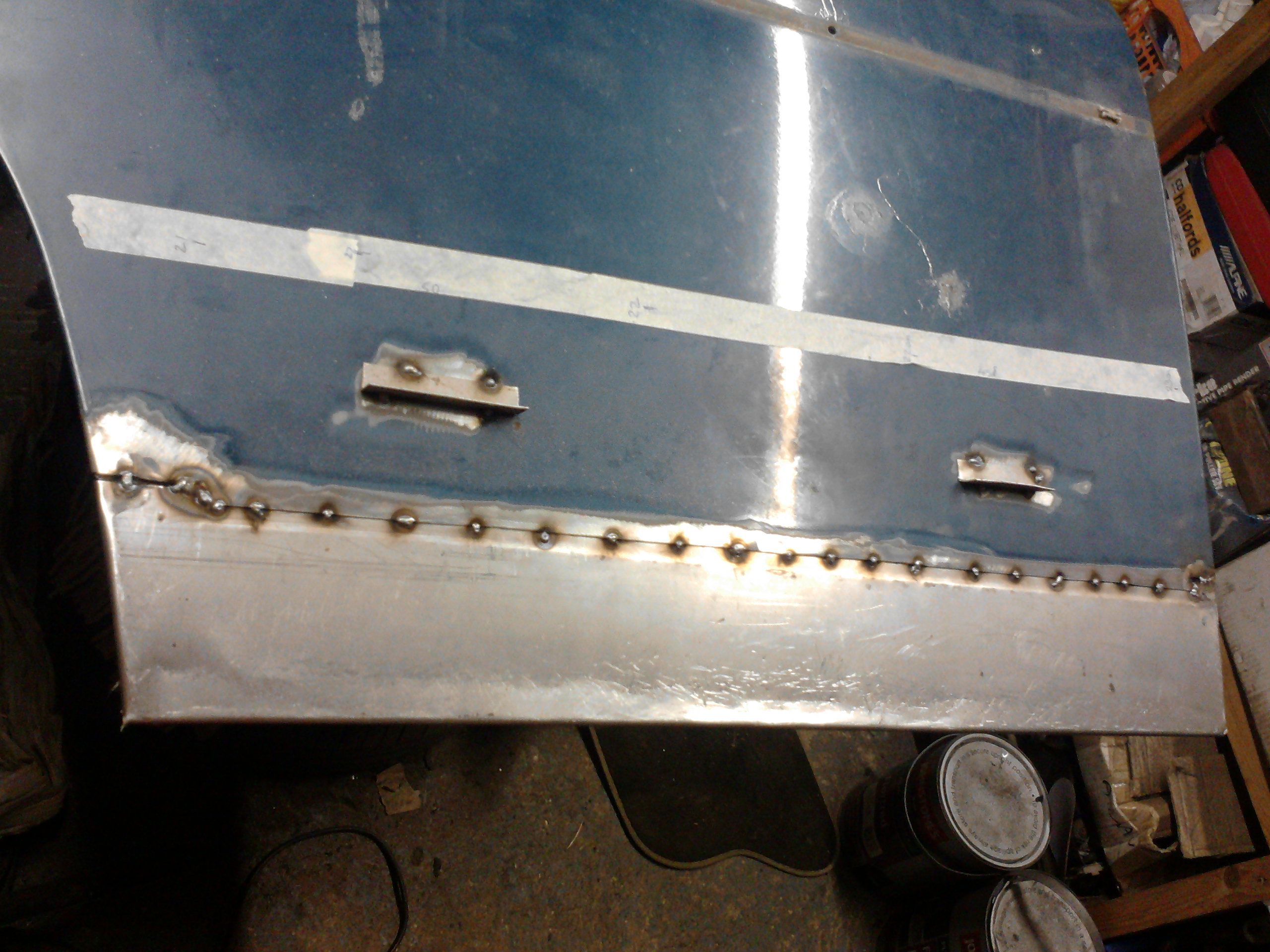 when it was all folded over the alignment was checked again, and noted that it was about a mm shy of where it needed to be, clearly shown up by the little brackets I made. was simply then a case of tapping it up to where it wanted to be then welding to the original skin and door frame.