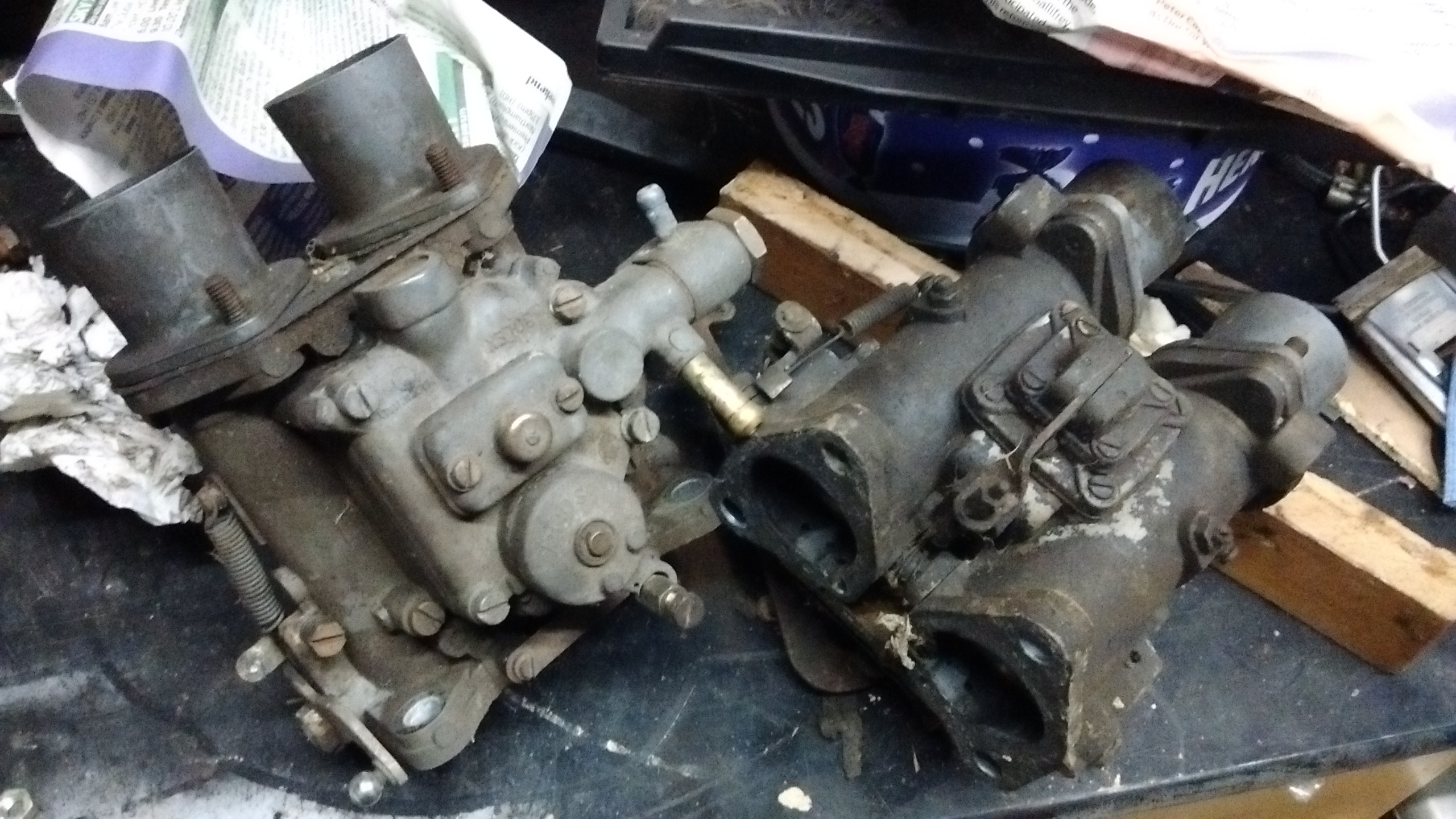 carbs looked ok on the outside, did consider sand-blasting them but thought it'd cause more issues than solve for the tiny bit of dirt on the outside, but inside was a mess of furry crud