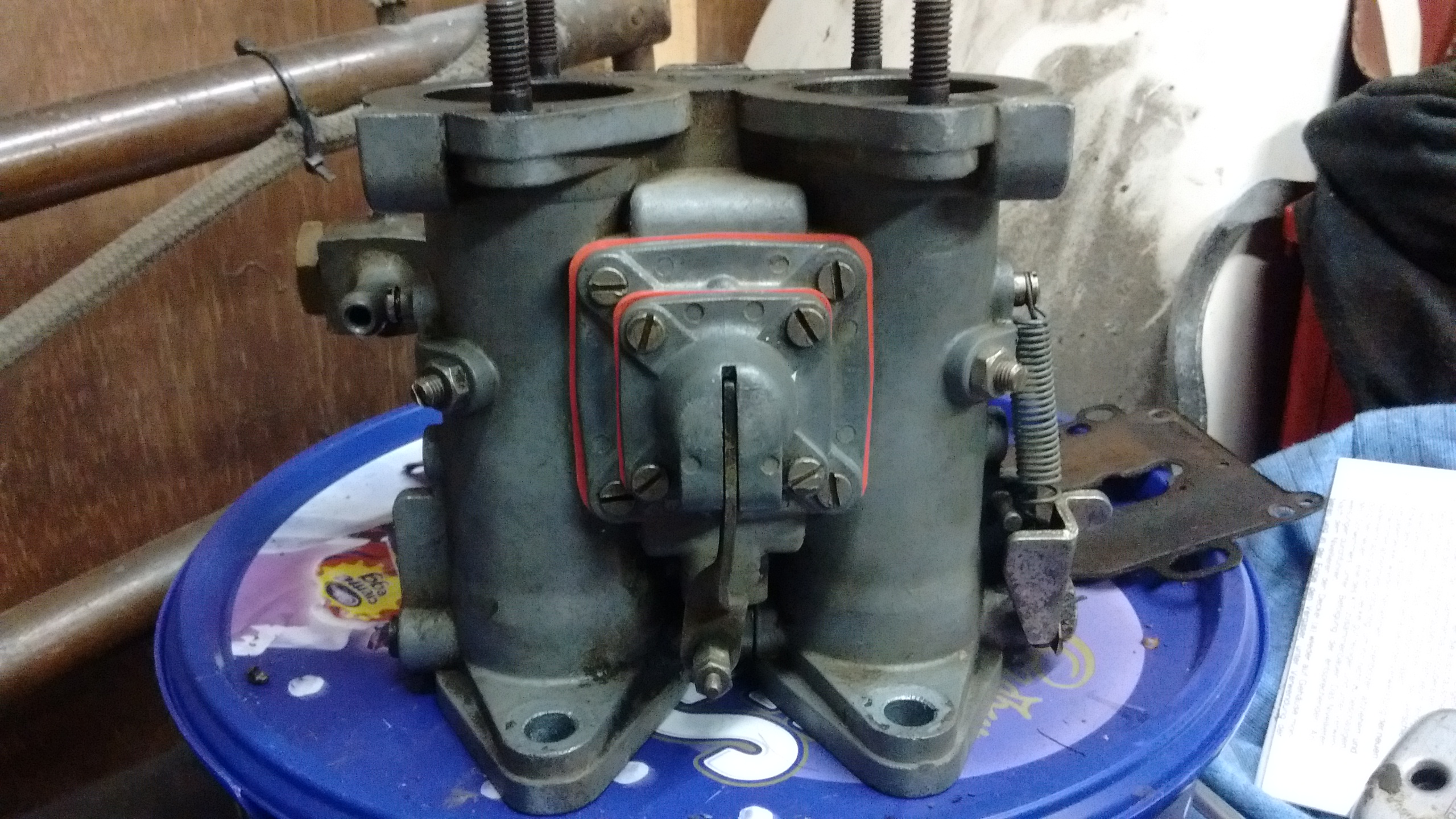 one carb now built up, all new gaskets and sealing washers. filter on inlet cleaned, new diaphragm for the acceleration pump, new float needle etc