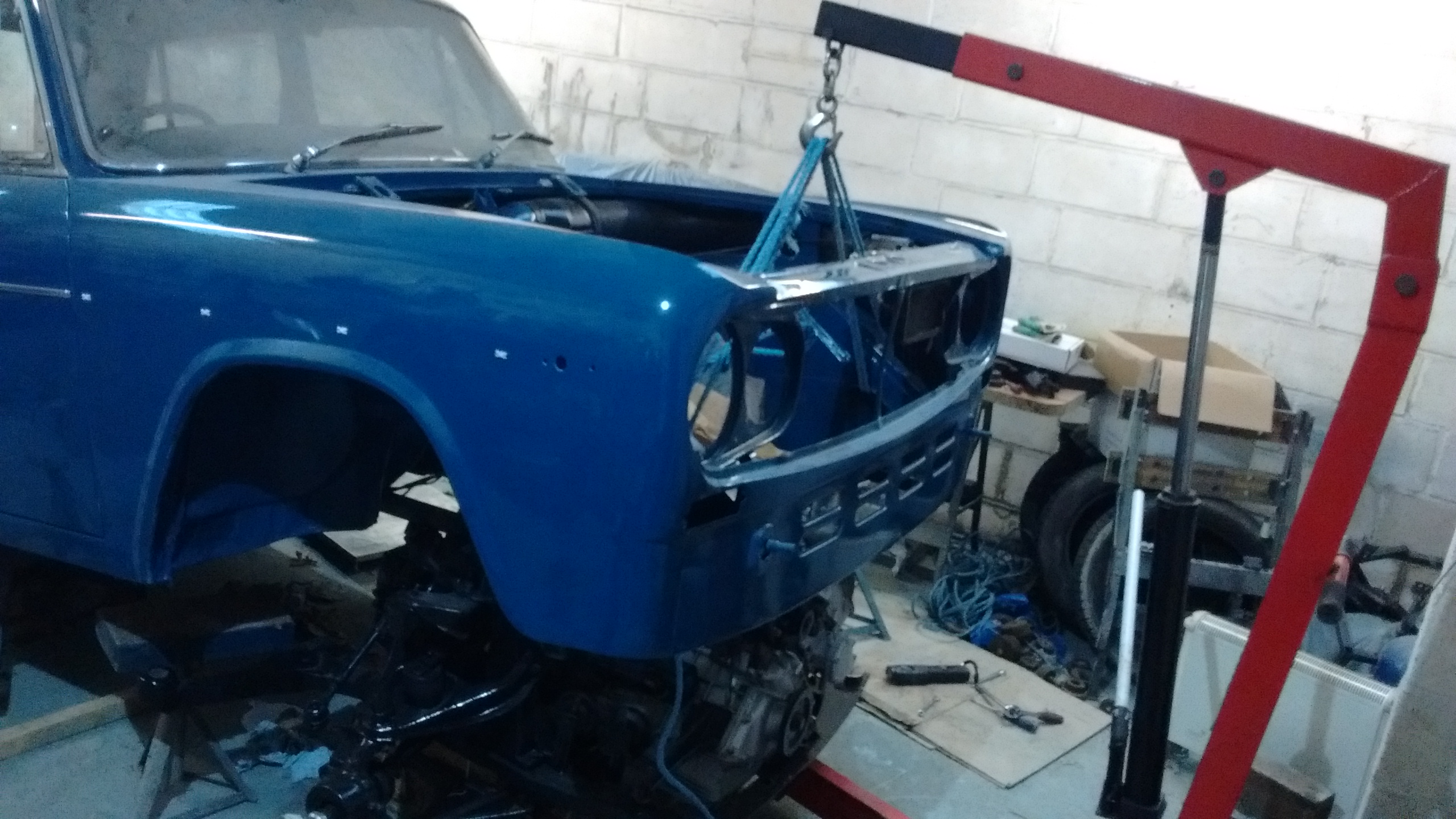 with some measuring I realised I'd have to get the front of the car up much higher to clear the engine, approx. 32" off the floor to be precise!