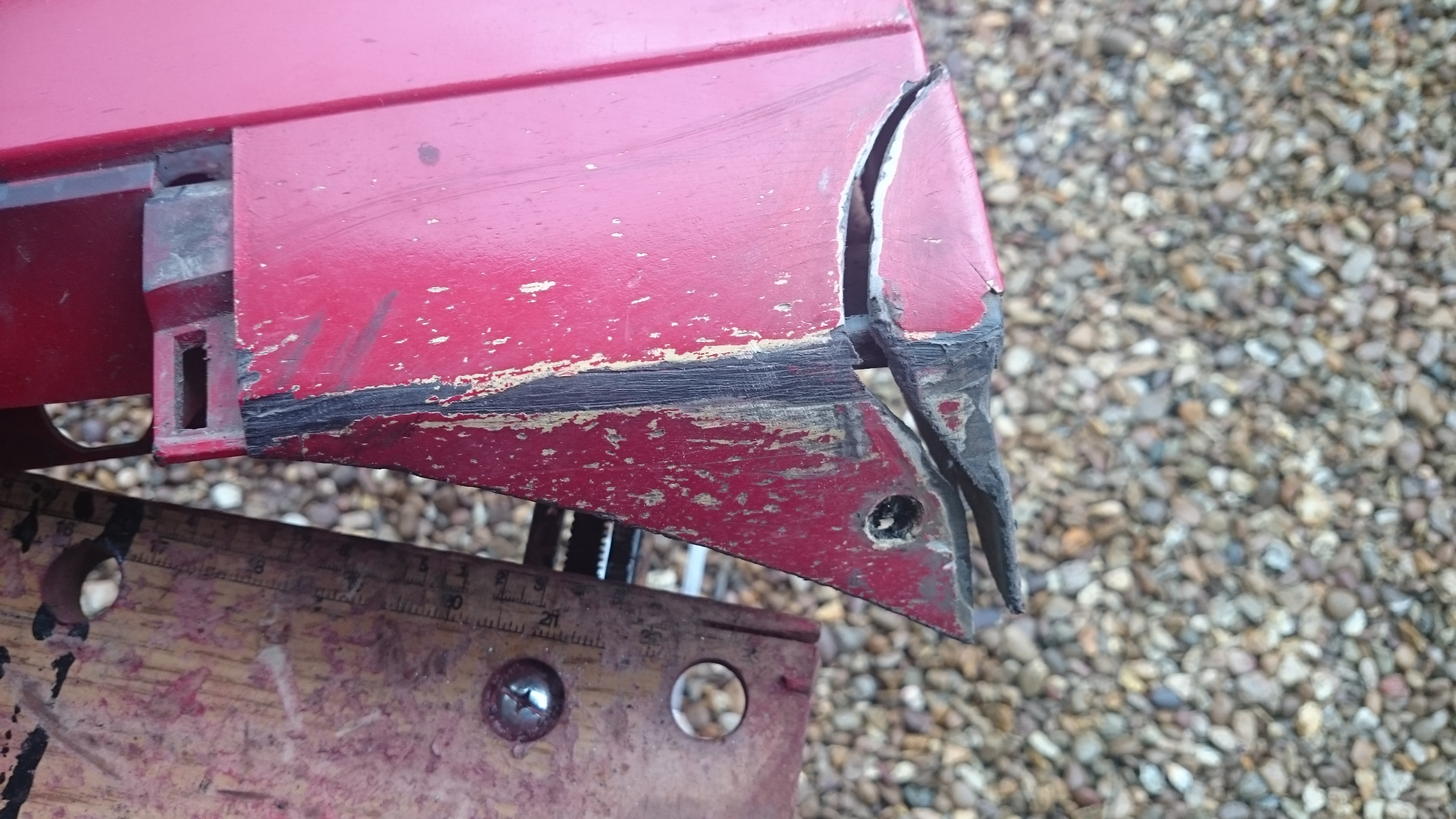 as this edge is declared fit for purpose it meant that the repair section wouldn't need to go all the way across, indeed the wing mounting bolt hole could be kept