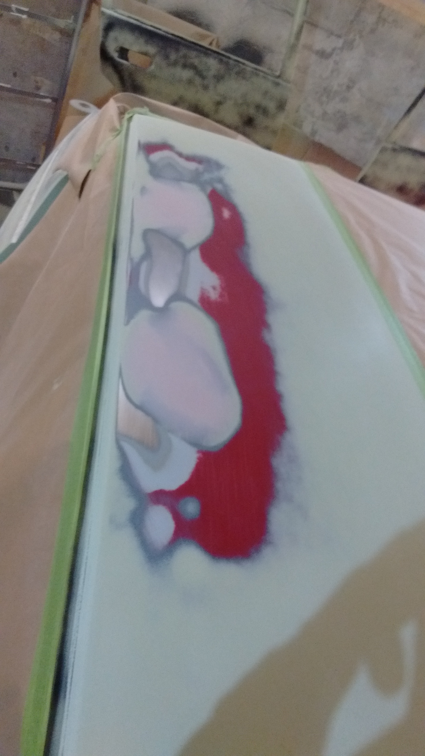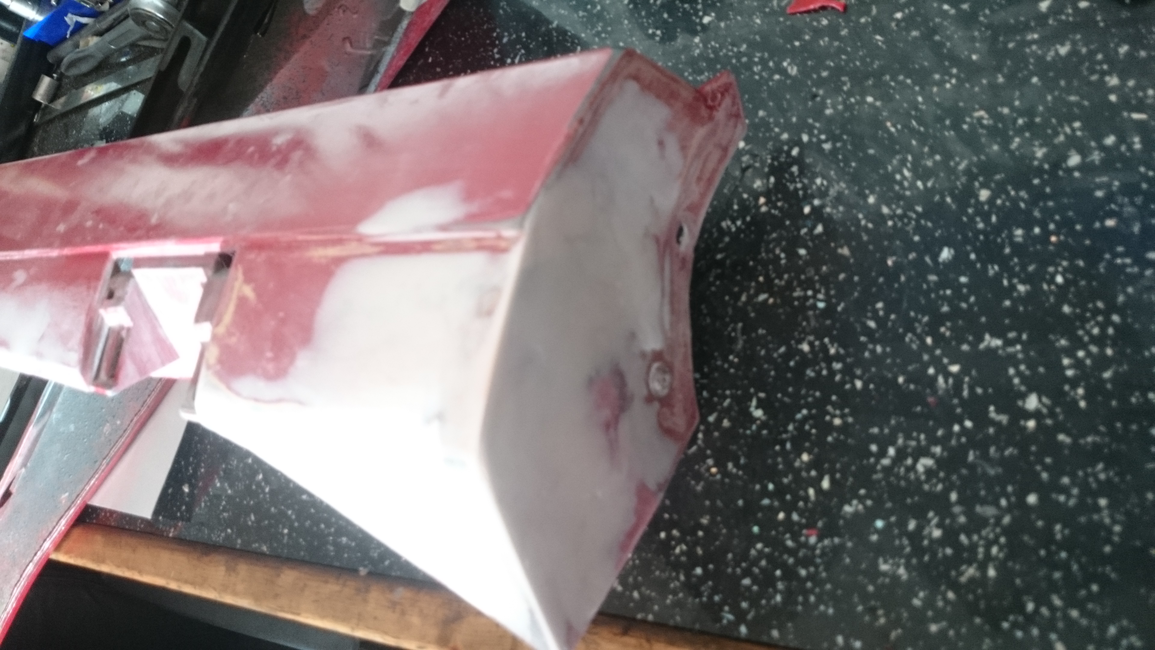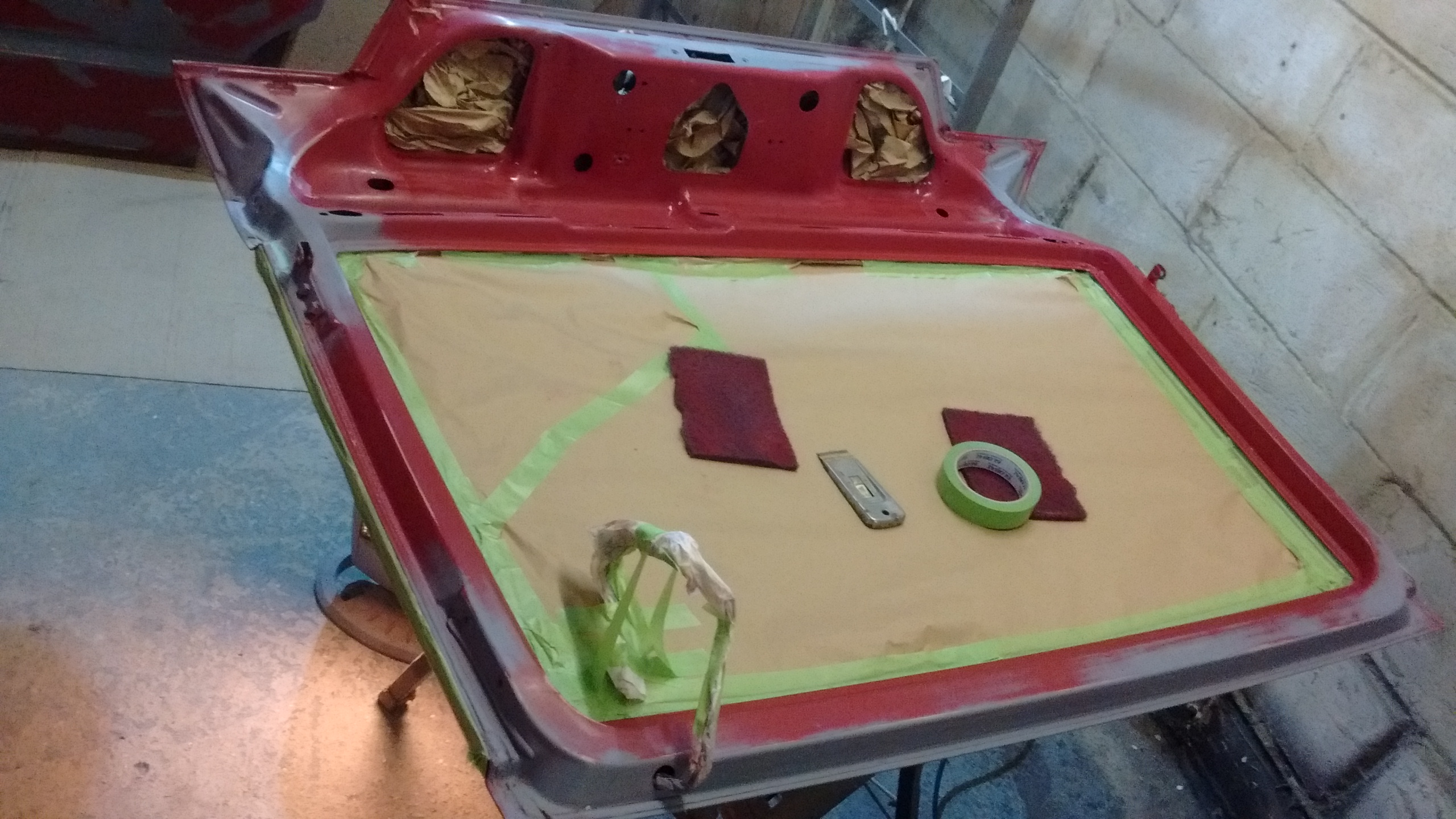 tomorrow with some help from paul we should be able to do the final sanding, clean everything down then re-mask it all before getting to put some red on....