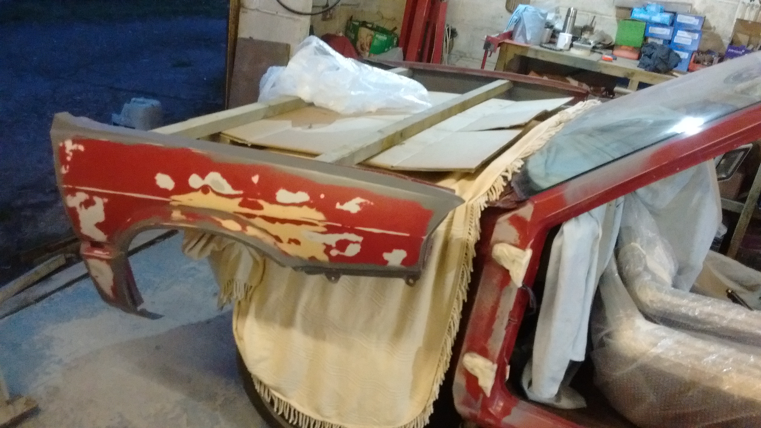 So I too have been doing bits and pieces this week like stripping all the interior, removing all the doors and trim (yes hatch is still attached), repairing the side skirts at last. (been bugging me every time I went in the garage).