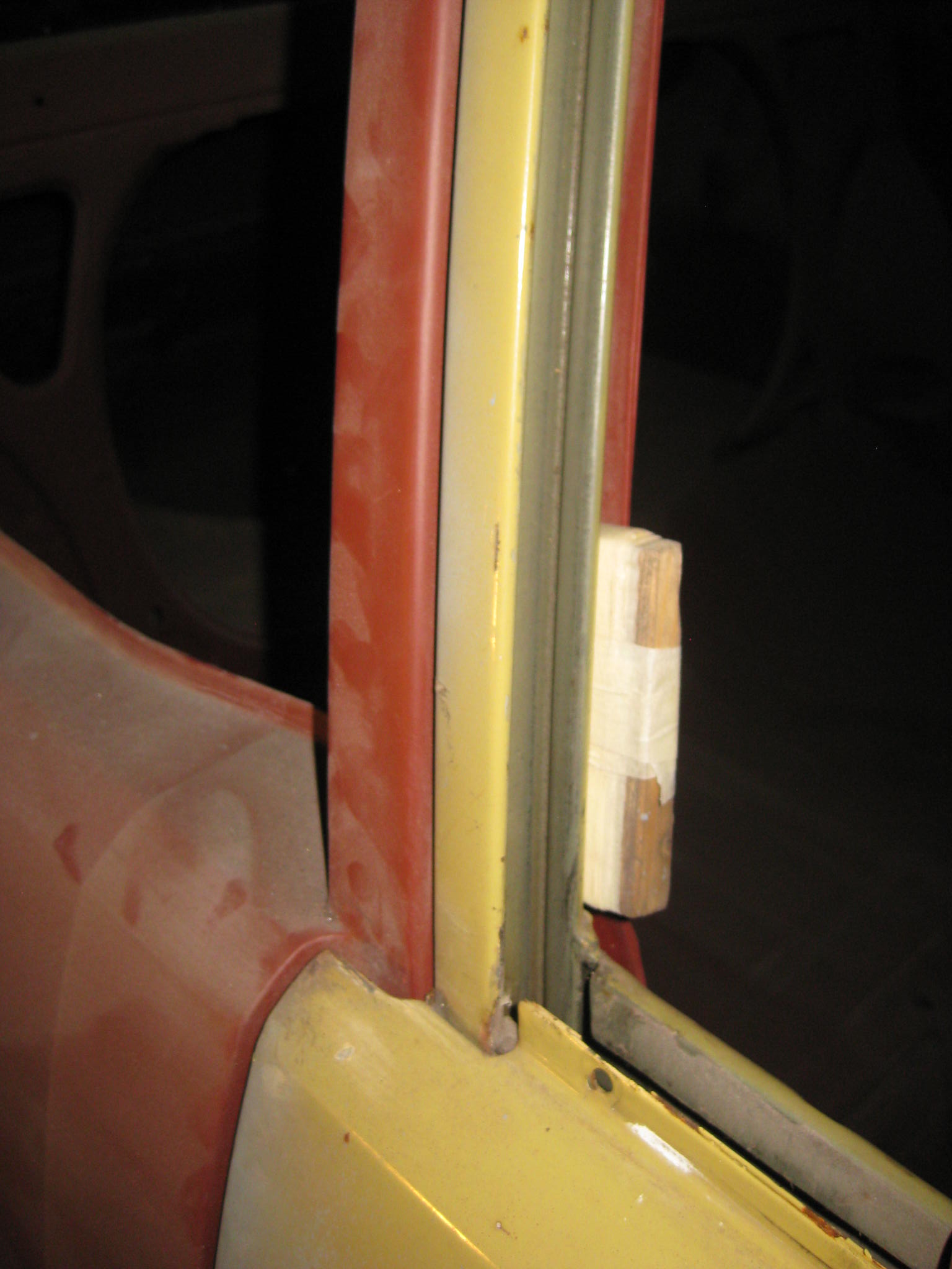 This revealed another problem....... the last person who messed around here welded the pillar out of position and it was rubbing on the door frame...