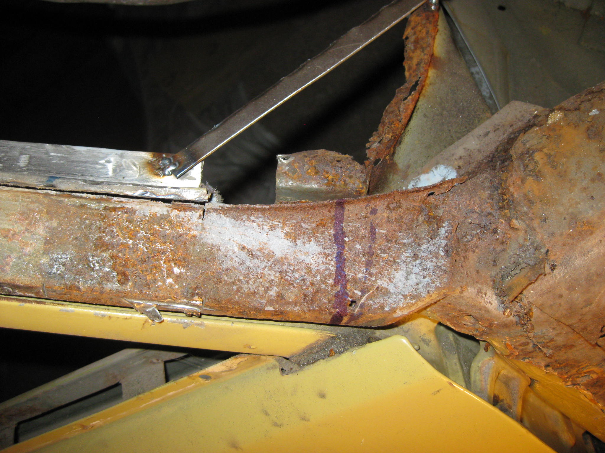 The 'A' posts on these cars are made up of 4 separate pieces and all welded together and then a closure panel pop riveted on. All sections are rotten and need major work.