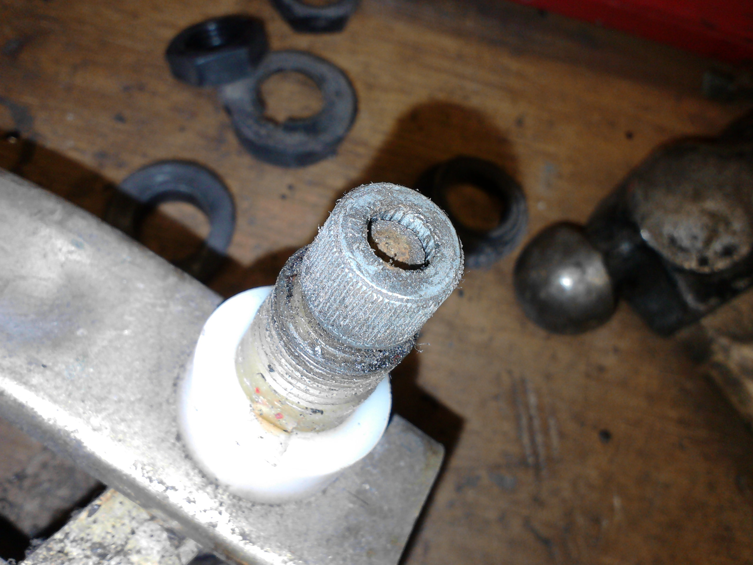 you can see the difference here between a good plastic sleeve guide for the spindle and a fairly well worn one, i have seen worse though!