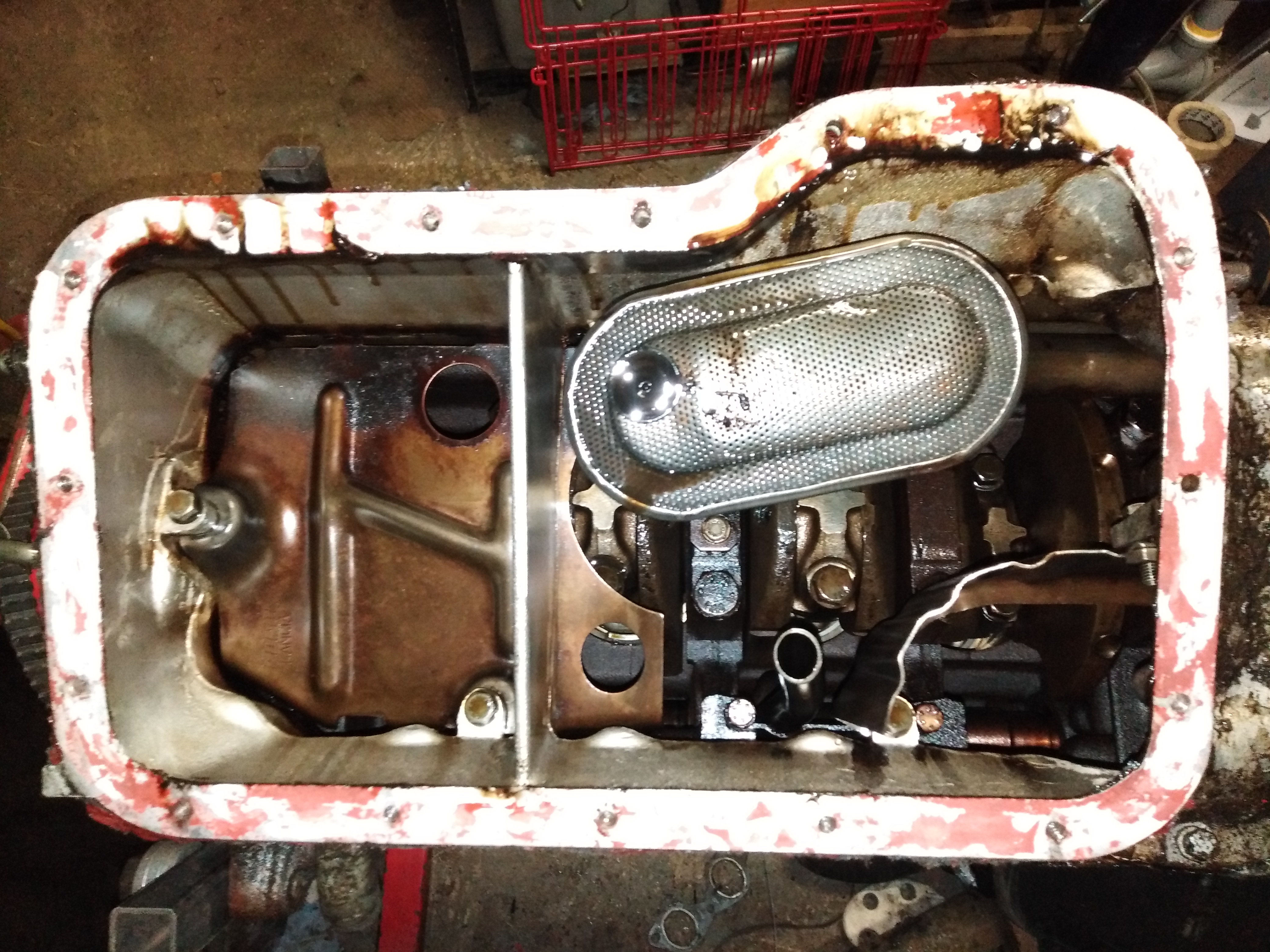 The engine has a cast iron block with a double section sump, this is an alloy deep section that has a steel bottom portion where the sump plug is.