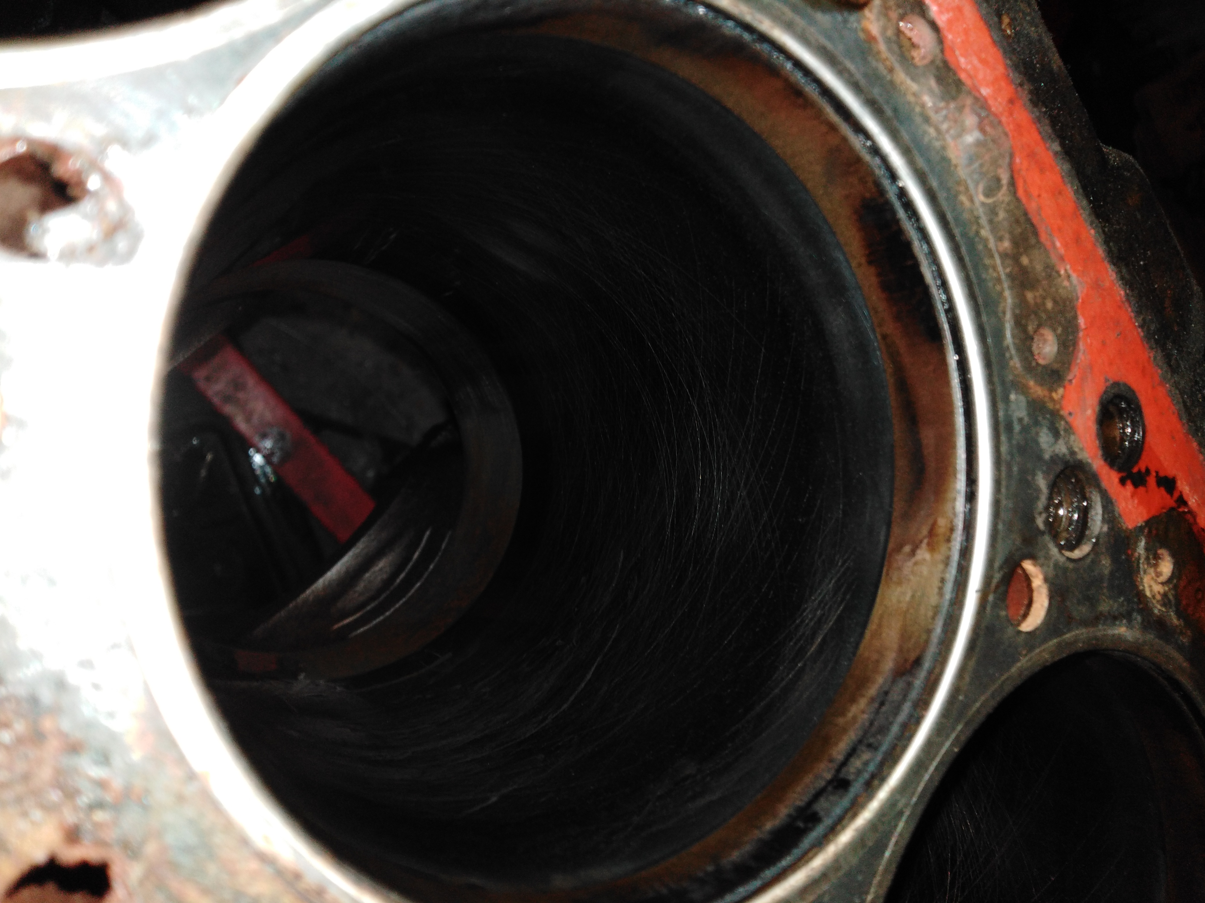 Bores look in great shape, minimal wear with no discernible wear lip should see them just need a hone once checked, new rings and shells is my hope.....