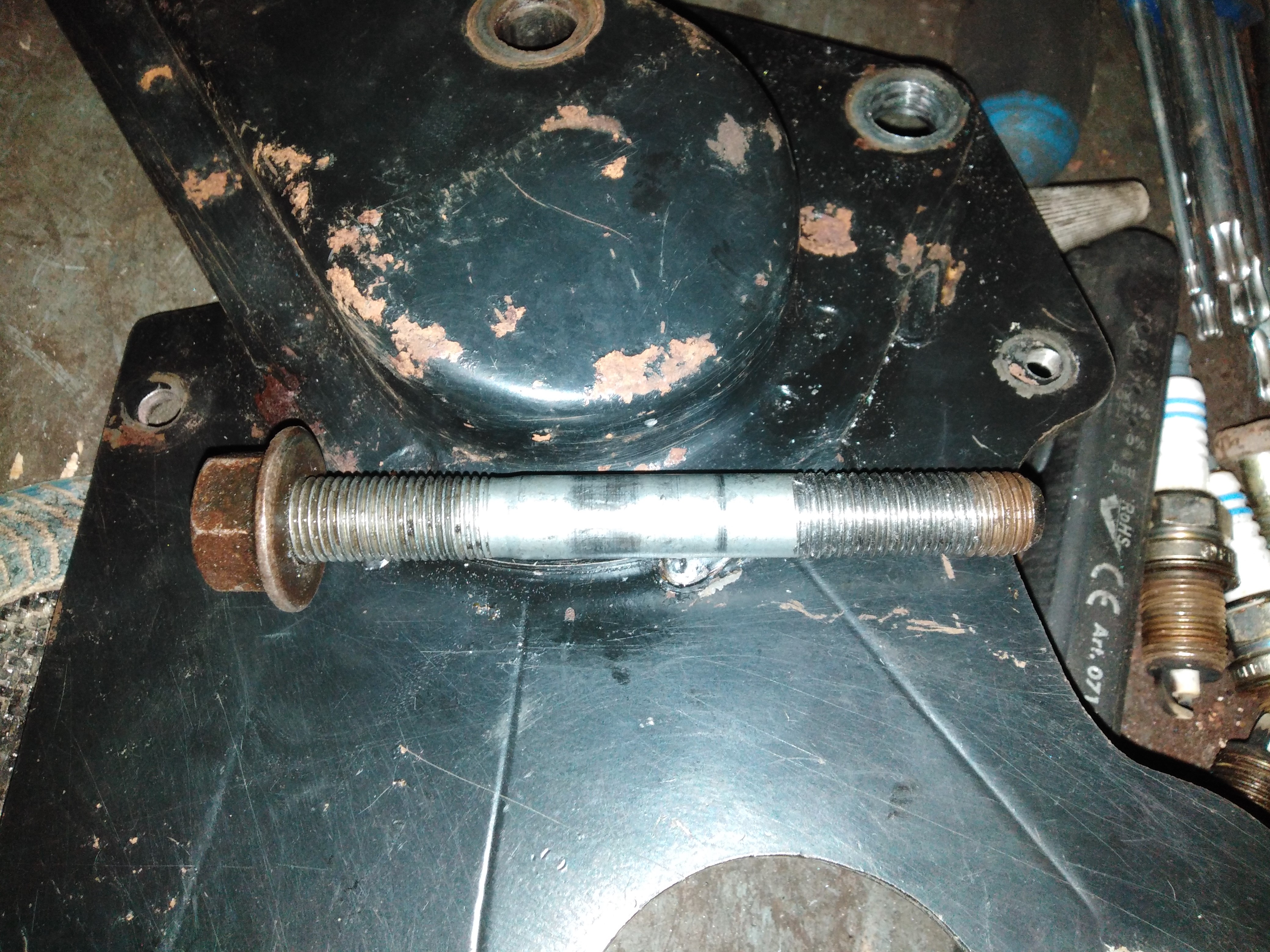 Last job to finish off the night and checking where the covers bolt up. Went to fit the engine stabiliser bracket which bolts to the head and water pump......stud pulled out of the head! :evil: