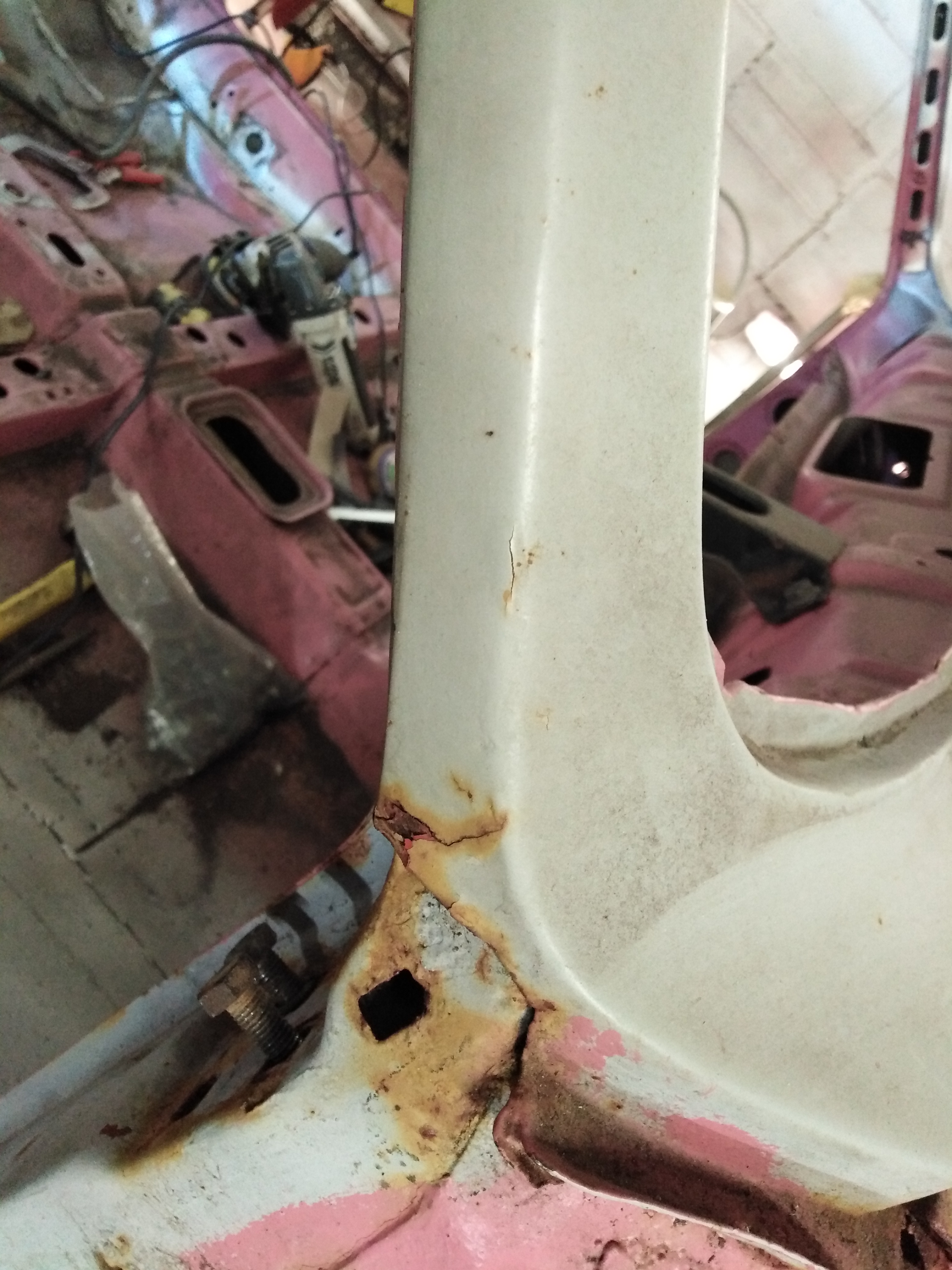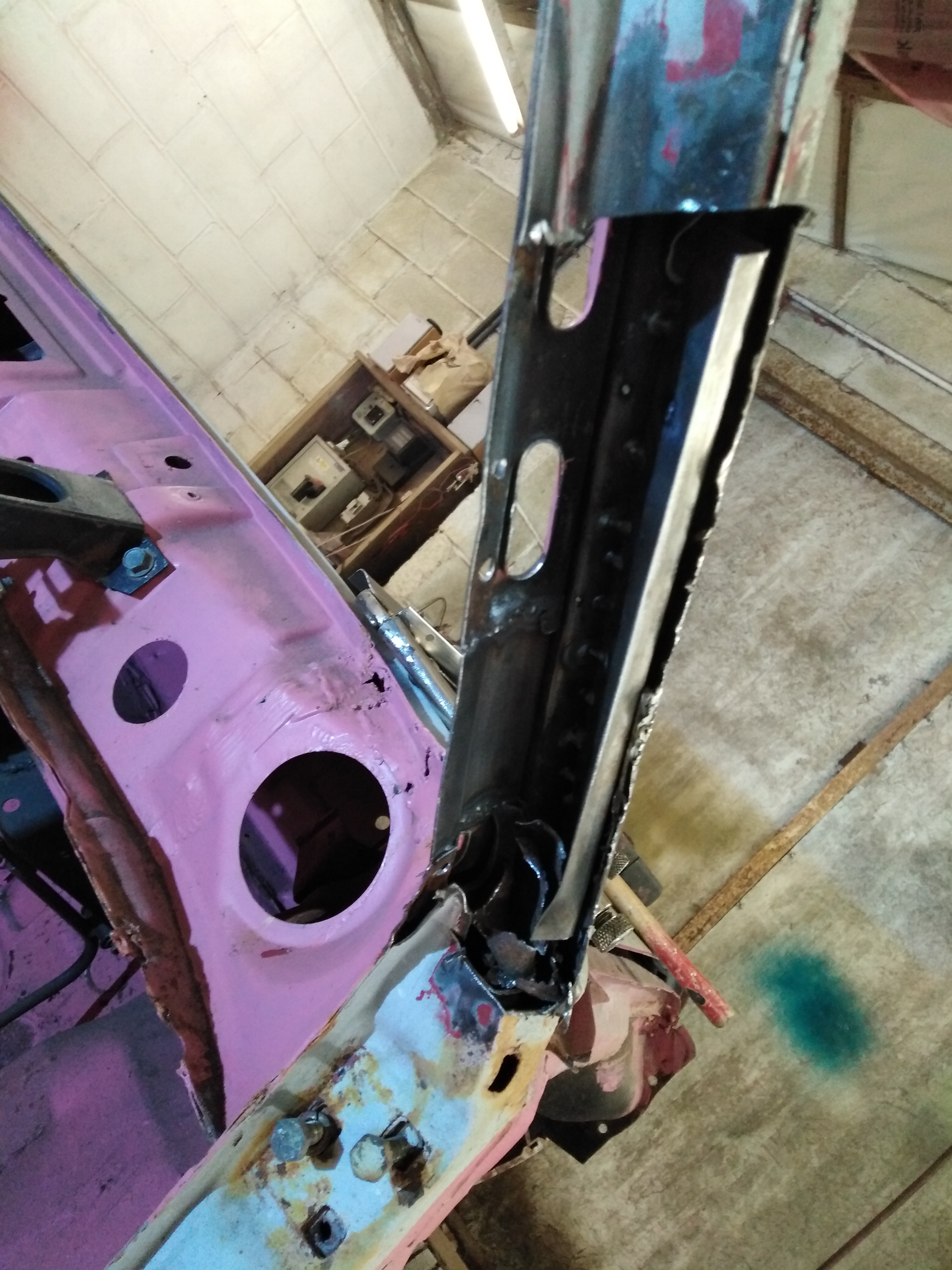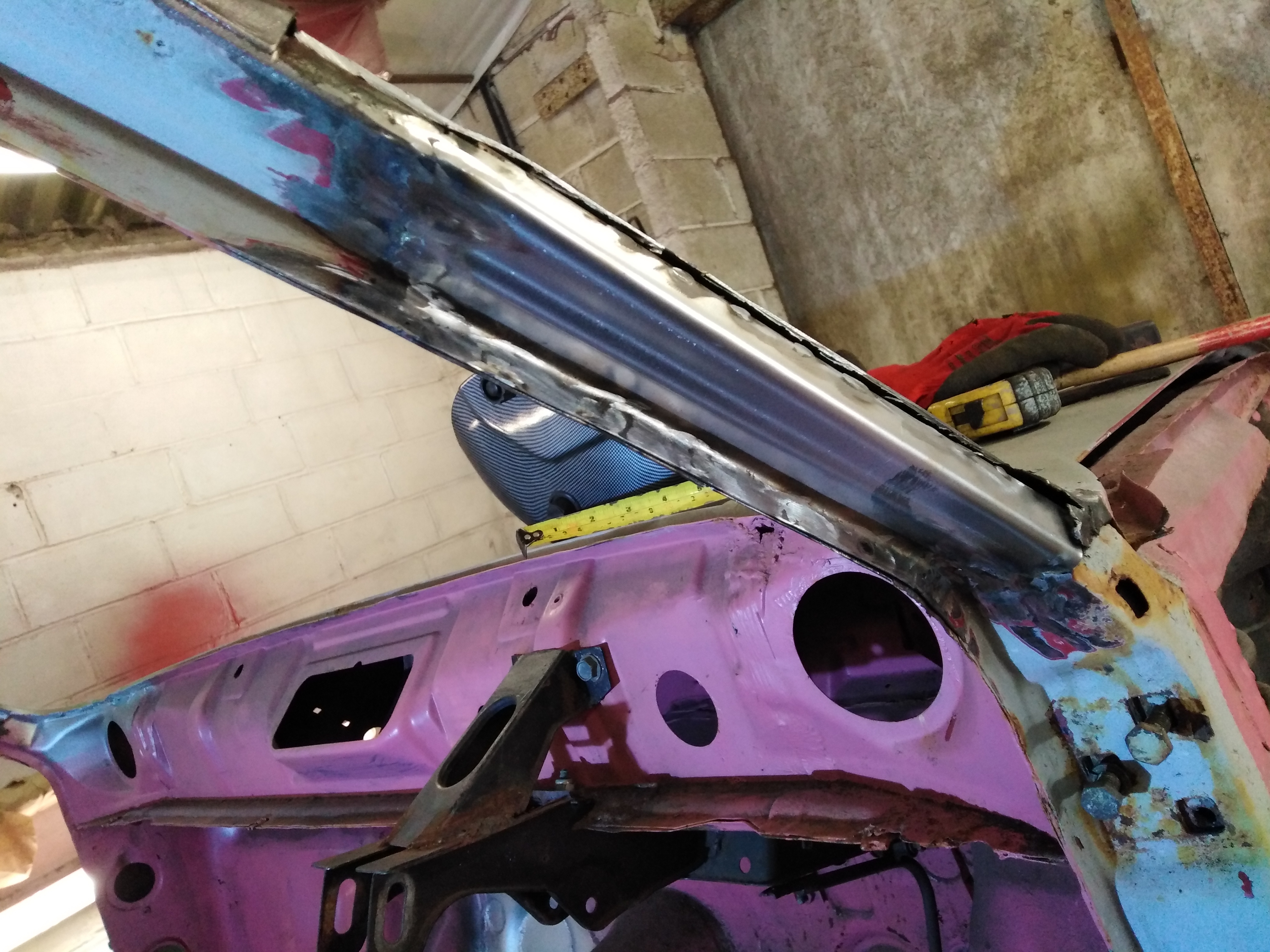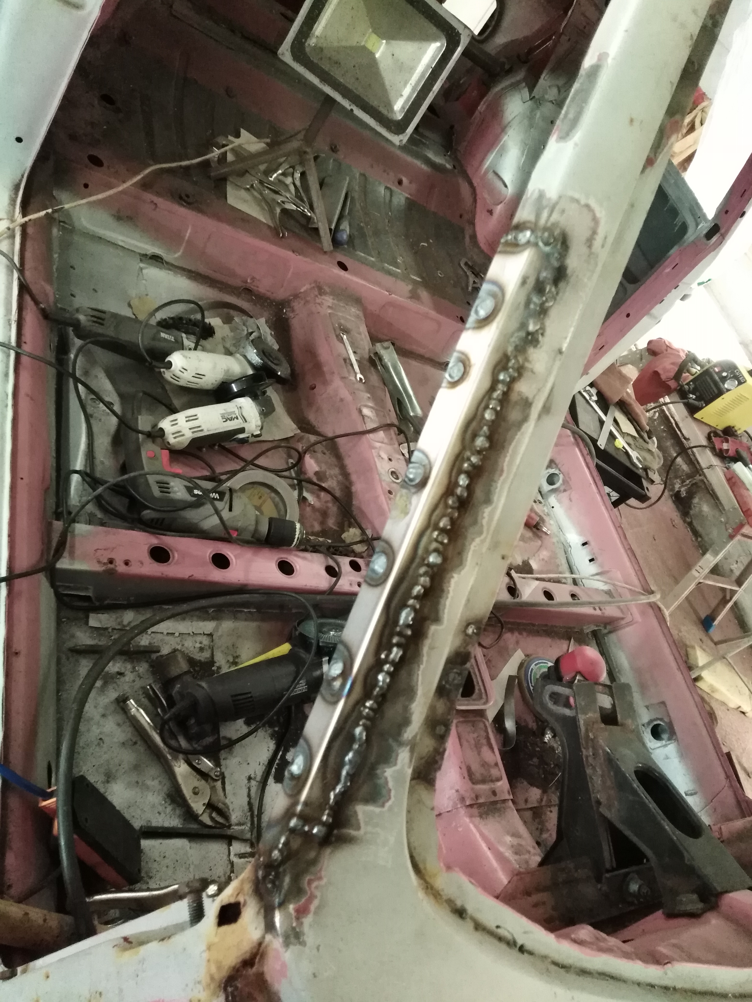 Inner pillar where the roll cage had been welded before tidied up well enough so the pillar declared fit for purpose.
