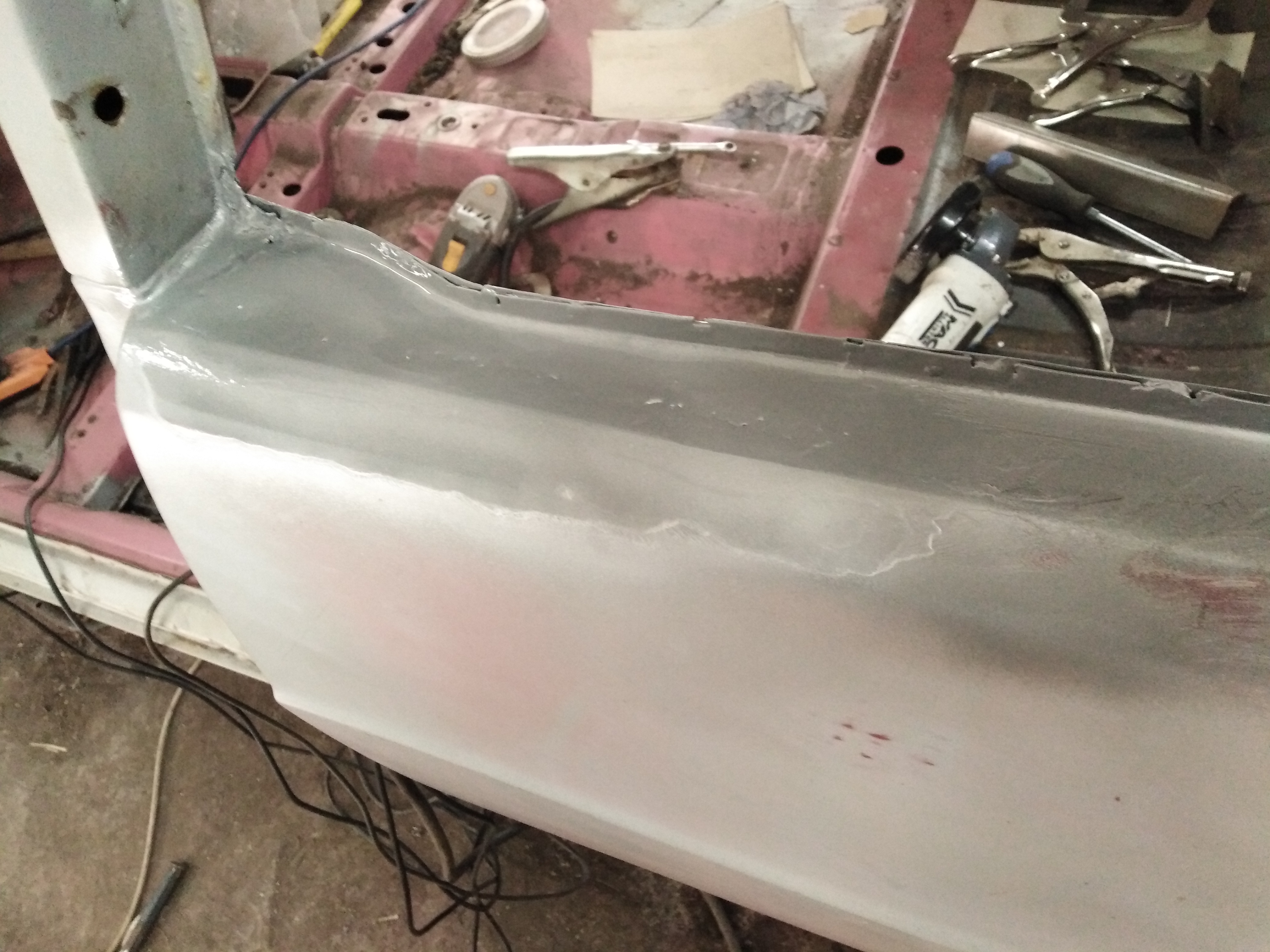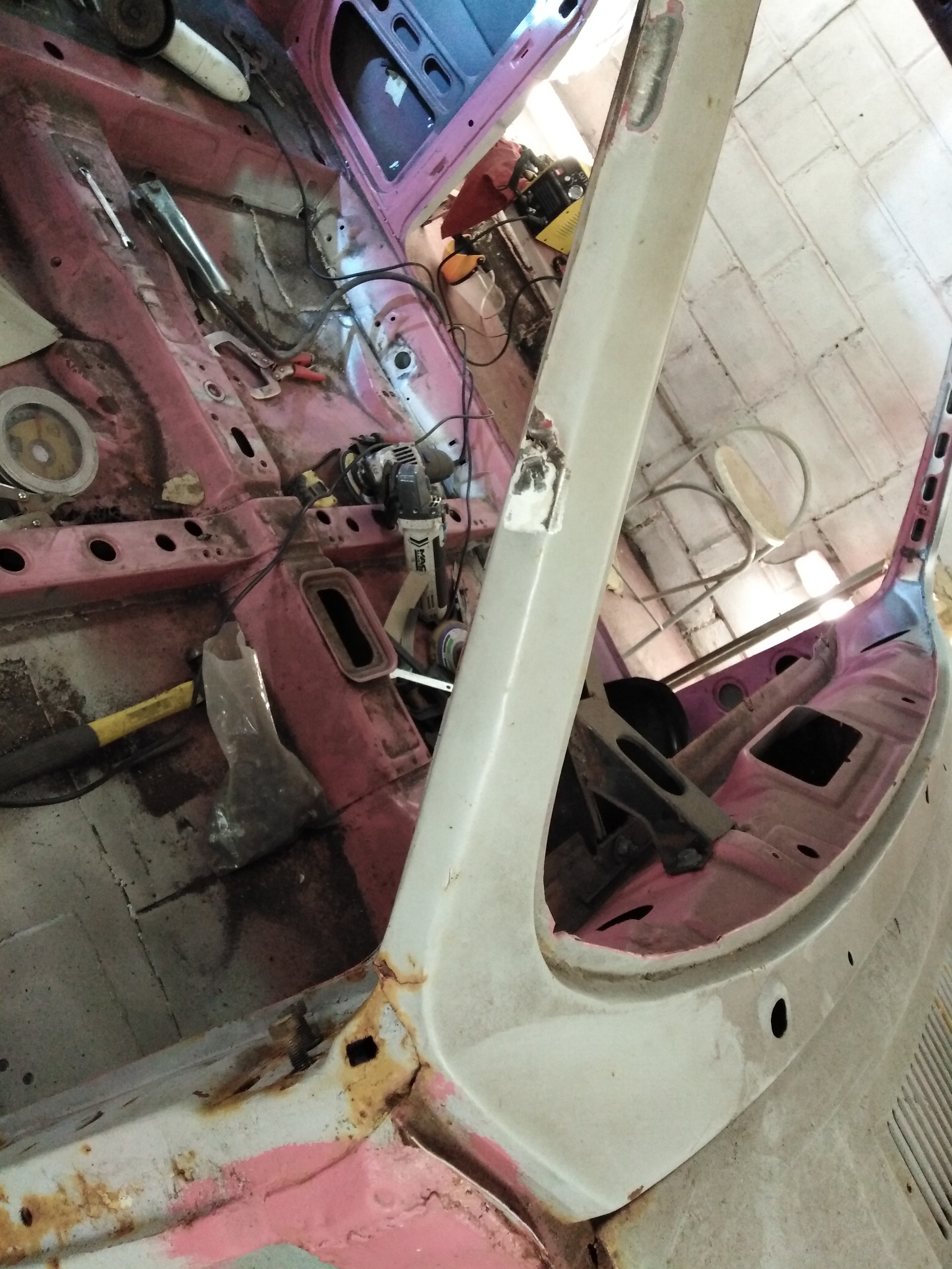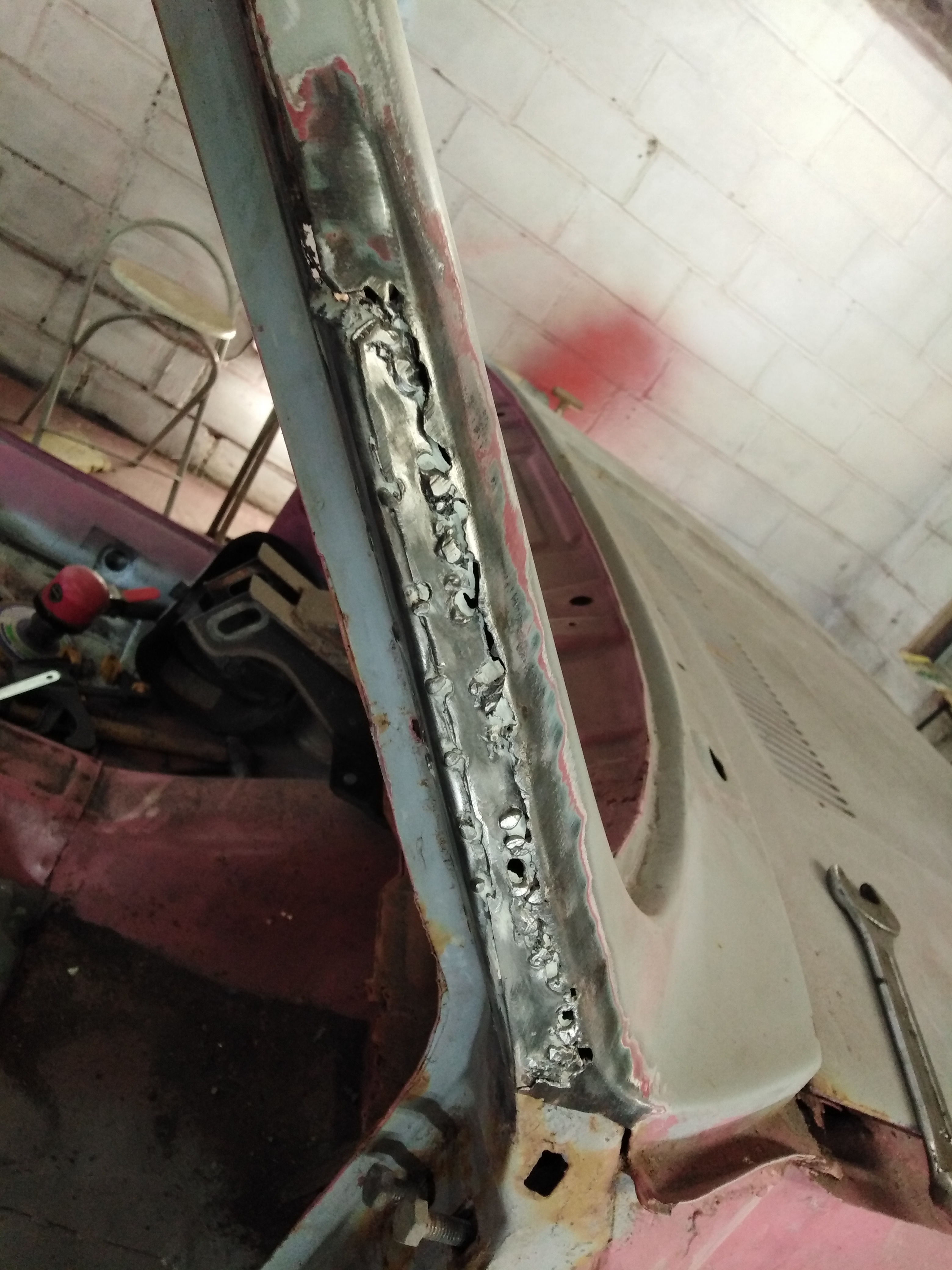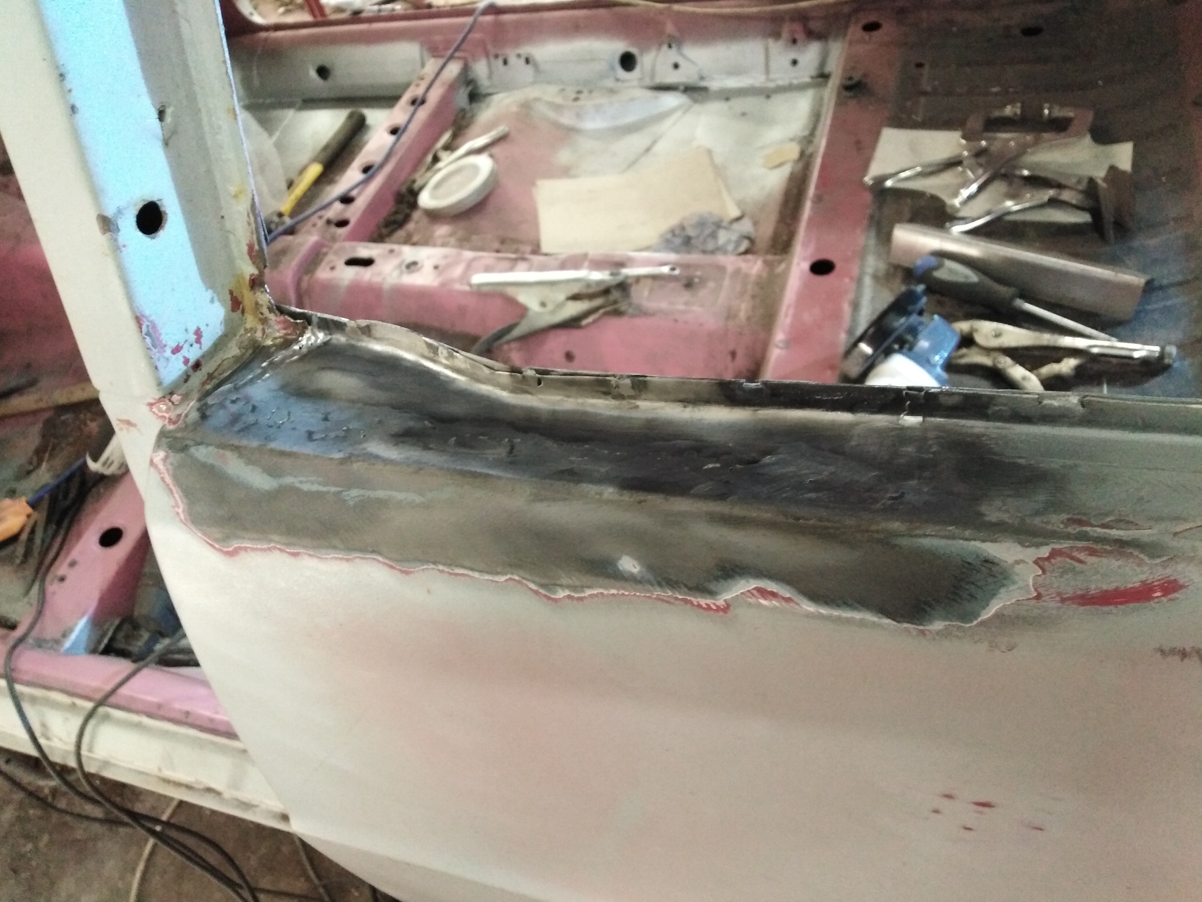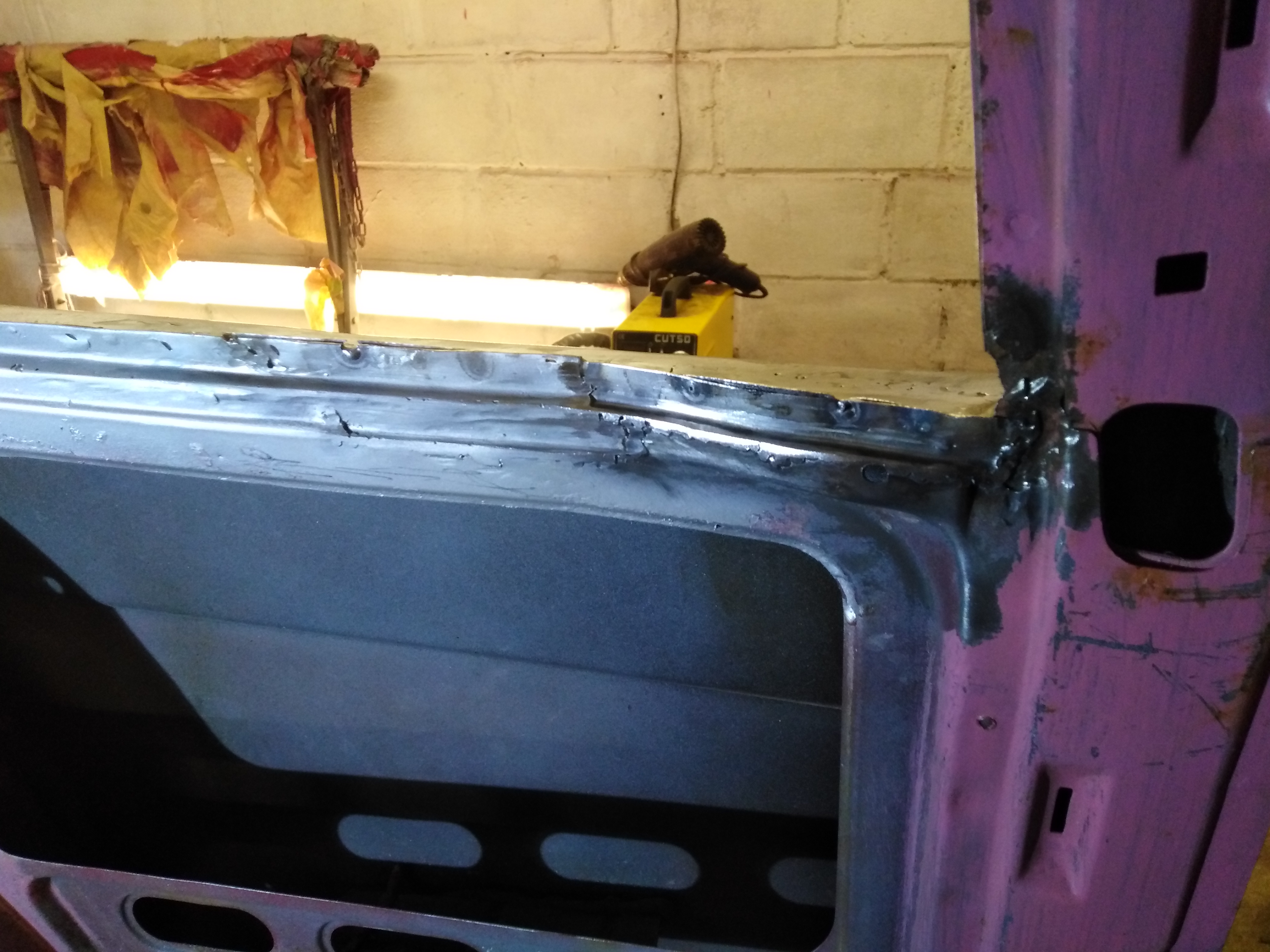 Inner pillar where the roll cage had been welded before tidied up well enough so the pillar declared fit for purpose.