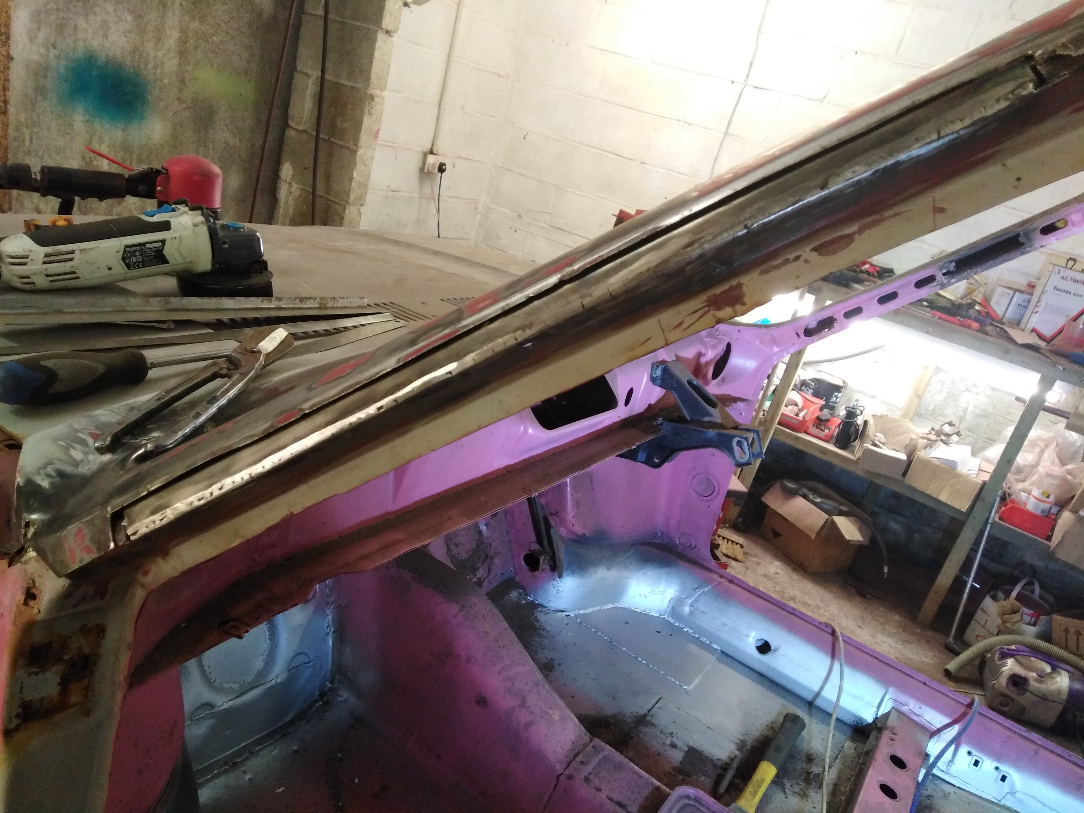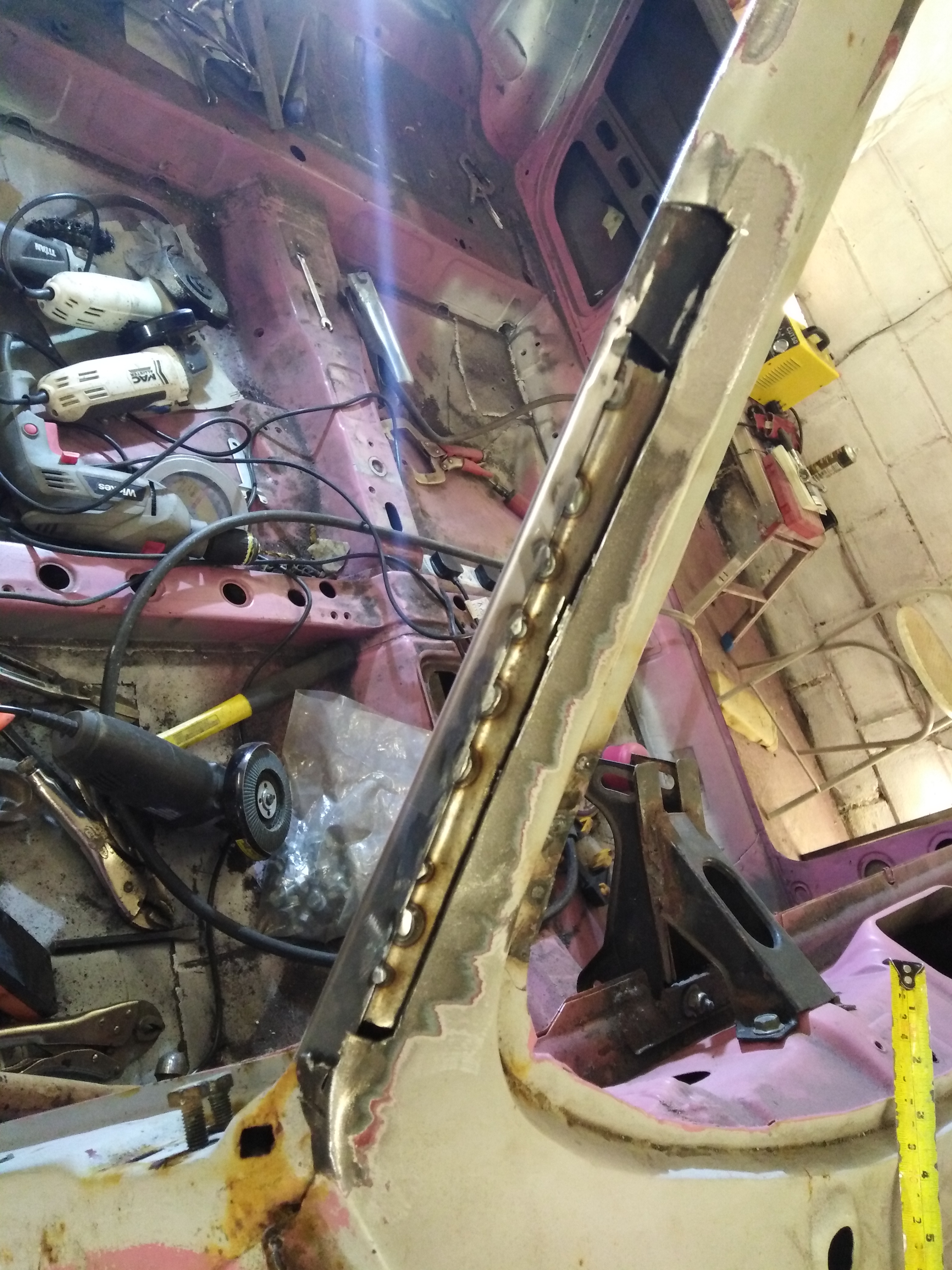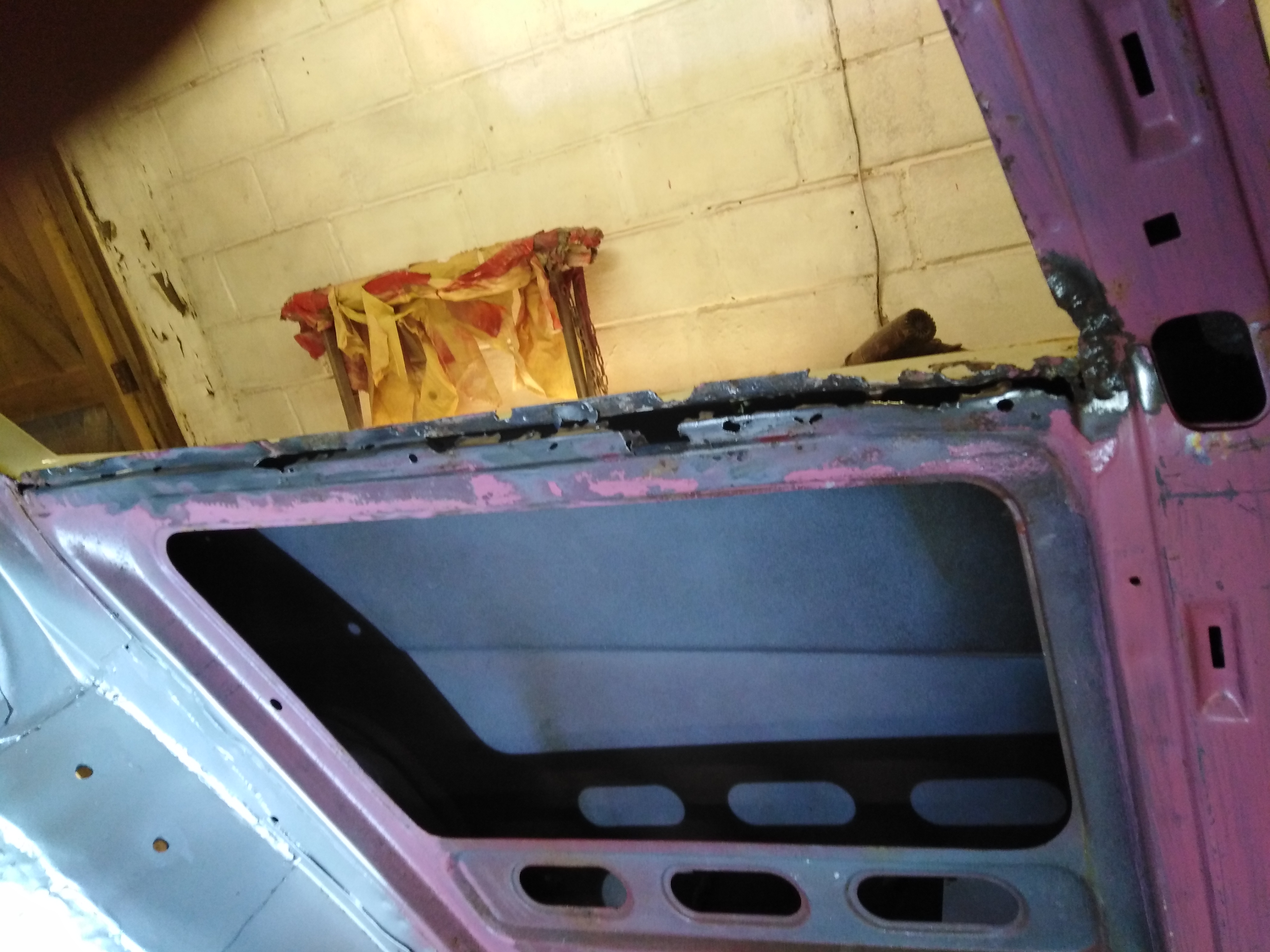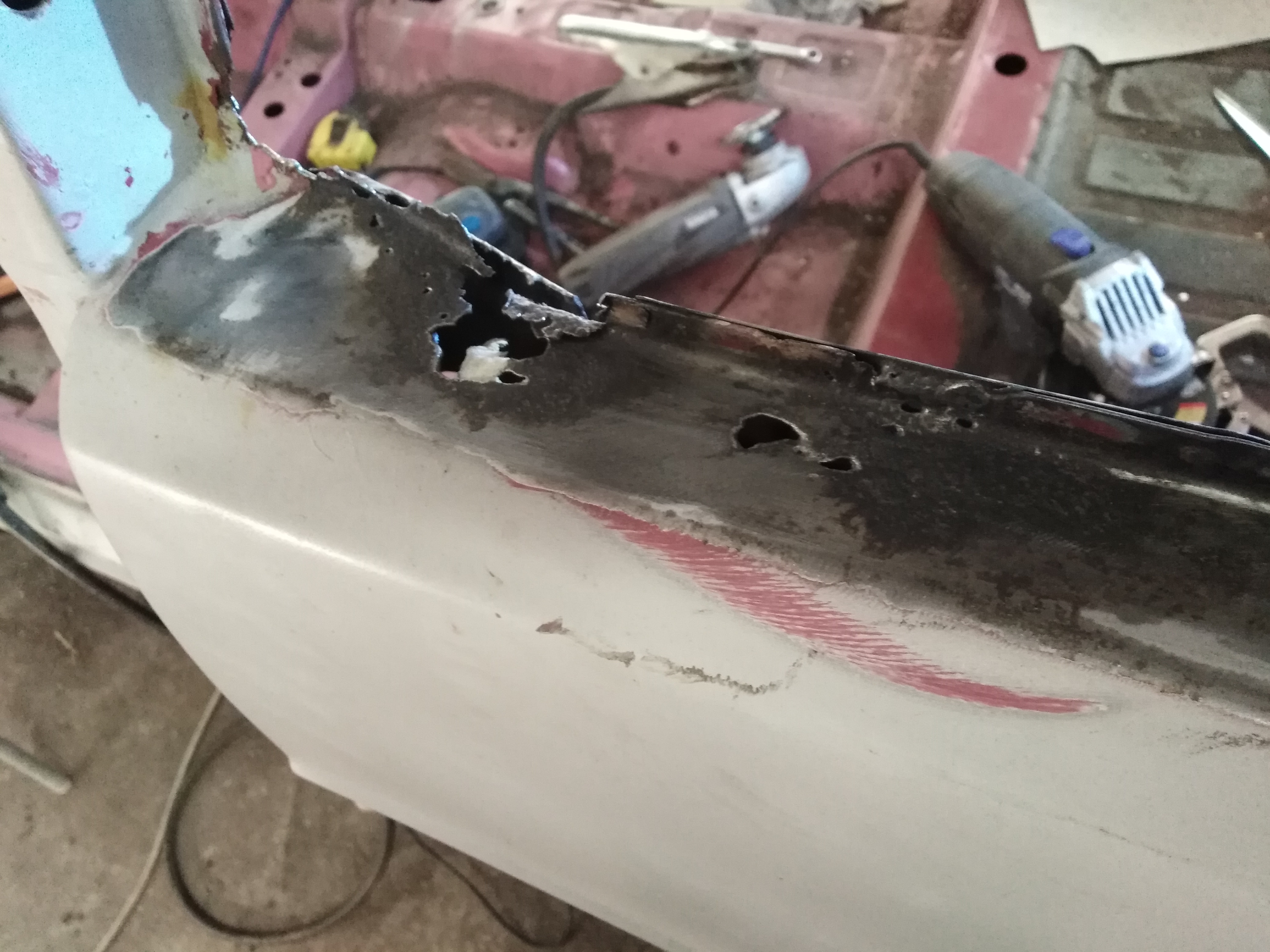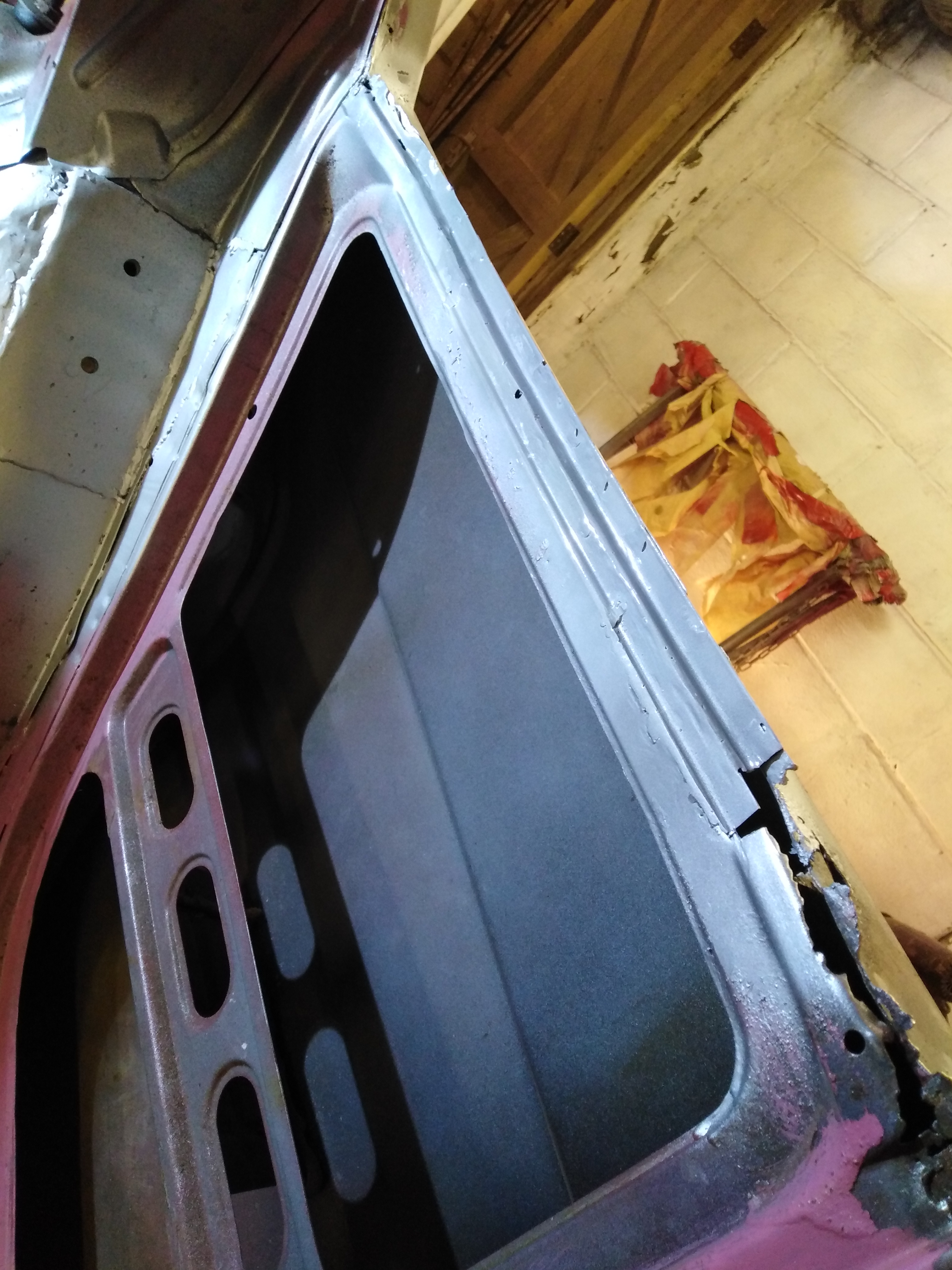 Inner pillar where the roll cage had been welded before tidied up well enough so the pillar declared fit for purpose.