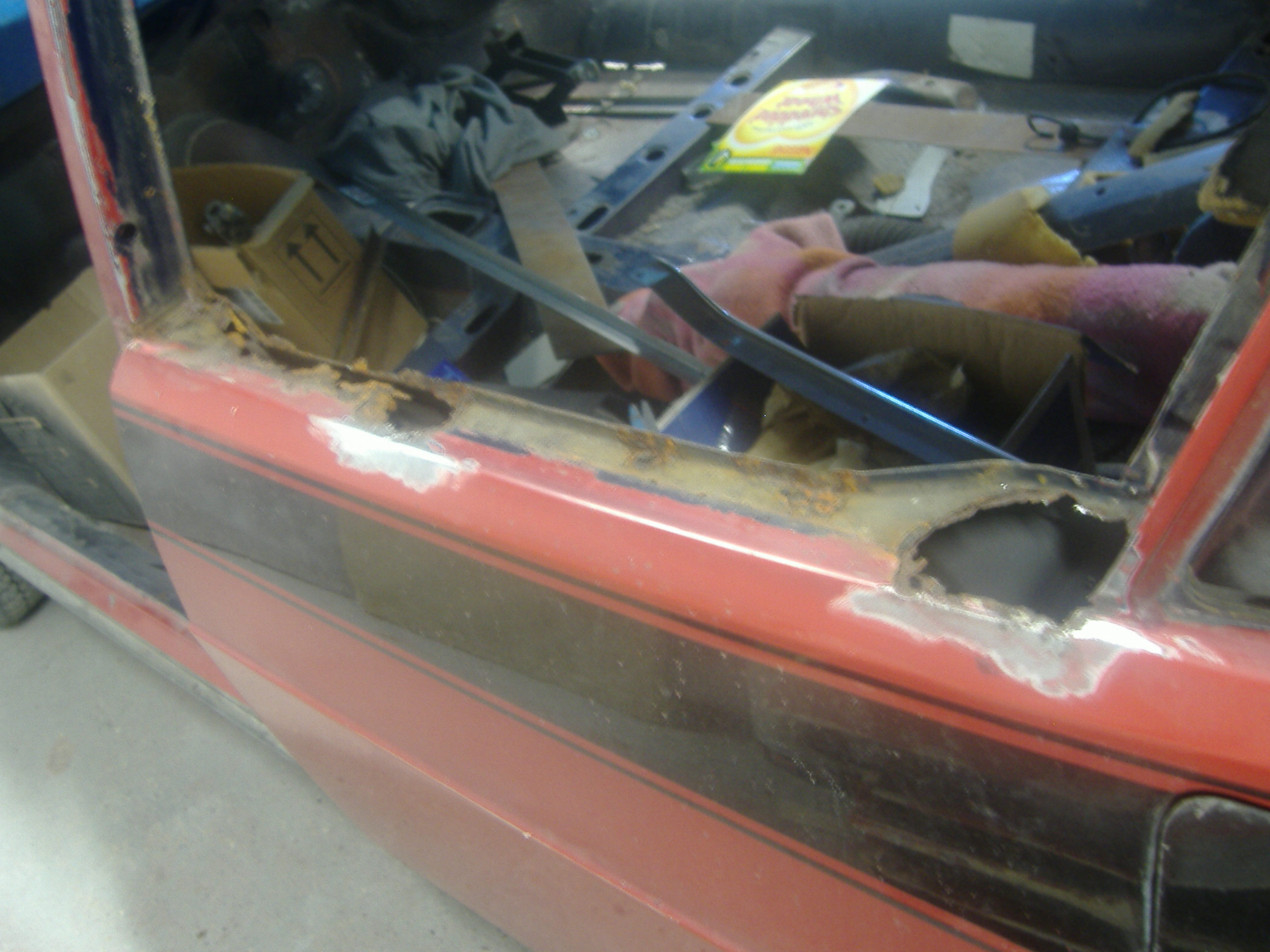 Outer section near the B pillar though had been filled over, looked OK but a bit of exploration revealed it had just been filled over rusty holes...