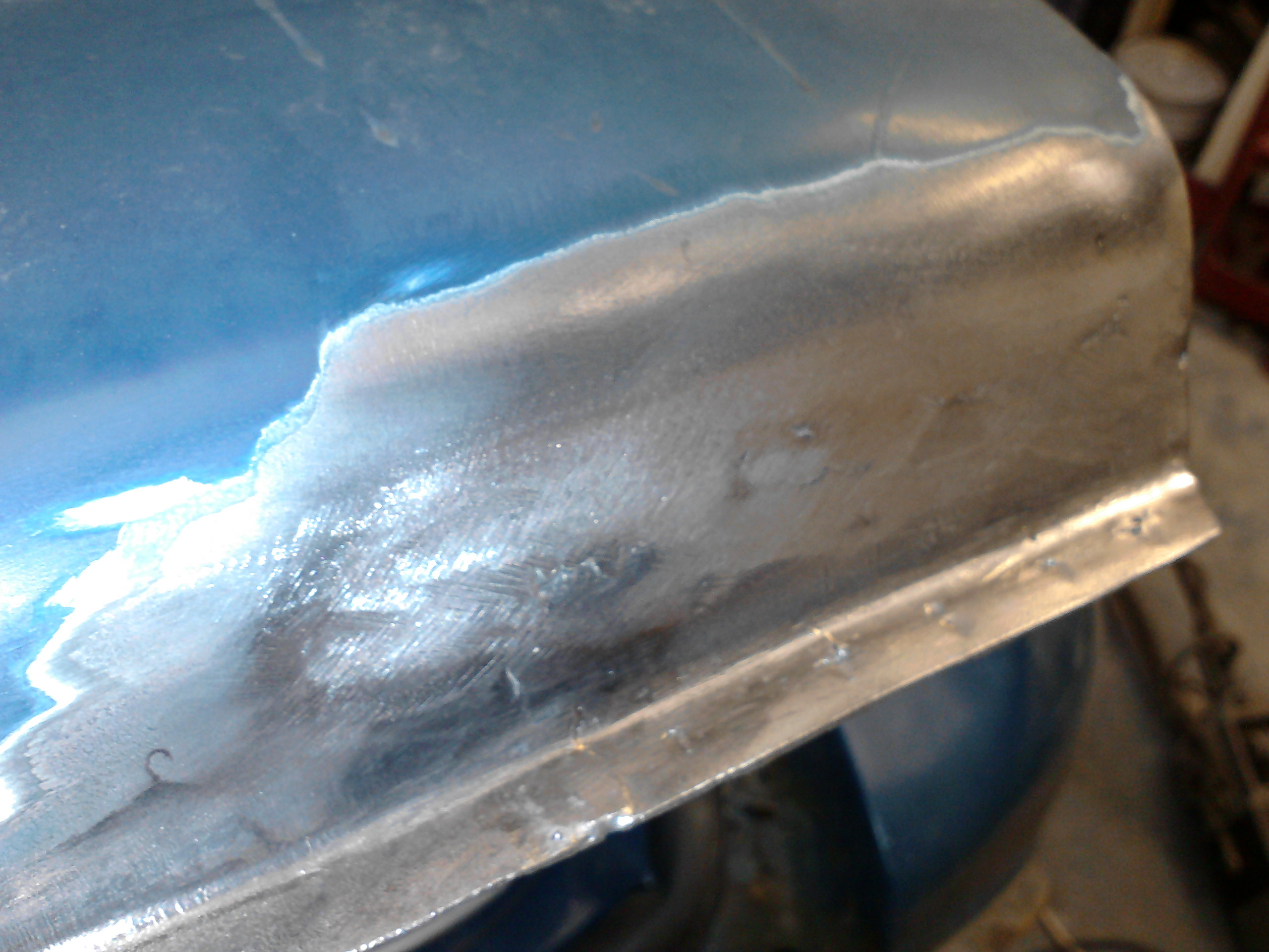 the n/s wing bottom always looked to have a bit of rot but didn't look as bad as the o/s one was, so it turned out. most of the wing bottom was still very solid, just a bit on the arch edge and the return underneath.