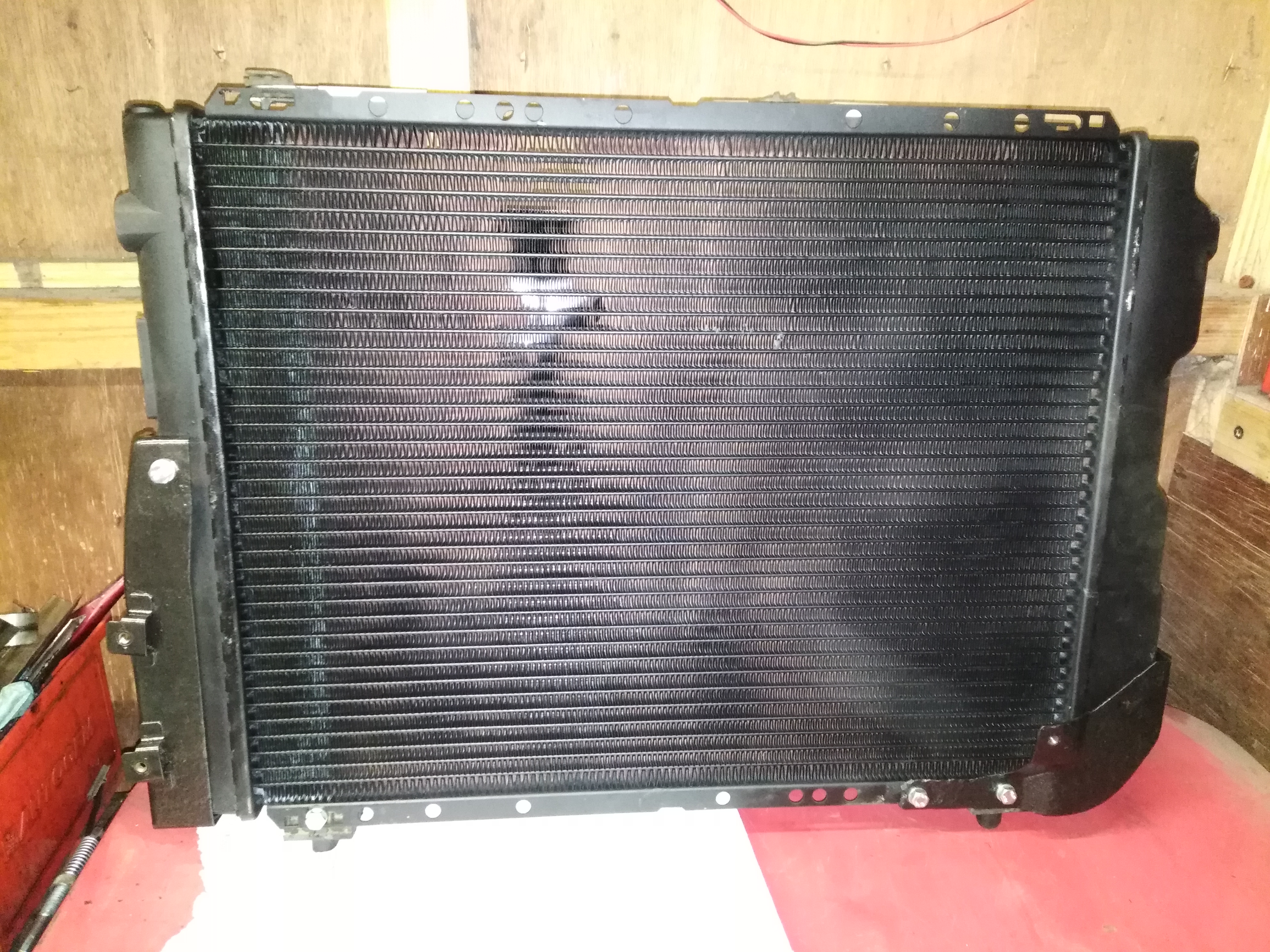 The radiator brackets I'd cleaned up on Sunday were ready to fit back to the freshly recored rad so set about that tonight so it's ready for fitting tomorrow.