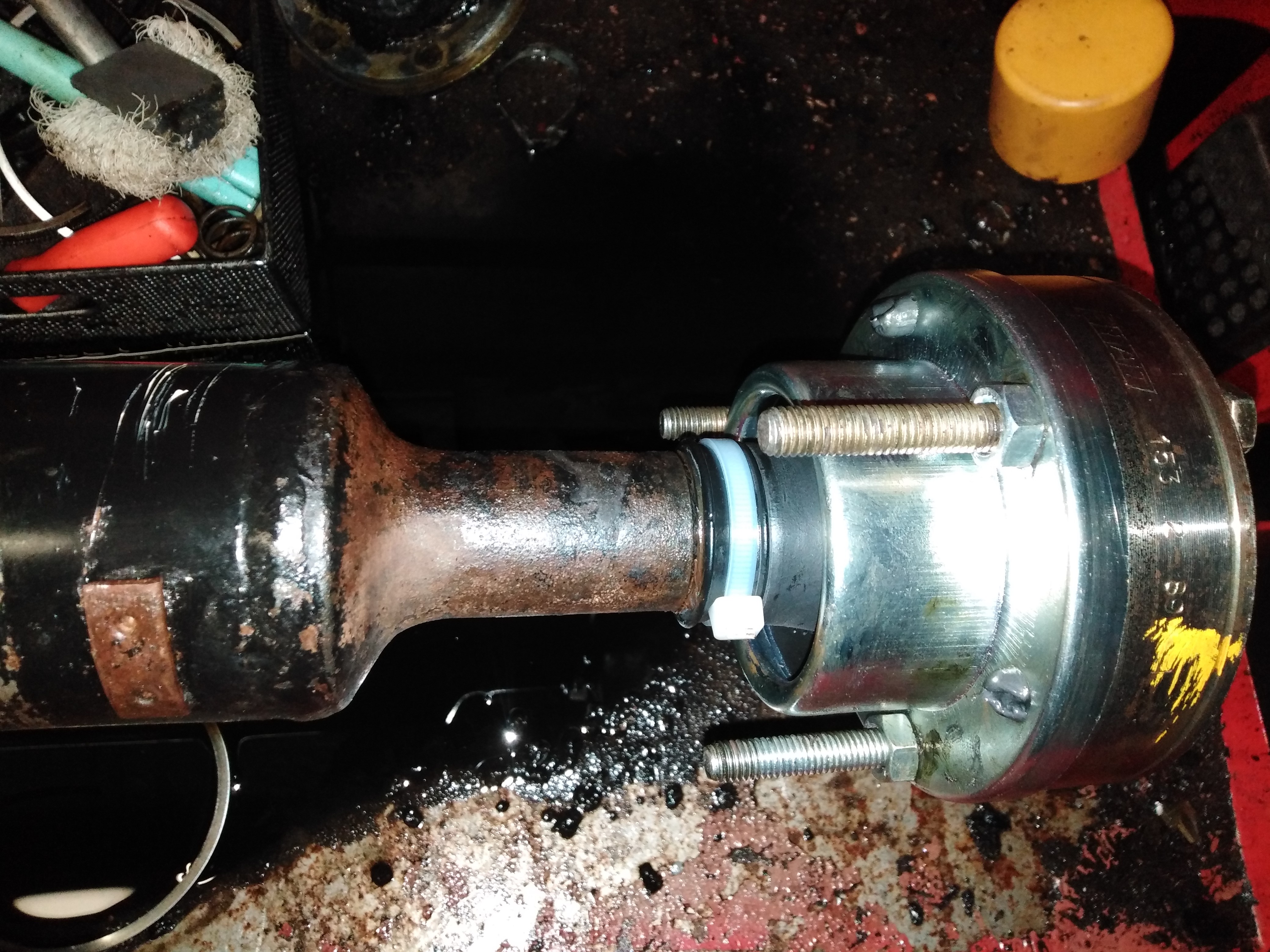 Propshaft got its' new rubber boot for the front where it attaches, the rear end is solid mounted to the rear diff.