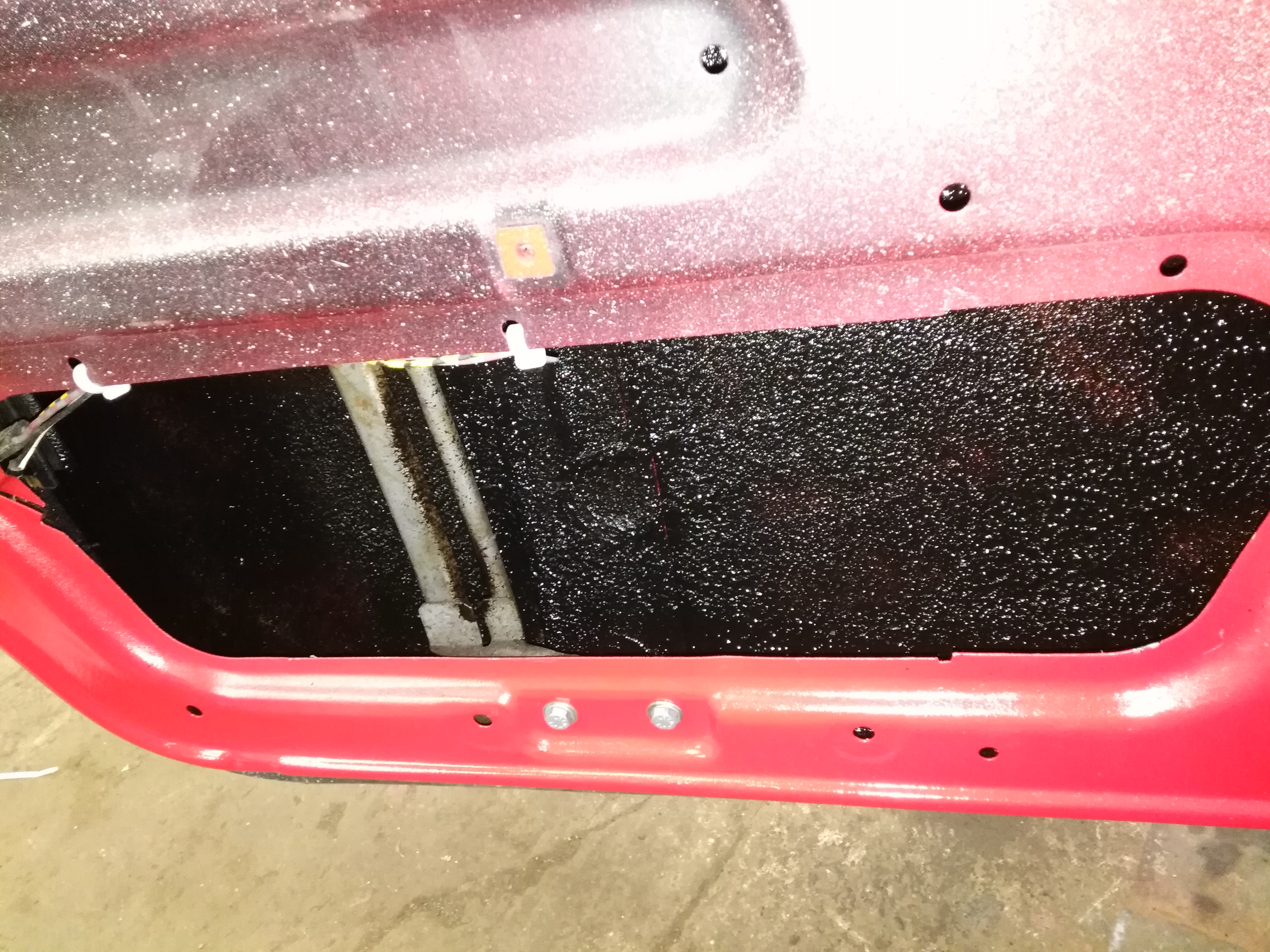 With the doors all built up I took the car outside to spray the tetroseal treatment into the doors. I use a schutz gun to apply it which gives great, easy coverage but you do get a bit of fog off it so best done outside.