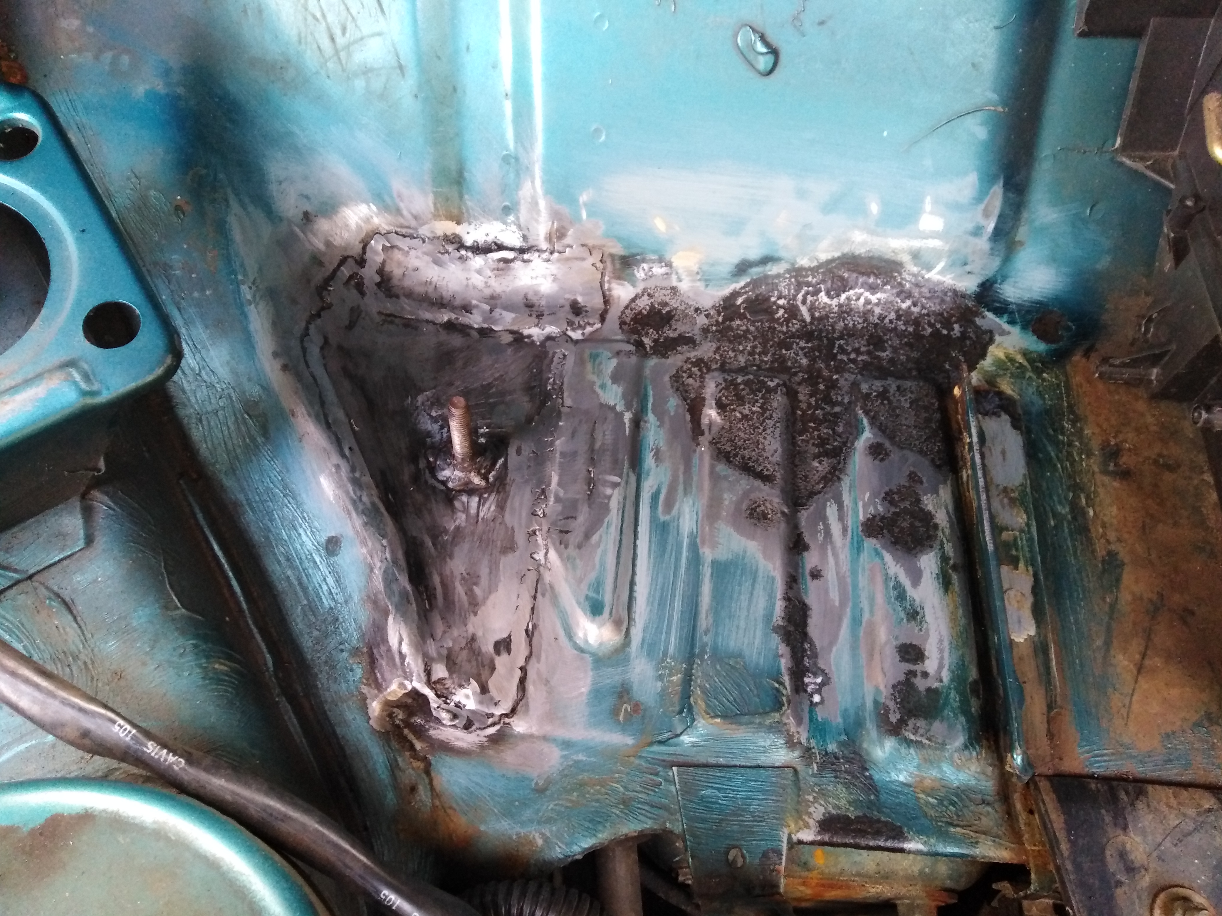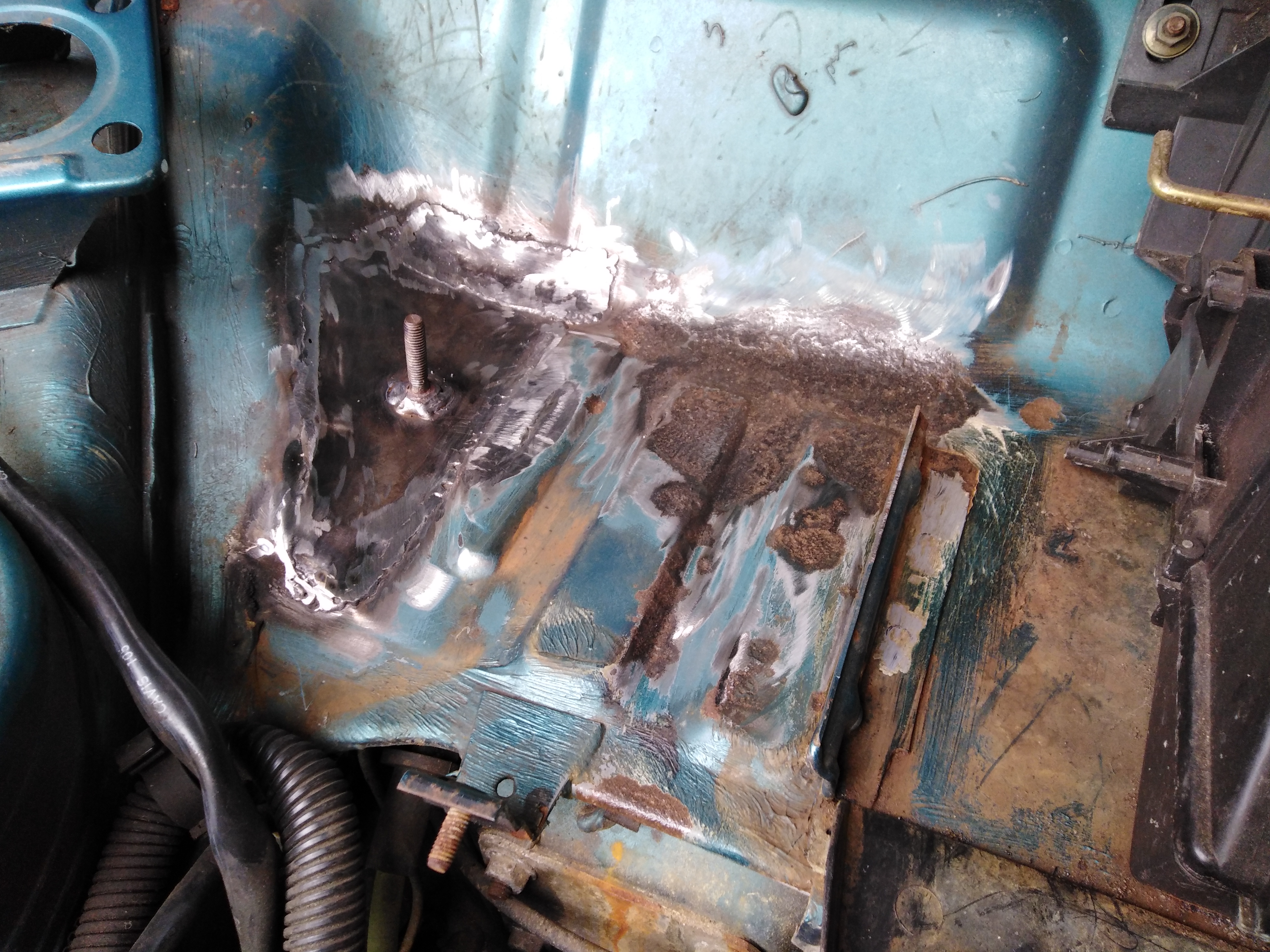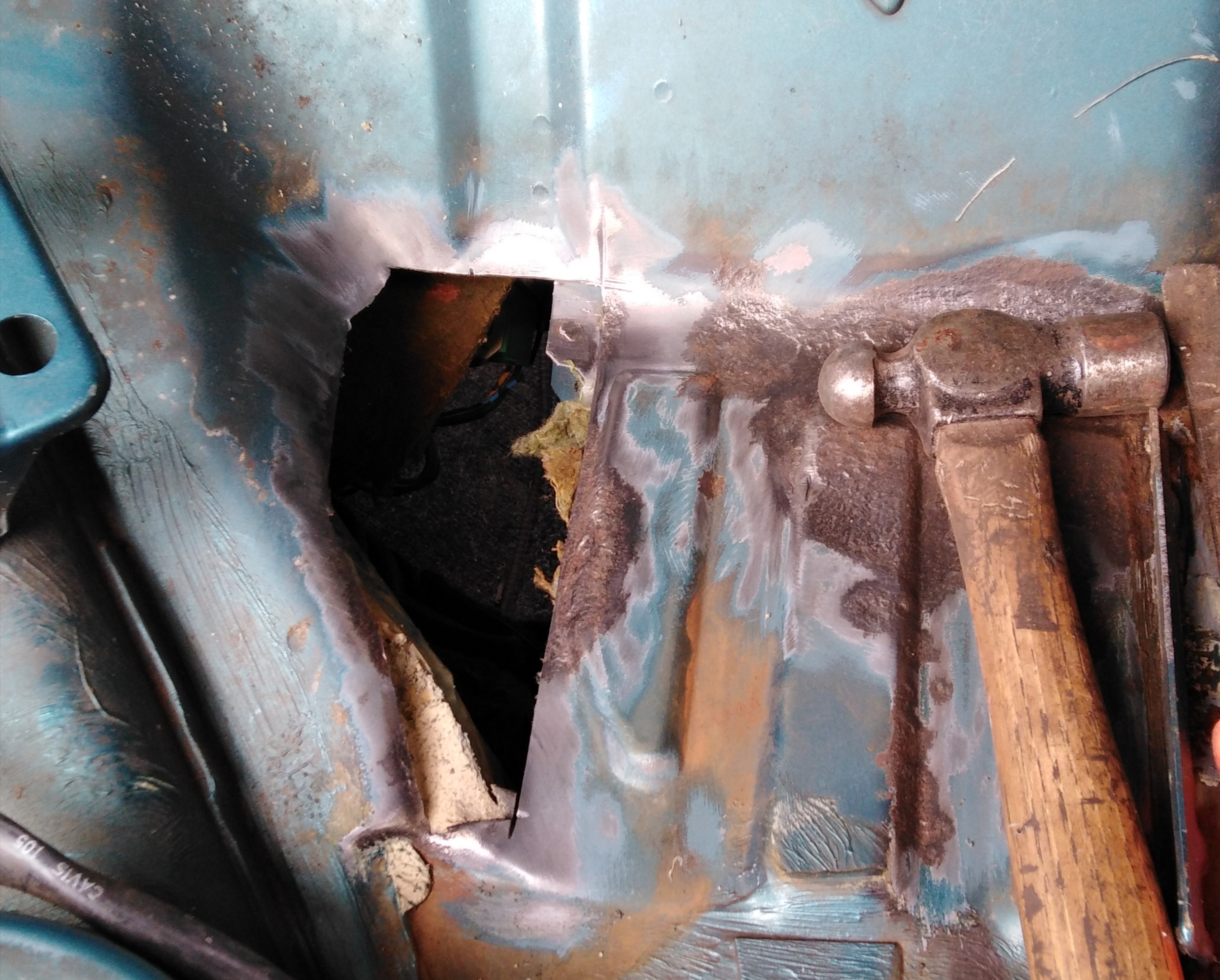 The result though was rust under the battery tray and the inevitable hole, the source of my watery footwell.